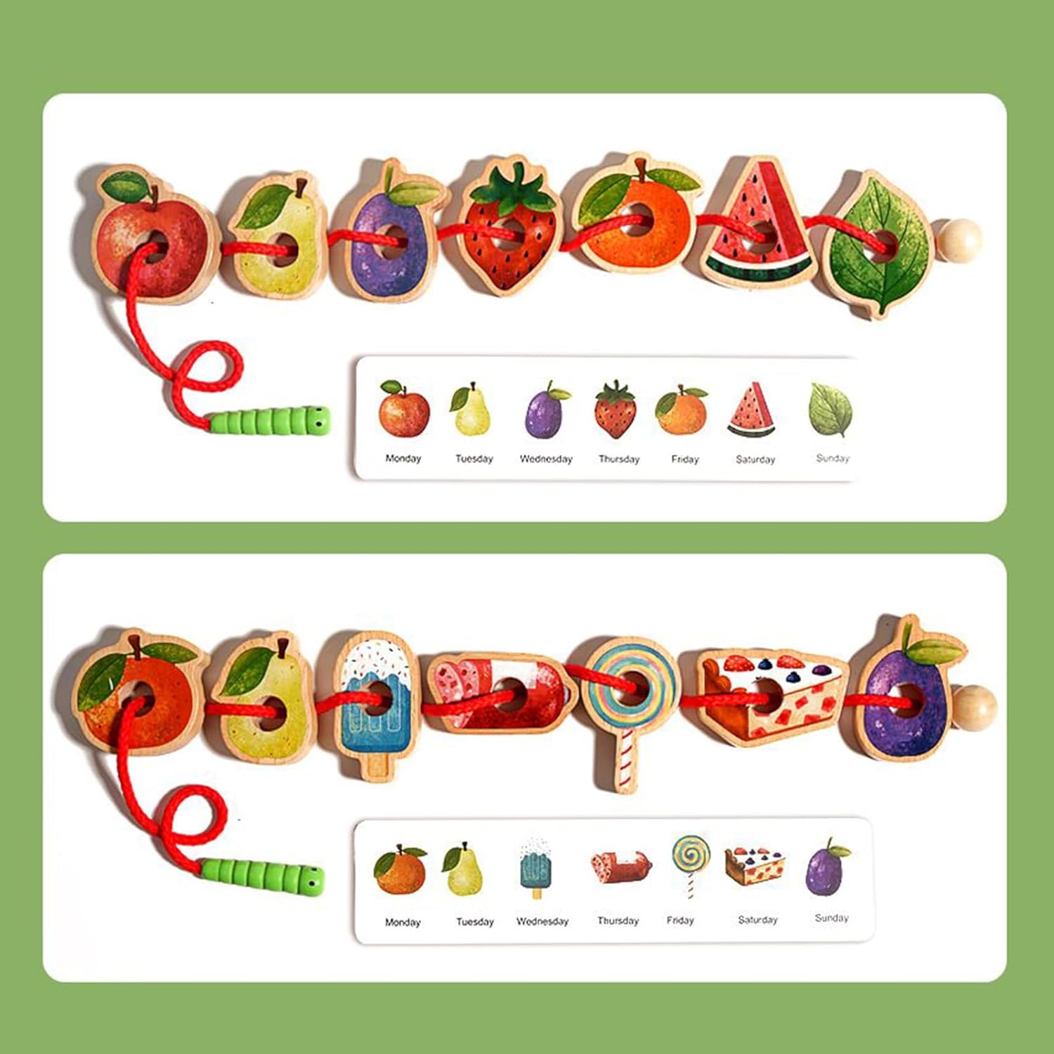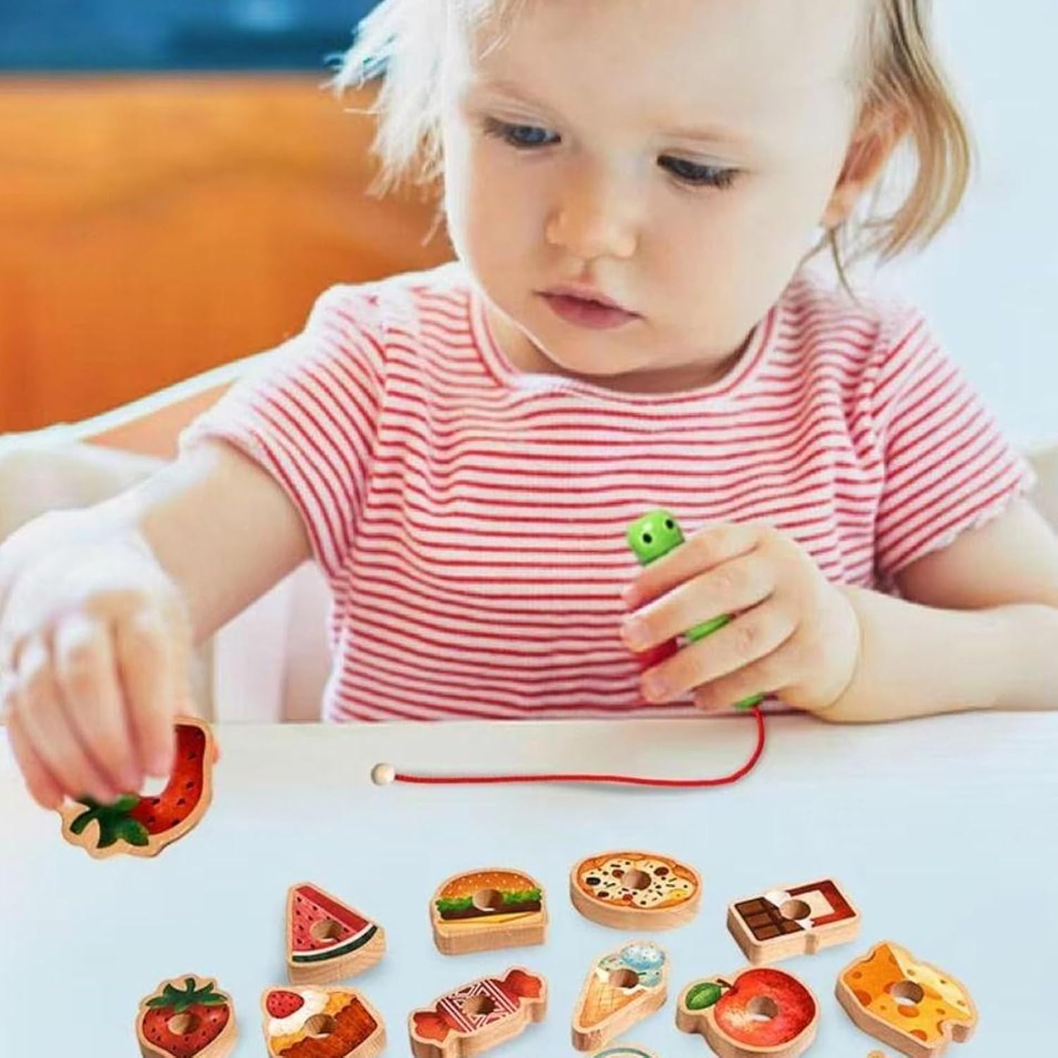 Riconoscimento del colore: migliora lo sviluppo cognitivo con esercizi giocosi sulla corrispondenza delle forme e concetti matematici di base. Aiuta i bambini ad affinare le capacità di pensiero logico identificando colori e motivi in un ambiente stimolante. Scomparto portaoggetti intelligente: la borsa con coulisse integrata ottimizza l'idoneità quotidiana, migliora le capacità di smistamento e offre un trasporto organizzato senza sforzo, perfetto per infilare i giocattoli in movimento. Impugnatura comoda: la struttura arrotondata consente ai bambini piccoli di allenare in sicurezza il controllo dei muscoli della mano e le capacità motorie attraverso efficaci esercizi di pinzettatura delle dita nel processo di apprendimento giocoso. Naturale e adatto ai bambini: la lavorazione senza sbavature e i cavi flessibili garantiscono un infilamento sicuro. Comoda maneggevolezza e materiali naturali creano con il giocattolo da infilare per i più piccoli un mondo di gioco affidabile e attraente. Apprendimento ludico: allena la memoria visiva attraverso il threading interattivo con giocattoli a motivi. Disegni di frutti tridimensionali con una connessione alla vita supportano lo sviluppo della prima infanzia.