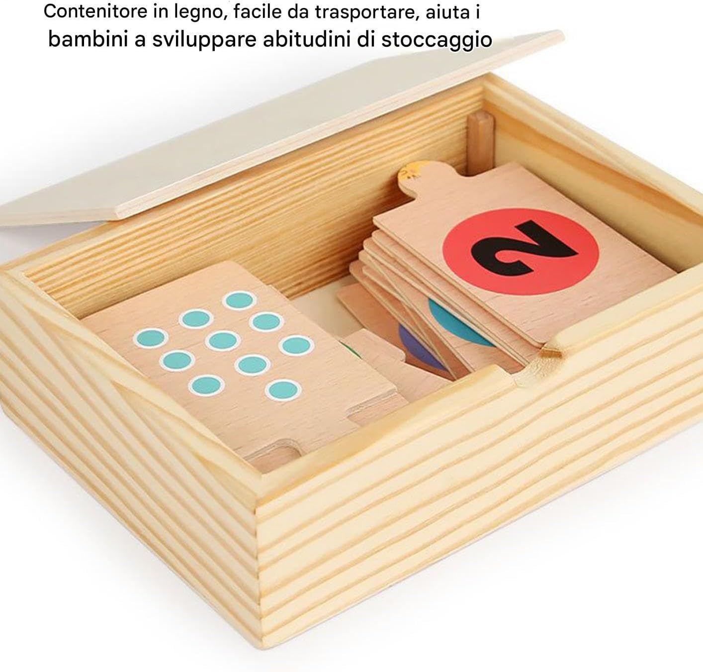 Migliorare l'familiare: questo puzzle ecologico e sicuro per bambini supporta le abilità matematiche, aiutando nel riconoscimento dei numeri e nella classificazione attraverso momenti di gioco collaborativo tra genitori e figli Strumento per migliorare la memoria: Stimola lo sviluppo cerebrale prescolare con attività che uniscono pensiero critico e miglioramento della memoria, offrendo un'esperienza di gioco educativo i bambini si impegnano in compiti di abbinamento per rafforzare il ragionamento logico e la funzione cognitiva durante sessioni di gioco formativo Puzzle educativo versatile: Incentiva il riconoscimento di colori e forme insieme all'associazione di numeri e parole, funzionando come un giocattolo educativo completo con design double-face per favorire lo sviluppo di concetti matematici precoci in modo intuitivo e interattivo Compagno di Apprendimento Compatto: Con un design compatto e un contenitore in legno, questo strumento educativo è ideale per i viaggi, promuove il gioco organizzato e aiuta i bambini a sviluppare naturalmente abilità di ordine essenziali grazie alla pratica quotidiana Attività sviluppo logico: Questo gioco didattico a incastro potenzia l'apprendimento cognitivo nei bambini attraverso un gioco coinvolgente che promuove lo sviluppo della motricità fine e la coordinazione occhio-mano in modo spontaneo durante l'uso
