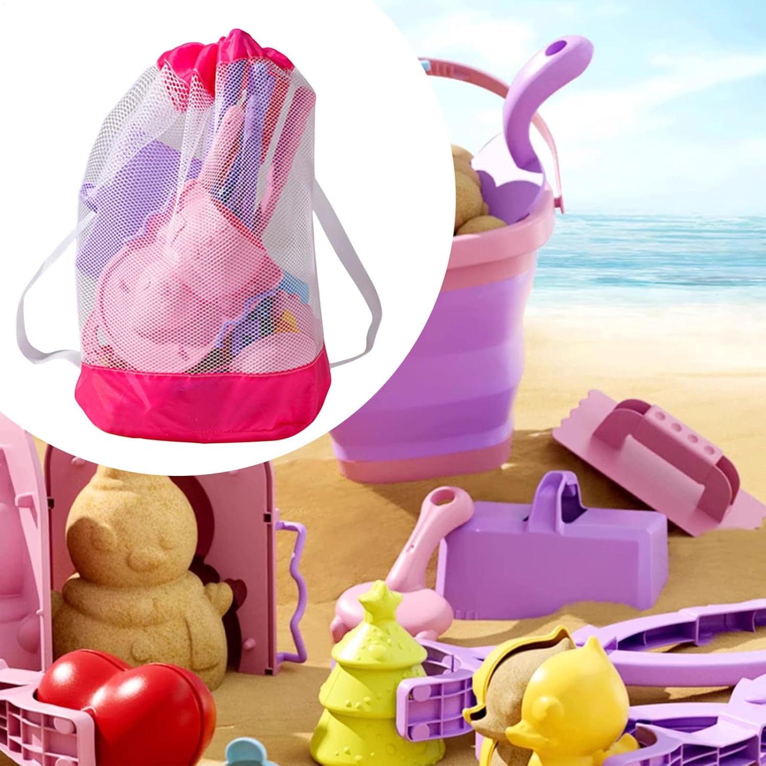 Regalo completo: Include contenitore per trasporto agevole e organizzazione immediata, i colori allegri stimolano il gioco condiviso in famiglia, ottima idea regalo per l'infanzia Durevole e Sicuro: Prodotto con materiali sicuri per l'infanzia e composizione inodora, garantisce longevità nel . Divertimento sostenibile che supporta il benessere dei bambini e valori ecologici durante i giochi in spiaggia. Gamma Utilizzi Estesa: Offre compatibilità sabbia-piscina, assicurando adattabilità a diversi ambienti per attività all'aperto e integrandosi perfettamente in contesti di gioco educativo Combo Gioco Creativo: Secchiello con modelli abbinato a strumenti versatili stimola l'immaginazione, mentre il contenitore pieghevole mantiene organizzati gli per intrattenimento prolungato sulla spiaggia Facile da trasportare: Set di giocattoli da spiaggia con borsa compatta per trasporto agevole, design leggero e pratico ideale per famiglie attive, per viaggi senza ingombri e ideale per gite all'aperto in spiaggia o parco