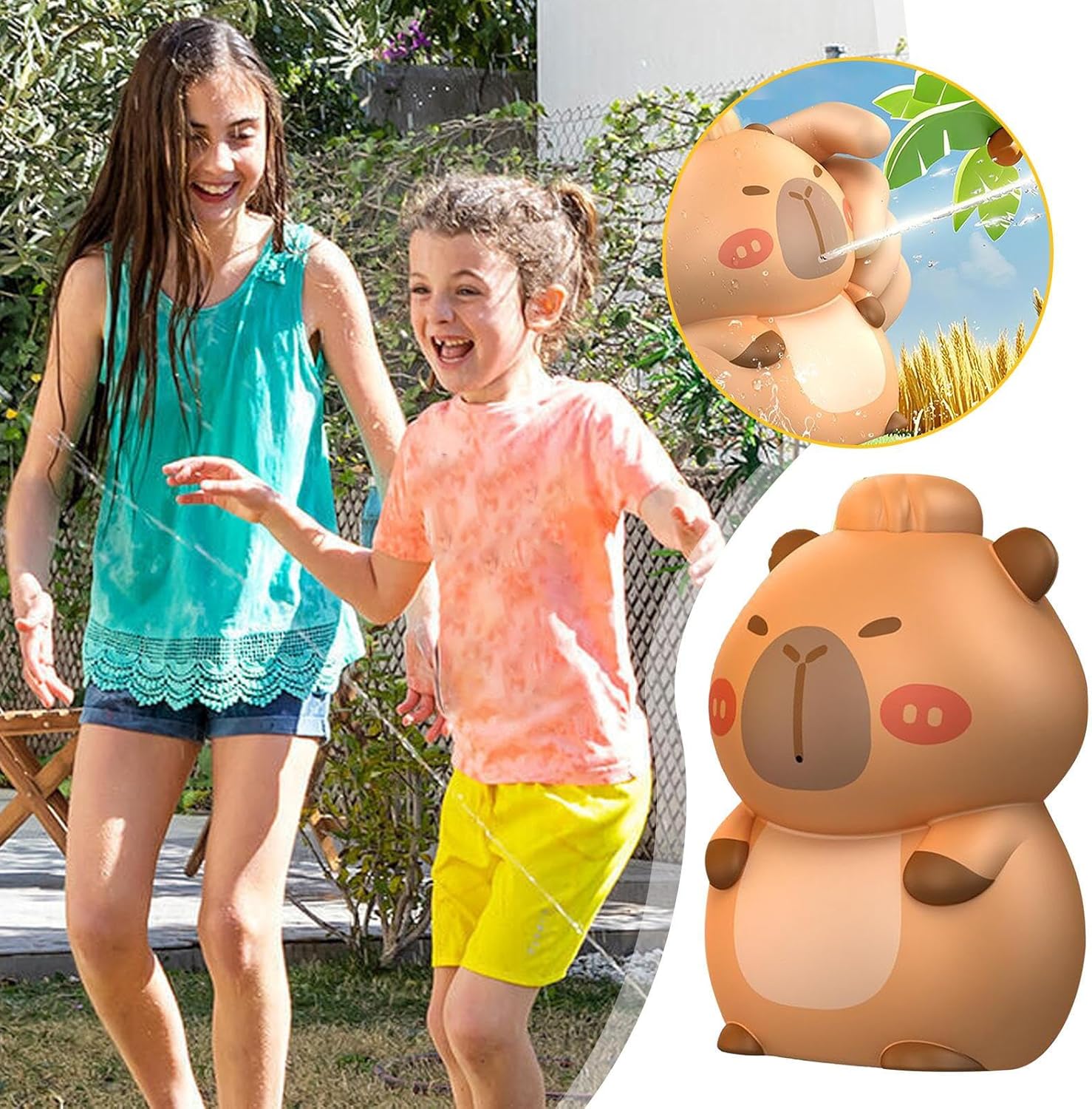 Dimensioni Viaggio: Progettato ergonomicamente per uso dinamico, leggero e con capacità d'acqua moderata per divertimento prolungato, offre massima maneggevolezza durante attività all'aperto e giochi acquatici interattivi. Meccanismo Acqua Nascosto:Design con idrico integrato che genera una delicata nebbiolina tramite piccoli fori, arricchendo il gioco con sorprese piacevoli e intrattenimento acquatico coinvolgente Robusto e sicuro: Rispetta gli standard sicurezza giocattoli, presenta superfici lisce e delicate e una struttura stabile per bambini, progettato per divertimento sicuro. Versatilità: Perfetti per scherzi tra amici, divertimento in famiglia e creazione di ricordi estivi, questi giochi d'acqua rendono più divertenti lezioni di nuoto e attività all'aperto con utilizzo multiscopo Impugnatura Morbida: Garantisce un gioco confortevole con giocattoli spruzzo facili da usare per bambini, disegnati in stile cartoon affascinante ed evidenziati da un tema capibara per più allegria estiva