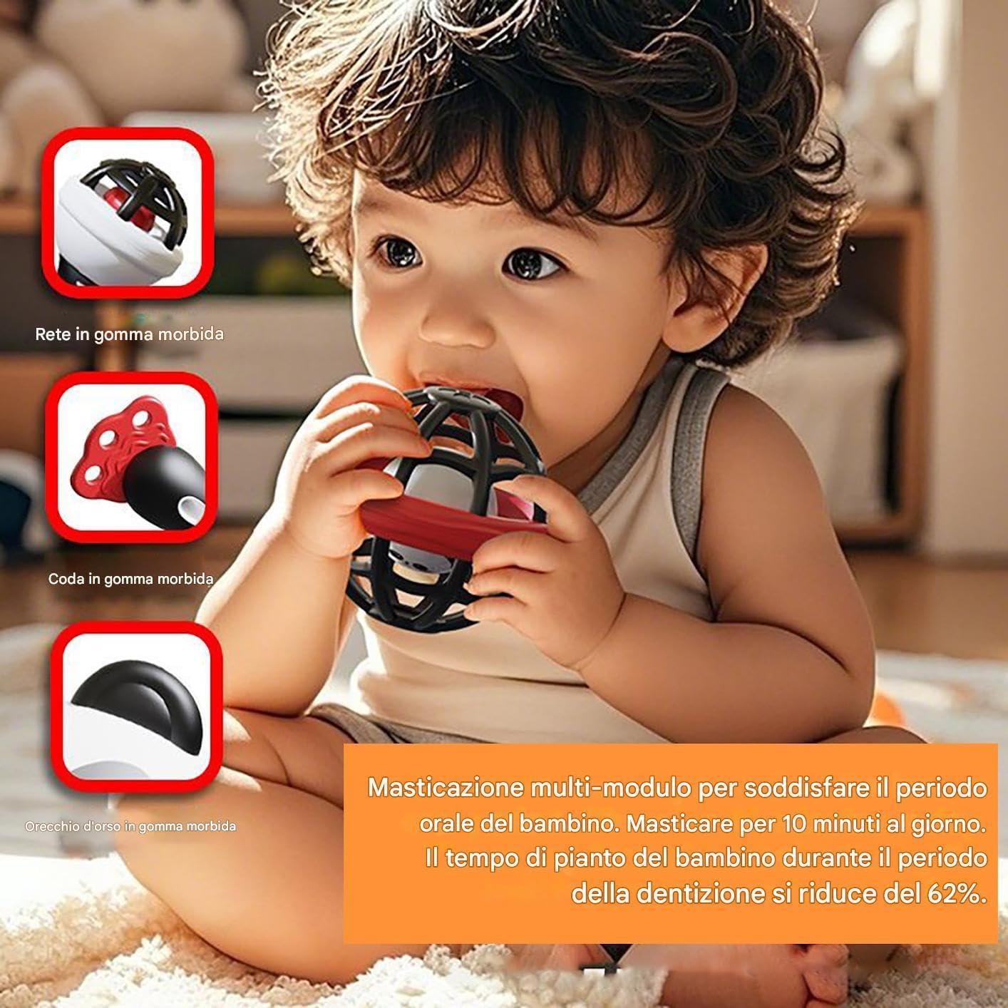 Gioco evolutivo: Potenzia coordinazione occhio-mano e sviluppo muscolare con un'impugnatura accessibile abbinata a manici ergonomici progettati per manine piccole Materiale Resistente: Sonaglio in ABS durevole che funge da massaggiagengive lenitivo durante la dentizione, garantendo sicurezza e praticità per il gioco quotidiano dei bambini Strumento Apprendimento: Sfere rotanti e pulsanti sonori stimolano la coordinazione sensomotoria, incoraggiando giochi educativi basati sulla curiosità durante i primi mesi di vita. Regalo Significativo: Delizia i bambini con sonagli per compleanni o feste, un pensiero affettuoso che crea momenti memorabili e favorisce lo sviluppo sensoriale attraverso il gioco esplorativo, dimostrando cura in modo sorprendente. Gioco Interattivo Naturale: L'equilibrio di stimoli sonori, visivi e tattili rende questi sonagli strumenti per l'esplorazione sensoriale precoce, sostenendo un coinvolgimento sensoriale completo e spontaneo.