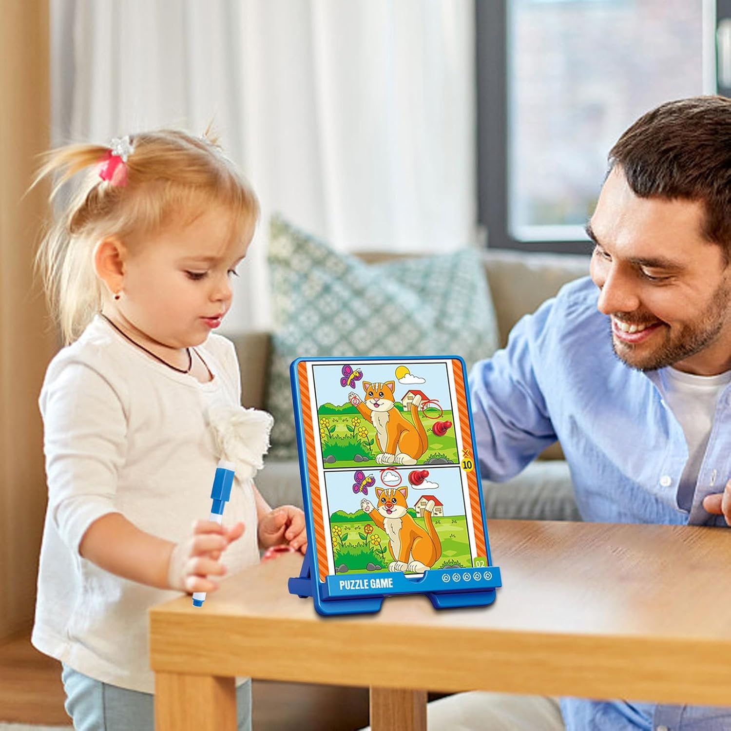 Apprendimento Potenziato: Divertenti giochi di osservazione che allenano memoria e concentrazione, migliorano la coordinazione motoria, sviluppano competenze base attraverso puzzle studiati per coinvolgere e insegnare simultaneamente, trasformando ogni sessione in un'esperienza educativa coinvolgente. Promuove relazioni : Favorisce il genitore-figlio con un gameplay coinvolgente pensato per stimolare la collaborazione e generare momenti speciali per tutta la famiglia Design sicuro per bambini: Prodotto con materiali sicuri, questo gioco "trova le differenze" ha un design a misura di bambino, riducendo il davanti schermo e incoraggiando un gioco salutare, robusto e adatto a un uso ripetuto Apprendimento Naturale: Contrasti accentuati con colori vivaci migliorano l'attenzione e favoriscono la partecipazione, creando un ambiente stimolante che sviluppa interesse per le sfide di problem solving Osservazione Affinata: Migliora la percezione dei dettagli, potenzia le capacità di osservazione e allena la discriminazione visiva affinando il pensiero logico con esercizi mentali coinvolgenti
