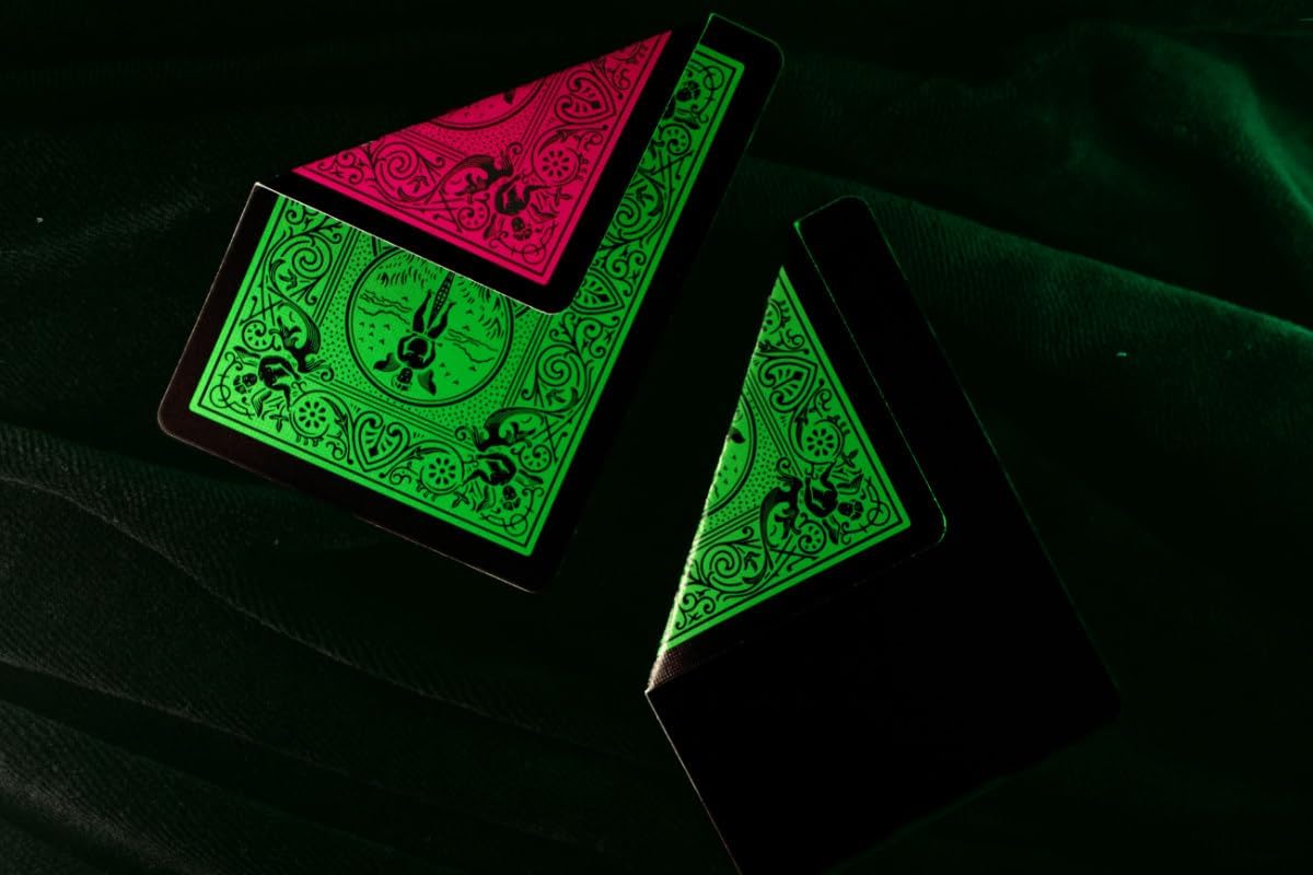 DESIGN INVERSE: Gioco di carte unico con colori invertiti, sostituendo il bianco tradizionale con un nero profondo per un contrasto sorprendente QUALITÀ PREMIUM: Stampato da USPCC con finitura Air Cushion e Standard Cut per una gestione fluida e duratura CONTENUTO COMPLETO: Include due jolly identici più due carte speciali: una carta frontale nera e una carta a doppio retro PRESTAZIONI VISUALI: Perfetto per trucchi magici e cardistrie, offrendo effetti visivi spettacolari grazie al contrasto verde e nero COLLEZIONE UNICA: Edizione speciale Bicycle in verde e nero, ideale per collezionisti e appassionati di carte