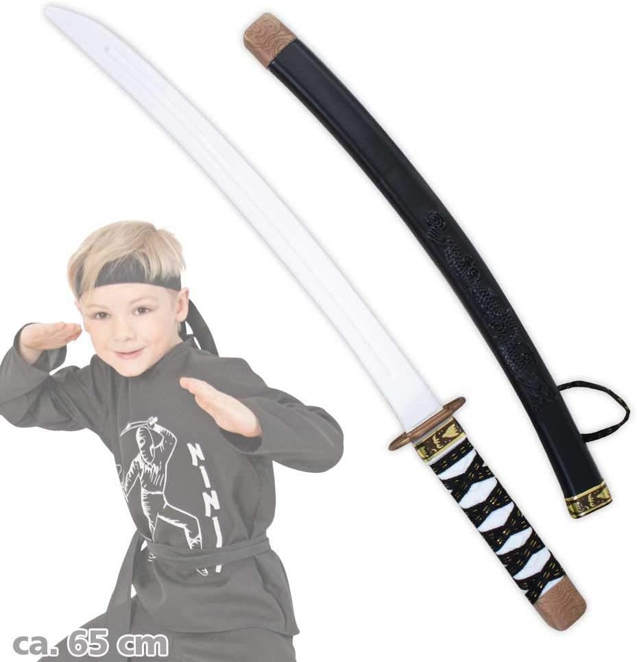 Fornitura: 1 pezzo di spada, combattente samurai Materiale: plastica Colore: nero / bianco Lunghezza: ca. 65cm