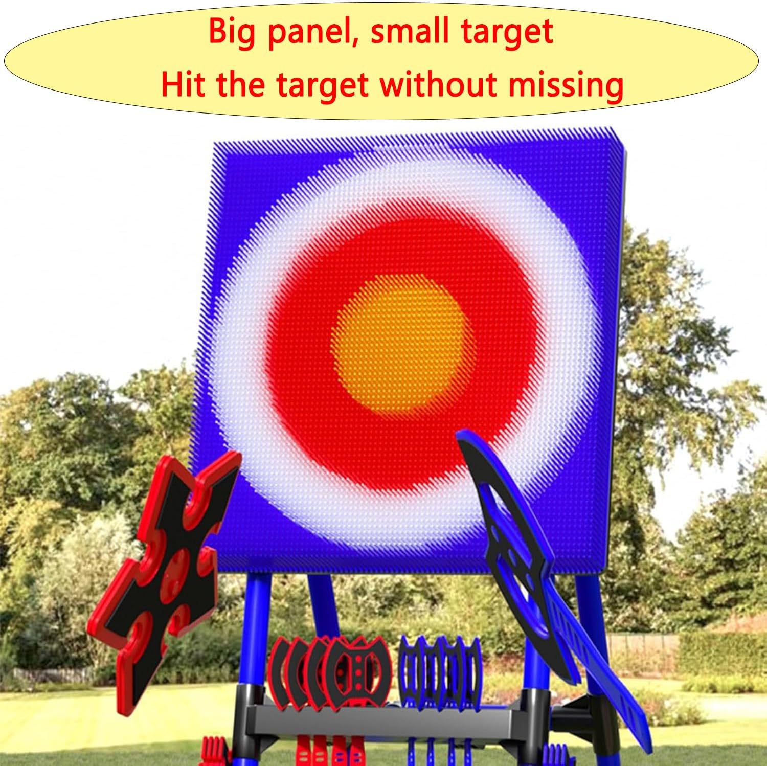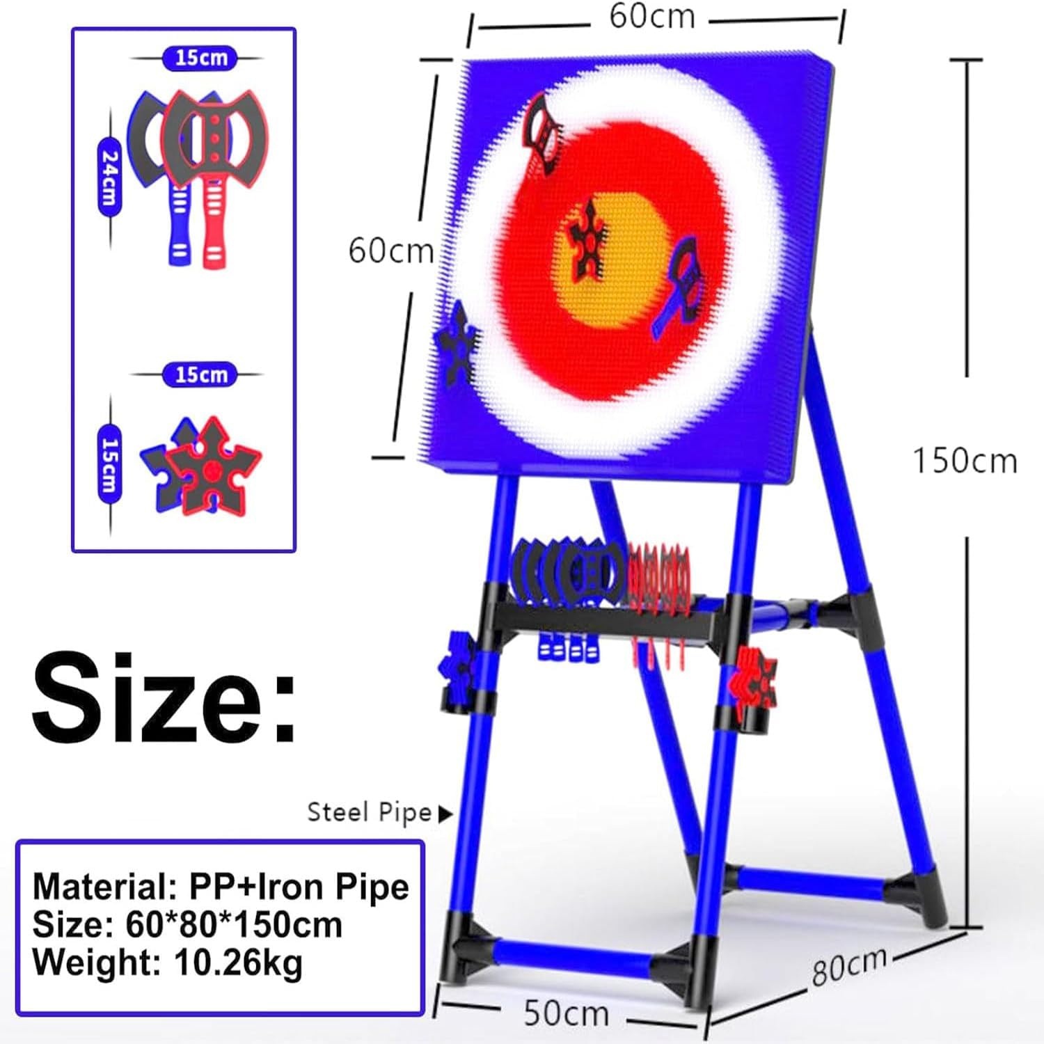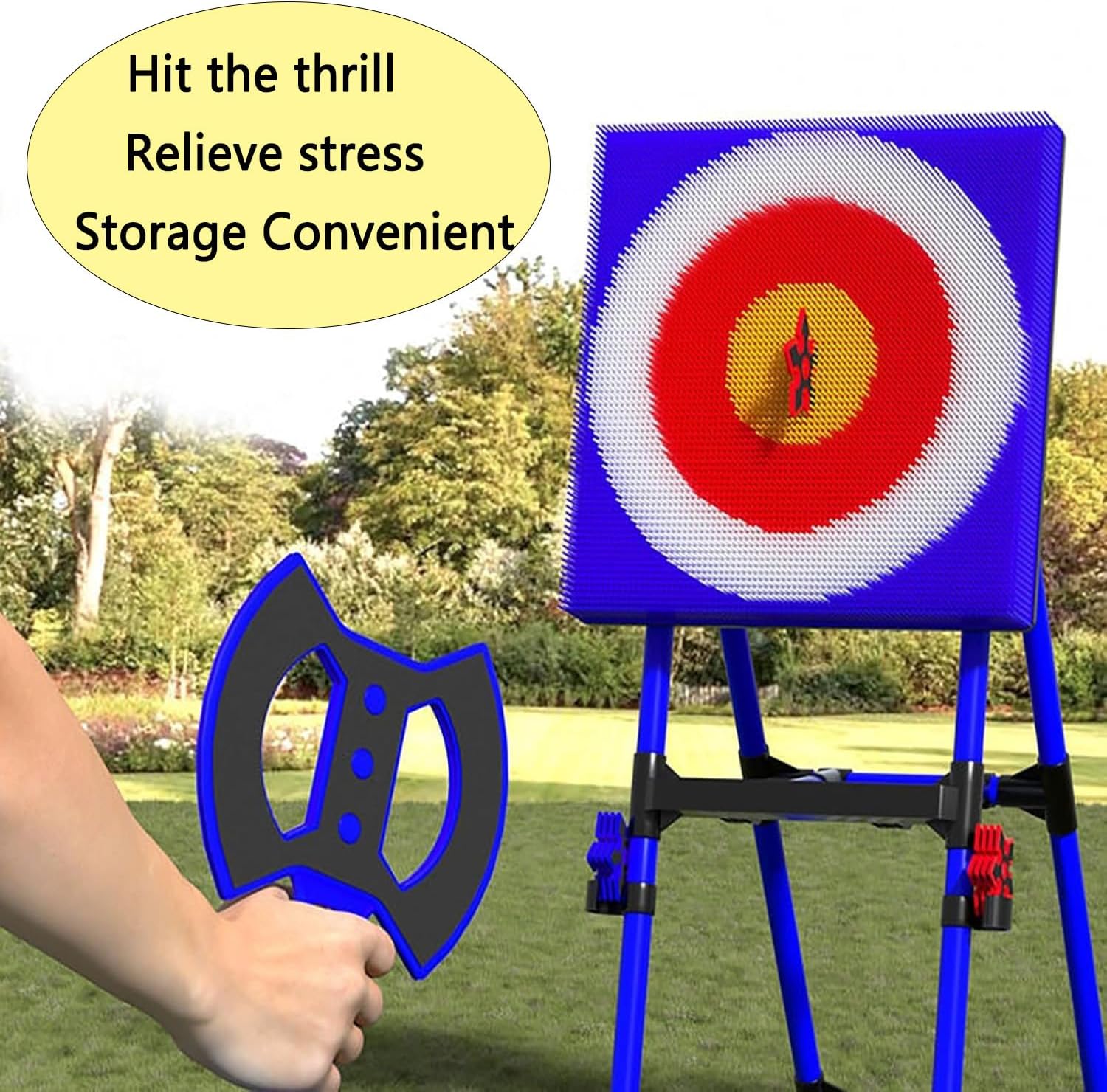 Set di gioco di lancio dell'ascia premium: presenta un sorprendente design blu con resistenti assi per freccette in PP+TPR e un robusto tubo in PVC+staffa per tubi in ferro. Il set include un bersaglio spesso 150 mm, misura 60,7 × 83 × 152 cm e pesa 10,26 kg. Viene fornito con 1 corpo freccette, 8 asce per freccette a manico lungo e 8 freccette a cinque stelle per un divertimento senza fine. Tavola da bersaglio ispessita da 150 mm: progettata per espandere l'area di colpire efficace e ridurre gli errori, garantendo lanci precisi ogni volta. La struttura anti-caduta ad alta densità e la matrice di aghi migliorata bloccano saldamente le freccette in posizione, anche con lanci potenti. Struttura a doppio rinforzo: presenta punti di connessione rinforzati e travi per una maggiore durata. Il tubo in ferro ispessito resistente alla pioggia e al sole migliora la longevità ottimizzando il rimbalzo per lanci più fluidi e senza sforzo. Pieghevole per una facile conservazione: il set di bersagli da lancio vanta un design pieghevole senza compromettere la qualità del pannello spesso. I doppi scomparti rendono l'imballaggio dopo il gioco un gioco da ragazzi, garantendo un facile trasporto e una conservazione salvaspazio. Versatile per tutte le occasioni: perfetto per team building all'aperto, riunioni di famiglia o sollievo dallo stress in ufficio. Il set include asce a manico lungo adatte per adulti e individui più grandi, oltre a freccette compatte a sei stelle progettate per donne e bambini, garantendo lanci divertenti e precisi per tutti.