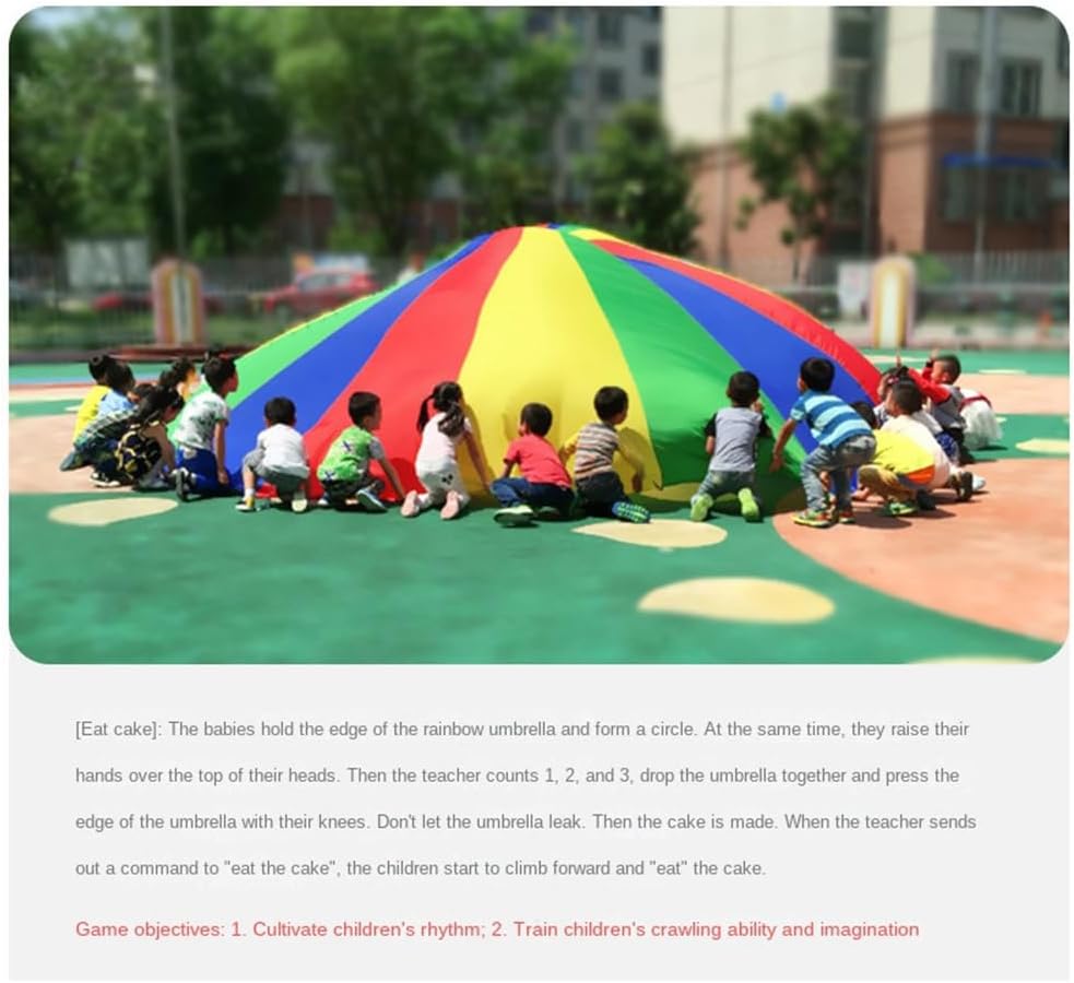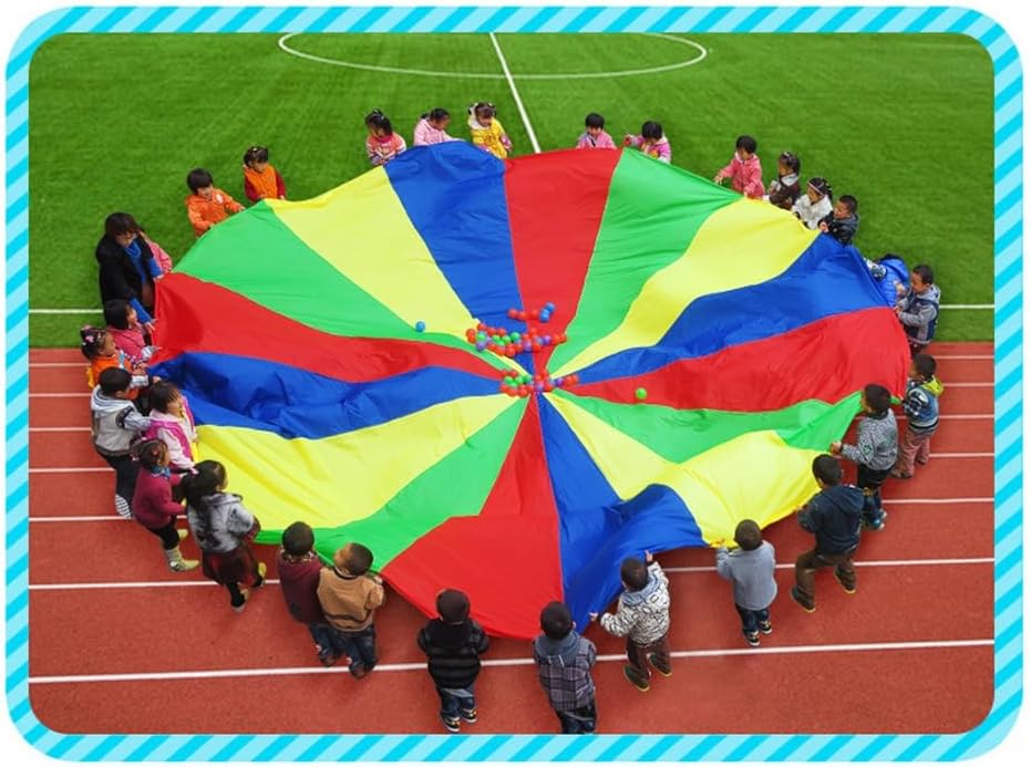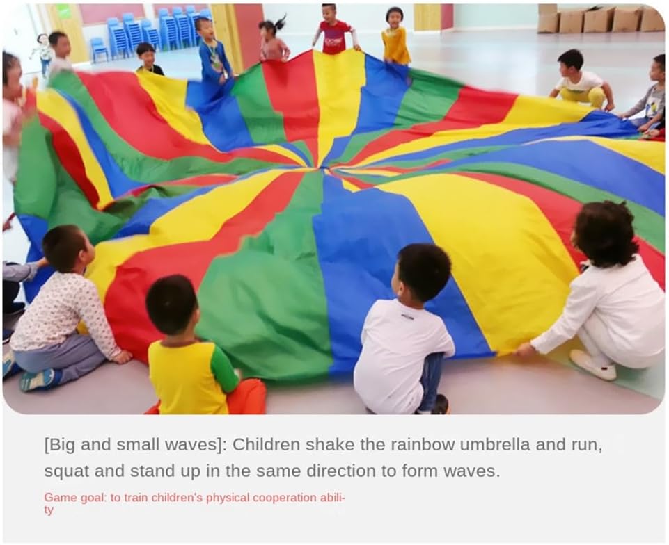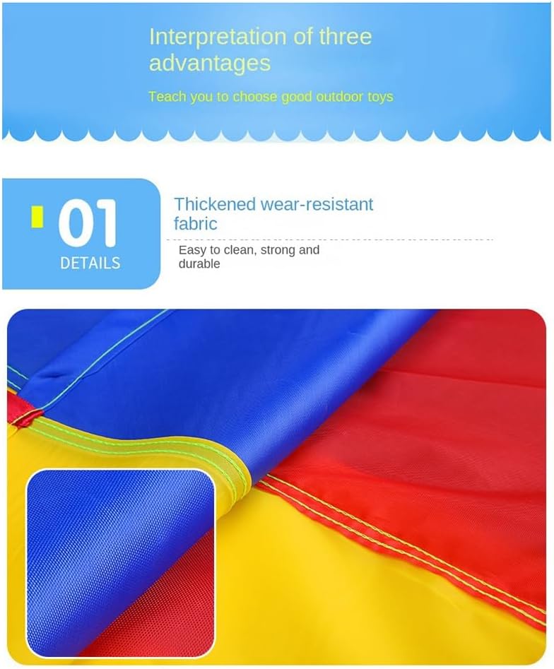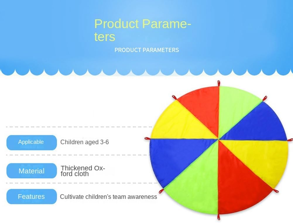 [Maniglia a punto croce]Il paracadute per bambini è realizzato in poliestere, che è molto resistente e può resistere a un'ampia gamma di temperature. La maniglia è cucita a croce e il centro in rete rinforzata fornisce un ampio flusso d'aria [Ampiamente usato] I giocattoli con paracadute per bambini una vasta gamma di applicazioni e sono adatti a occasioni, feste di compleanno, picnic, case, parchi, scuole, corsi per genitori, riposo [Semplice e facile da giocare] Il vantaggio del giocattolo con paracadute è che il rapporto tra le dimensioni della maniglia è 1:1. Le maniglie sono distribuite uniformemente attorno al paracadute, garantendo un'eccellente spaziatura e giochi di gruppo ritmati [Esercizio coordinazione occhio-mano] Il paracadute per bambini allena la percezione uditiva e la coordinazione occhio-mano dei bambini durante il gioco, consentendo loro di iniziare rapidamente la vita. [Migliora la degli arti superiori] Il vantaggio del paracadute è che può incoraggiare i bambini a a turno e coltivare di cooperazione, rafforzando allo stesso tempo la degli arti superiori in modo divertente.