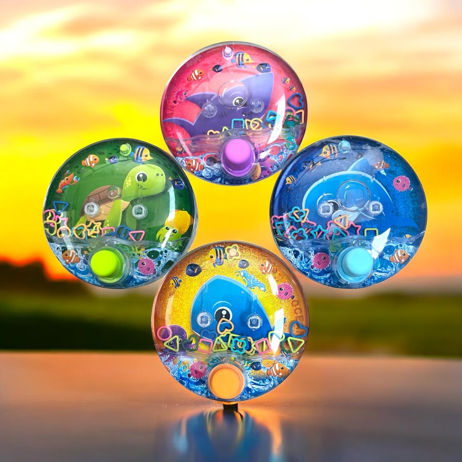 DESIGN COMPATTO: set d'acqua portatile da 10 x 10 cm, perfetto per viaggi e intrattenimento ovunque Animali marini: include personaggi preferiti come balena, squalo, tartaruga e delfino, Unicorni, Dinosauri, un per un maggiore divertimento Gioco di abilità: sviluppa la coordinazione occhio-mano e la destrezza attraverso il set di anelli d'acqua FACILE DA USARE: dispone di un pulsante per attivare il movimento dell'acqua, ideale per i bambini piccoli DIVERTIMENTO APPRENDIZZATO: Combina intrattenimento ed educazione mentre i bambini interagiscono con temi marini