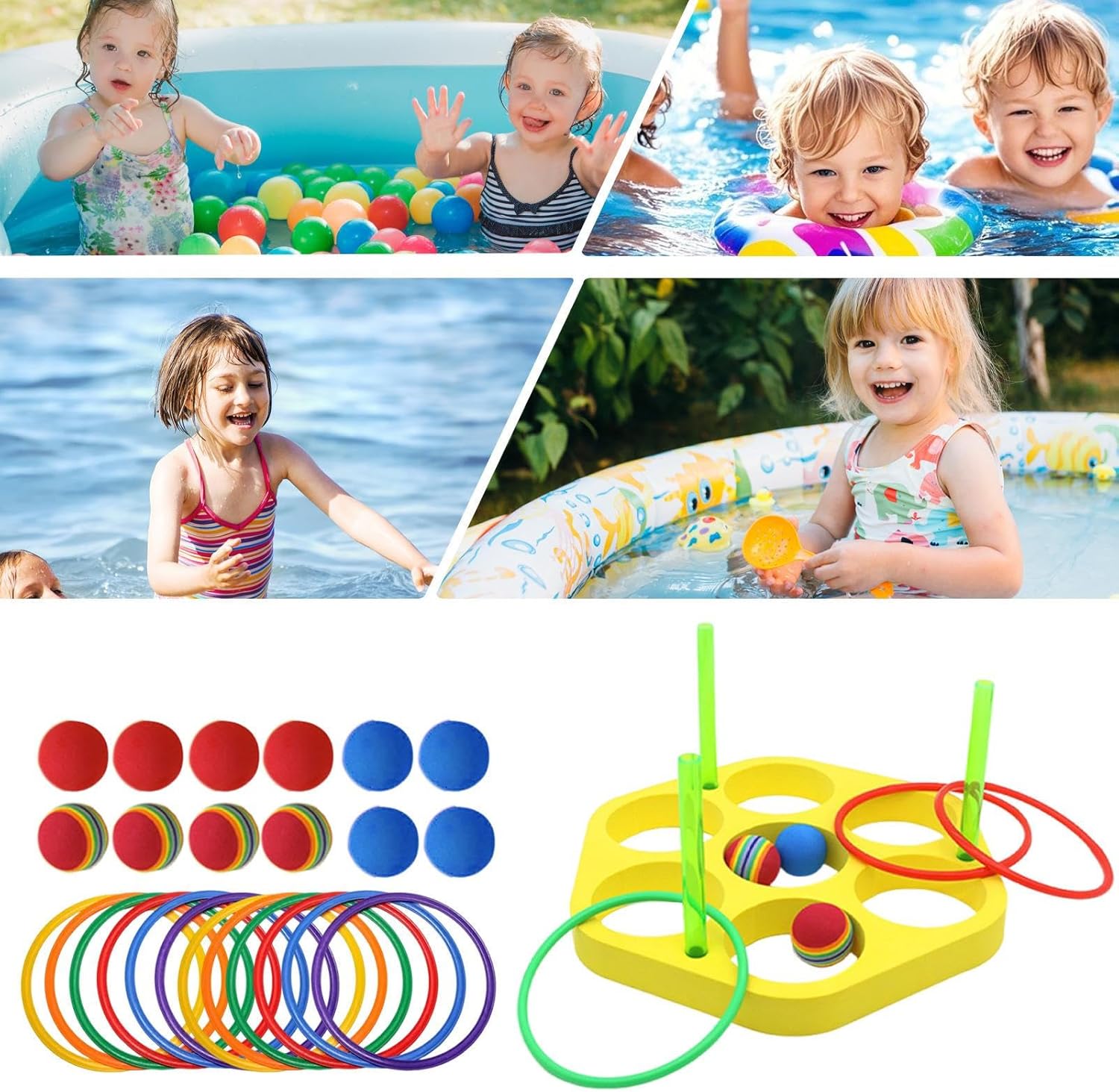 Design Protettivo: Sagome ergonomiche senza spigoli prevengono graffi o lesioni, giocattolo acquatico affidabile scelto dai genitori responsabili Palette accattivante: Tecnologia cromatica studiata per ambienti acquatici intensifica la brillantezza dei colori quando bagnati, offrendo doppia funzionalità come strumento educativo per riconoscimento tonalità e gioco motorio Costruzione robusta: Realizzato in EVA espanso ad alta densità, questo gioco acquatico galleggiante mantiene stabilità ottimale durante l'uso, resistendo all'usura da esposizione prolungata all'acqua e garantendo affidabilità nei movimenti dinamici in piscina Divertimento Educativo: Migliora le capacità motorie e la coordinazione con attività dinamiche di gruppo, creando momenti di interazione educativa ideali per bambini e adulti Design antiscivolo: La struttura con superficie texturata permette un controllo ottimale durante il lancio degli anelli, trasformando le attività acquatiche in occasioni di apprendimento motorio e momenti di divertimento condiviso per tutta la famiglia.