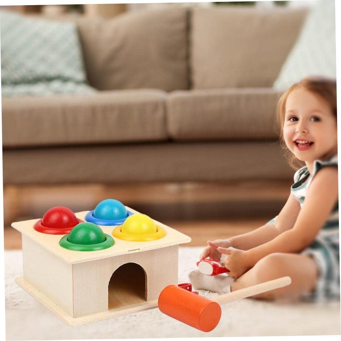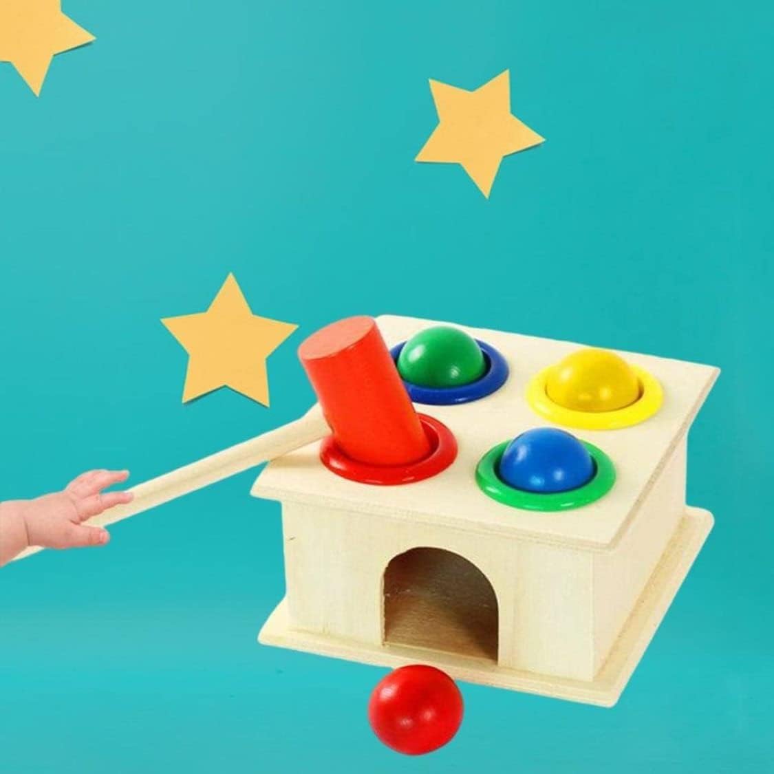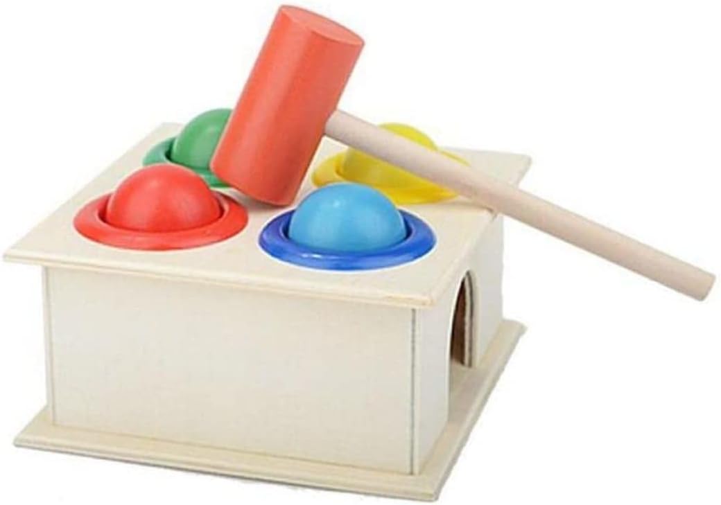 MATERIALE SICURO: Realizzato con materiali naturali di protezione dell'ambiente e colorato con vernici atossiche a base d'acqua, questo giocattolo a martello in legno con superficie ben lucidata è sicuro per i più piccoli. FANTASTICO: il giocattolo con martello in legno è una scelta perfetta come regalo di compleanno per i più piccoli..Otterrai: Una scatola da martellamento in legno, 1, 4 palline. ROBUSTO E: questo giocattolo da martellamento in legno è un giocattolo per bambini semplice e ben costruito..I giocattoli da martellamento per bambini piccoli realizzati in legno di alta qualità hanno una struttura così robusta che può resistere ad anni di colpi. SVILUPPARE LE ABILITÀ MOTORIE FINE: il giocattolo martellante per i più piccoli è appositamente progettato e adatto per una facile presa..Il giocattolo educativo con martello a sfera può aiutare a promuovere la coordinazione occhio-mano, migliorare la destrezza e l'esercizio fisico mentre colpiscono le palle. RICONOSCIMENTO E ABBINAMENTO DEL COLORE: le palline sono dipinte con quattro diversi colori vivaci..Ogni pallina ha una fessura designata per il rispettivo colore, che è un'ottima caratteristica che il tuo bambino riconosce e abbina i colori.