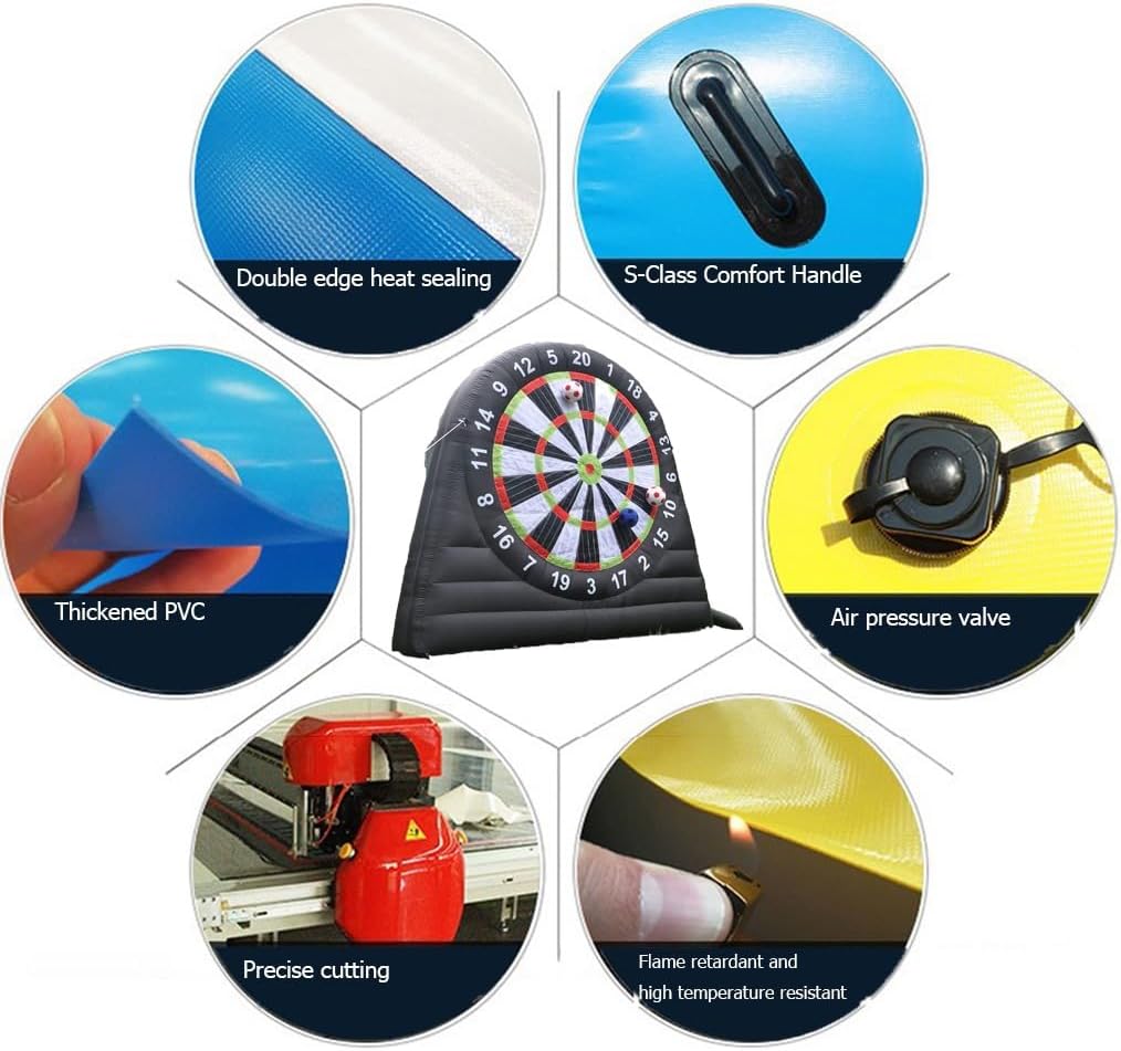 Durevole e stabile con dimensioni di 3 x 3,4 m, realizzato in tessuto Oxford 210D e doppie cuciture, con un robusto design del telaio per un uso duraturo. Installazione rapida in meno di 2 minuti e facile da riporre dopo lo sgonfiaggio, rendendolo comodo per il divertimento e la portabilità in movimento. Installazione semplice con istruzioni chiare - basta gonfiare, picchettare e chiudere la cerniera per una maggiore stabilità e sicurezza. Versatile per individui e team in vari ambienti come cortili, scuole e lotti aziendali, offrendo un'ampia applicazione. Include accessori completi come un soffiatore, una pompa e altro ancora, garantendo tutto il necessario per l'uso immediato.