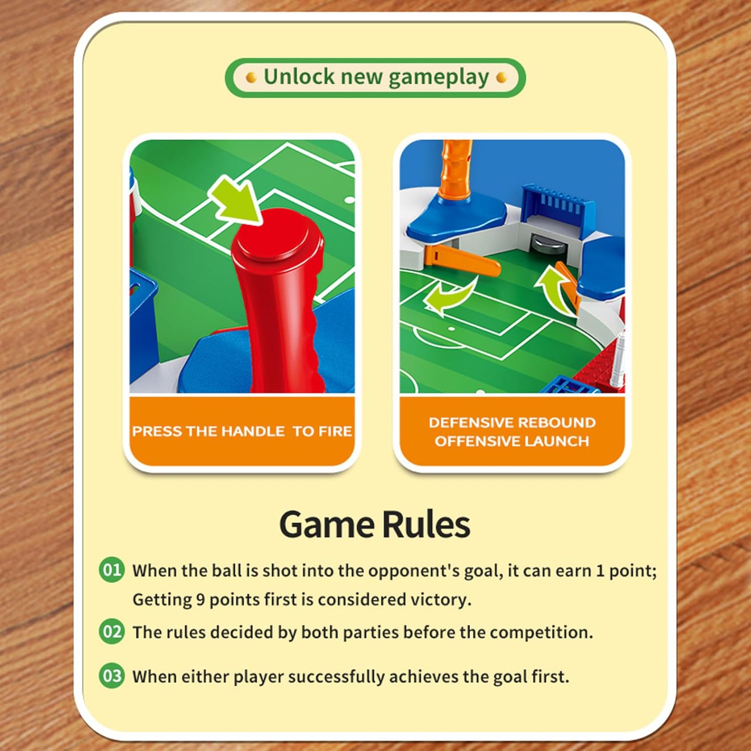 Idea perfetta: ideale come regalo di calcio per ragazzi dagli 8 ai 12 anni e per i bambini che amano i giochi da tavolo, questo gioco di sport indoor è un premuroso regalo di compleanno o un'attività di legame familiare che promuove il gioco attivo e la competizione amichevole. Costruzione affidabile: realizzato con accessori per biliardino e materiali robusti, questo gioco da tavolo può resistere a un gioco energico mantenendo un gameplay fluido per ore di divertimento continuo. Compatto e portatile: le sue dimensioni ridotte consentono un facile posizionamento in qualsiasi sala giochi o area giochi, offrendo una configurazione rapida e un comodo spazio di archiviazione, così i bambini possono divertirsi con emozionanti partite di calcio sempre e ovunque all'interno. Coinvolgente ed educativo: giocare a questo gioco da tavolo interattivo di calcio incoraggia la coordinazione occhio-mano, il pensiero strategico e l'interazione sociale, fornendo sia intrattenimento che benefici per lo sviluppo dei bambini. Design adatto ai bambini: questo gioco da tavolo da biliardino è stato appositamente progettato pensando alla sicurezza e al divertimento, perfetto per i bambini dai 3 ai 12 anni per godersi il gioco al chiuso senza spigoli vivi o regole complicate, rendendolo ideale per il tempo di gioco in famiglia.