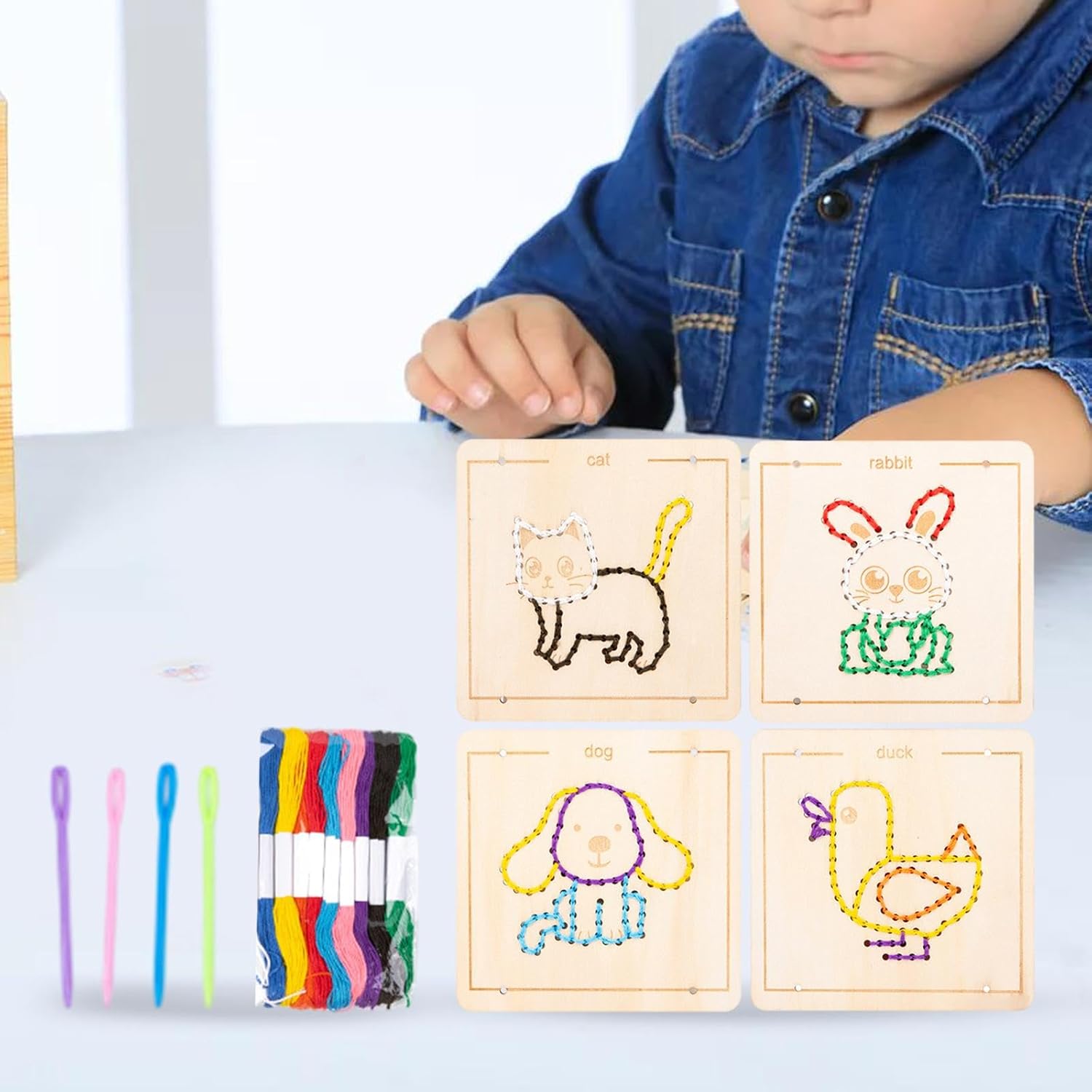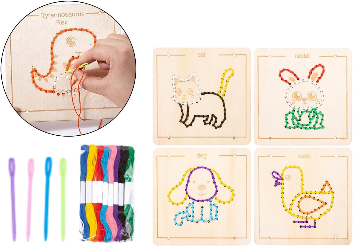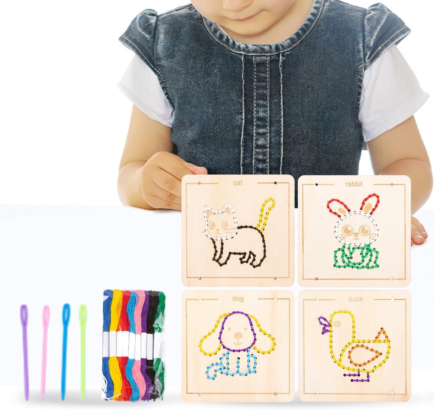 【Bambini che imparano】: basta tenere il piccolo neddle su una corda e inserirlo attraverso i fori di queste tavole, tiene i bambini occupati per ore, il che può coltivare le capacità di problem solving dei bambini e incoraggiarli all'indipendenza. 【Early Educational】: i giocattoli da tavolo per bambini migliorano anche la loro immaginazione mentre ci giocano. Adatto per viaggi, attività in aereo, homeschooling, gioca con il giocattolo di interazione dei genitori. 【Giocattolo di allacciatura in legno】: giocattolo da ricamo in legno per creare vari modelli di cartoni animati, include 4 modelli di cartone, 4 aghi corde colorate per allacciatura. 【Capacità motorie fini】: i giocattoli da infilare sviluppano le capacità motorie del tuo bambino, aiutano a migliorare la coordinazione occhio-mano, l'allenamento dell'azione e le capacità di vestirsi. Coinvolgi i tuoi figli in modo più concentrato. 【Materiale】: set di giochi di ricamo puzzle in legno, realizzato in materiale di legno, liscio, senza sbavature, resistente, sicuro da giocare.