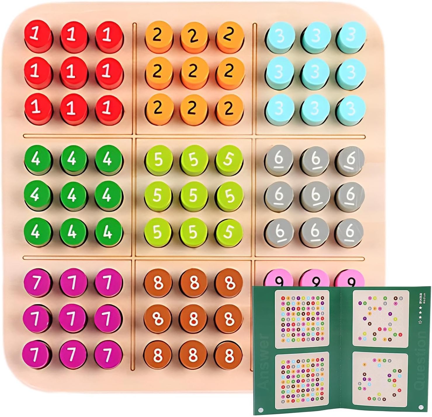 Materiale selezionato: con la nostra tavola per puzzle sudoku realizzata in materiale di legno sicuro ed ecologico, puoi dedicarti più ore di gioco promuovendo al stesso la sostenibilità. Goditi l'emozione della stimolazione intellettuale senza compromettere la sicurezza l'ambiente. Apprendimento interattivo: la nostra tavola puzzle Sudoku è il giocattolo ideale per consentire ai bambini di esercitare la propria immaginazione e capacità di coordinazione manuale. Con questo giocattolo didattico, i bambini riorganizzano i numeri per rendere uguali i risultati. Incoraggia il pensiero critico e fa sì che i bambini amino pensare e imparare. Avanzamento delle abilità: la tavola del Sudoku promuove la creatività, migliora il pensiero critico e sviluppa la coordinazione occhio-mano, migliorando lo sviluppo delle abilità nei bambini. Divertimento da solo in gruppo: che tu voglia sfidare te stesso giocare con i tuoi amici, questo tabellone del sudoku è perfetto per te. Puoi giocare da solo, in coppia anche di più ed esercitare la tua capacità di reazione e la coordinazione occhio-mano. Regalo pratico: migliora il gioco dei regali con questo Sudoku Puzzle Board, perfetto per chi ama i giochi rompicapo. Offrendo più divertimento e soddisfazione, è un regalo perfetto per compleanni, Natale Pasqua. Dì addio ai regali noiosi e dai il benvenuto all'affinamento della mente.