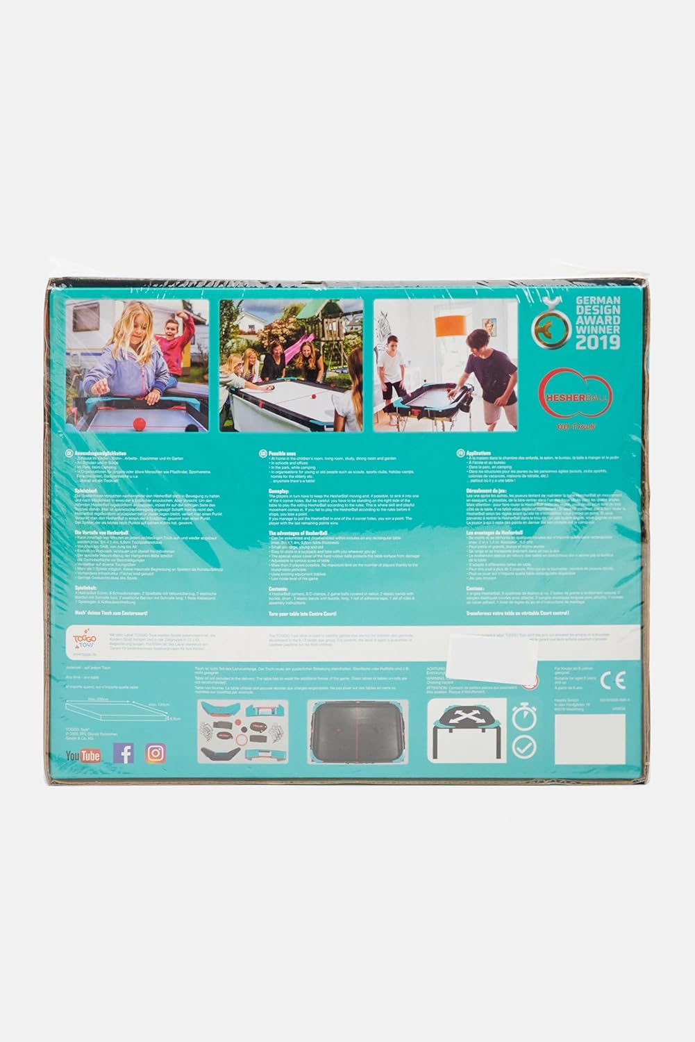 Si adatta a quasi tutti i tavoli: per giocare con gli adulti il tavolo deve essere largo almeno 80 cm. Per i bambini è sufficiente una larghezza di 60 cm per ottenere una dimensione minima del tavolo di 100 x 60 cm. Le dimensioni massime del tavolo sono 2m x 1,4m. Montaggio rapido in 5 minuti: il gioco con la palla può essere assemblato in soli 5 minuti. Gli angoli servono come porte e sono fissati agli angoli del tavolo con viti di bloccaggio. Tra gli angoli è fissata una cinghia che permette alle palline da gioco di rimbalzare in modo ottimale. Mobile e poco ingombrante: il set completo di Hesherball si adatta perfettamente alla scatola di trasporto in dotazione, ha un peso ridotto e può quindi essere facilmente trasportato sotto il braccio. Set completo: il gioco da tavolo è composto da 4 angolari/porte Hesher con viti di serraggio, 4 cinghie con chiusura a clip come nastro e 2 palline in gomma piena con rivestimento in velluto, per una protezione affidabile della superficie del tavolo. TOGGO TOYS: con TOGGO Toys ora puoi vivere nella cameretta dei tuoi bambini: l'etichetta contrassegna i giochi che fanno divertire i bambini e garantisce ai genitori un divertimento di gioco sicuro per grandi e piccini.