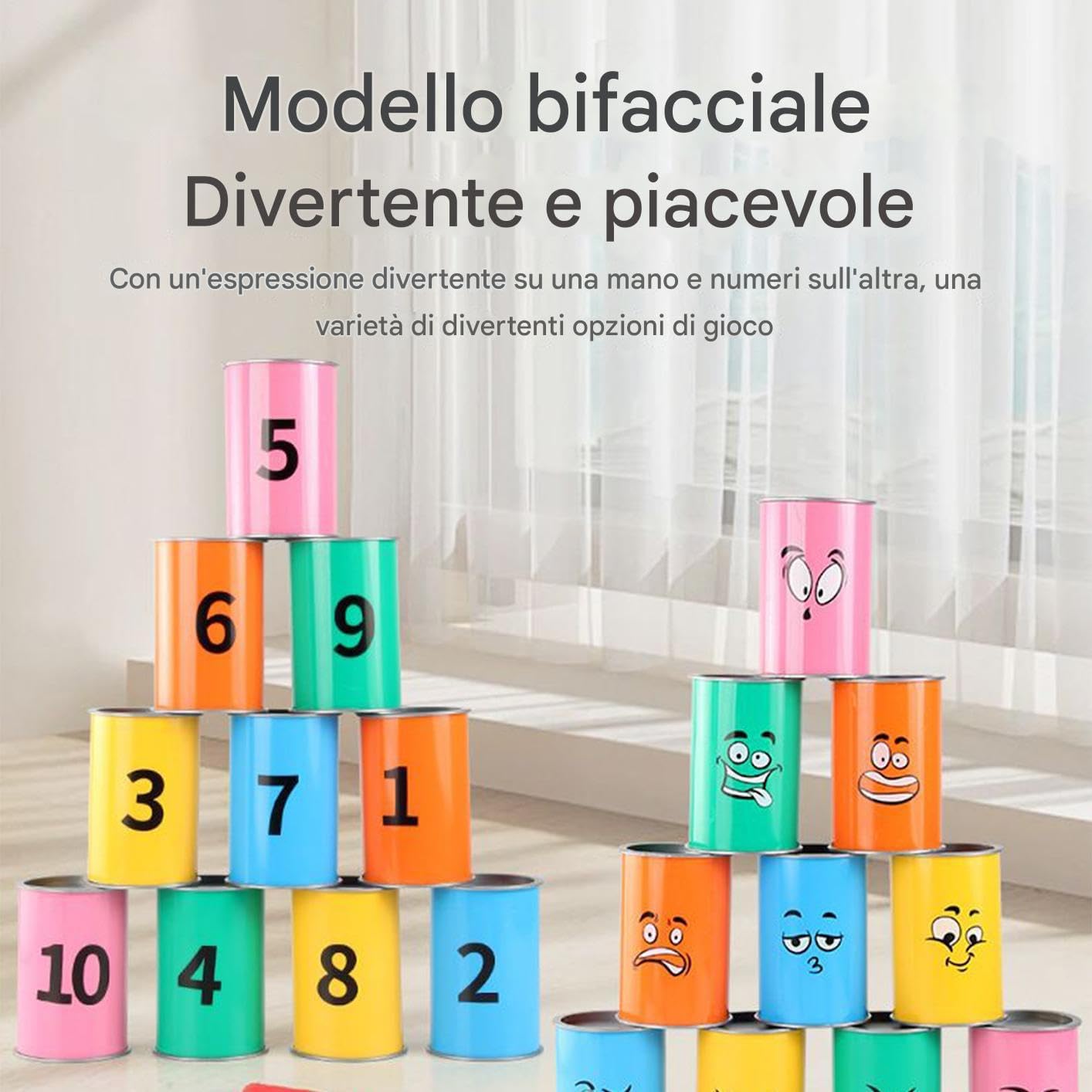 Design Solido: Il materiale ABS resistente fornisce una costruzione in di sopportare lanci e cadute continui, assicurando che il tuo gioco del bagher rimanga funzionale e piacevole nel con manutenzione minima Costruisce Concentrazione e Precisione: Aumenta la coordinazione occhio-mano mentre migliora la concentrazione e la precisione per i bambini, con un gioco coinvolgente di lancio del sacchetto Divertimento Interattivo di Caduta: Porta con te il divertimento di un gioco di lancio con lattine impilabili create per il piacere di abbattere, generando momenti vivaci a feste, eventi familiari o campeggi all'aperto incoraggiando il lavoro di e l'interazione tra i partecipanti Opzioni di gioco versatili: La doppia faccia offre diverse varianti di gioco, con target numerati su un lato e facce buffe dall'aspetto per un divertimento interattivo e coinvolgente Opzione Regalo: Eccellente per compleanni, barbecue e raduni, assicura divertimento per tutte le età, favorisce l'interazione e crea momenti memorabili in ogni evento