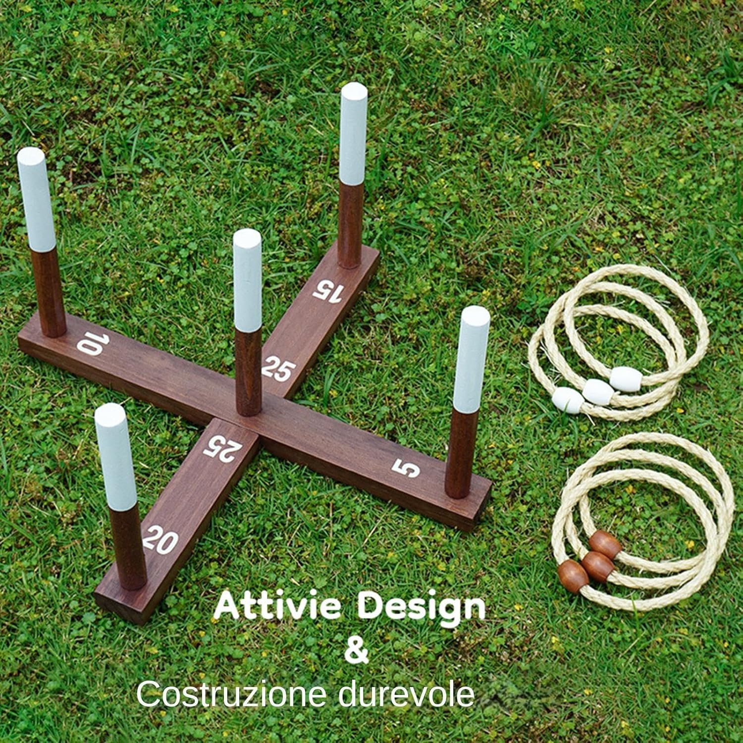 Divertimento Inclusivo: Realizzato per una presa confortevole dei bambini e un uso senza fatica degli adulti. Il gioco leggero incoraggia il coinvolgimento immediato, promuovendo momenti di gioia condivisa durante raduni e libero. Configurazione Stabile: Telaio di sostegno robusto combinato con anelli intrecciati a mano con cura assicura lunga durata e offre un'attività divertente ma sicura pensata per ogni fascia d'età. Gioco Competitivo Divertente: Migliora la coordinazione occhio-mano con livelli di difficoltà regolabili, offrendo un gameplay competitivo e piacevole adatto a tutte le età e livelli di abilità con anelli multiuso Design Efficiente e Pratico: Borsa inclusa per organizzazione immediata; concepito per trasporto agevole, design compatto adatto a divertimento indoor e outdoor Montaggio Rapido e Utilizzo Adattabile: Progettato per installazione immediata e gioco versatile, questo gioco di lancio anelli è adatto a diverse superfici, per attività di gruppo, campeggio e feste con intrattenimento coinvolgente per tutte le età garantendo divertimento senza sforzo