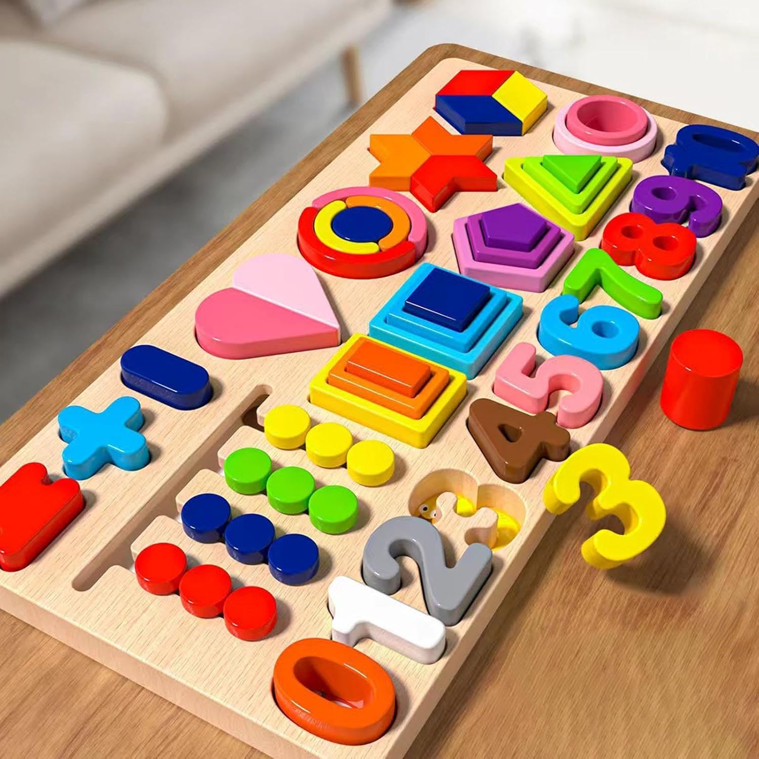【CENTRO DI APPRENDIMENTO】: Questa tavola di attività in legno 5 in 1 è un set di gioco educativo completo. Combina un classificatore di forme, un puzzle di numeri, anelli di impilamento colorati e un semplice giocattolo in un design compatto. 【LE PRIME COMPETENZE MATEMATICHE DIVERTENTI】: La lavagna presenta i numeri da 1 a 10, oltre ad addizione, sottrazione e segni di uguale. Questo consente di esercitarsi con il conteggio e semplici equazioni. 【AUMENTA LA CRESCITA COGNITIVA】: Più di un semplice giocattolo, questo è progettato per sviluppare . Ognuna delle cinque modalità di gioco è progettata per migliorare il pensiero completo, la memoria e la pazienza. 【SVILUPPO DI FORME E LOGICA】: la mente del tuo bambino con 9 diverse forme geometriche. Abbinare ogni blocco al suo spazio corretto migliora il riconoscimento delle forme, le capacità di problem solving e il pensiero logico. 【GIOCO DI ORDINAMENTO DEI COLORI LUMINOSI】: la percezione del tuo piccolo con anelli colorati da impilare. Questo gioco coinvolgente incoraggia i bambini a ordinare anelli per colore e a contarli mentre li impilano.
