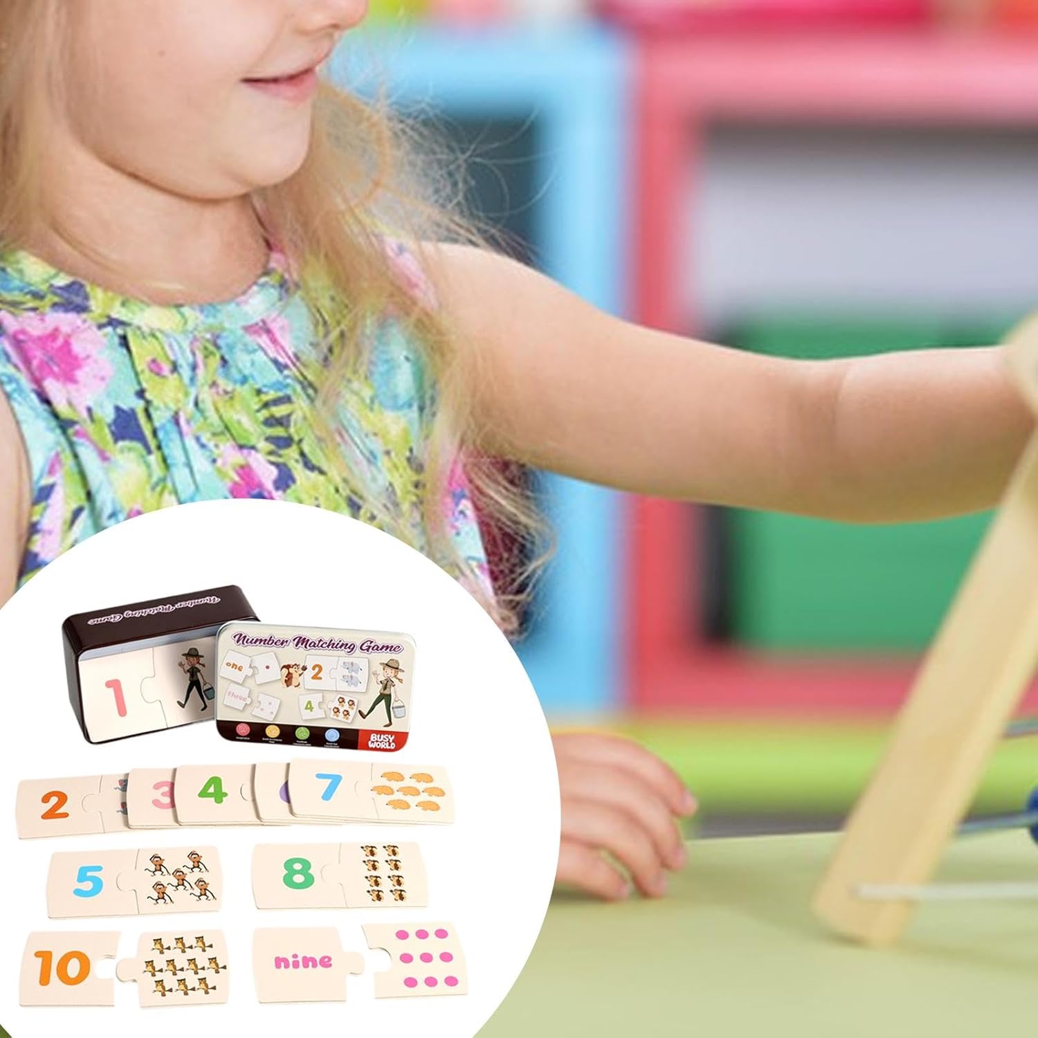 【Strumento educativo divertente】: il giocattolo per l'apprendimento precoce migliora le prime abilità matematiche come addizione, sottrazione, riconoscimento dei numeri e coordinazione occhio-mano attraverso l'apprendimento 【Compatto e portatile】: include una scatola di immagazzinaggio 12,5 cm x 8 cm x 4 cm / 4,92 pollici x 3,15 pollici x 1,57 pollici per una facile organizzazione; le carte puzzle misurano 10,1 cm x 5,3 cm / 3,98 pollici x 2,09 pollici, ideali per la casa o il viaggio 【Ottima scelta regalo】: il giocattolo puzzle è un bel regalo per compleanni o vacanze, progettato per bambini e bambine dai 3 anni in su per ispirare l'apprendimento attraverso il gioco 【Apprendimento interattivo dei numeri】: il gioco di abbinamento dei numeri è un puzzle dai colori vivaci che utilizza pezzi di puzzle con numeri e quantità per aiutare i bambini ad acquisire facilmente le capacità di conteggio in modo coinvolgente 【Materiale di qualità】: Realizzato in legno di qualità, questo robusto giocattolo educativo presenta bordi lisci e arrotondati per un uso e un gioco prolungati
