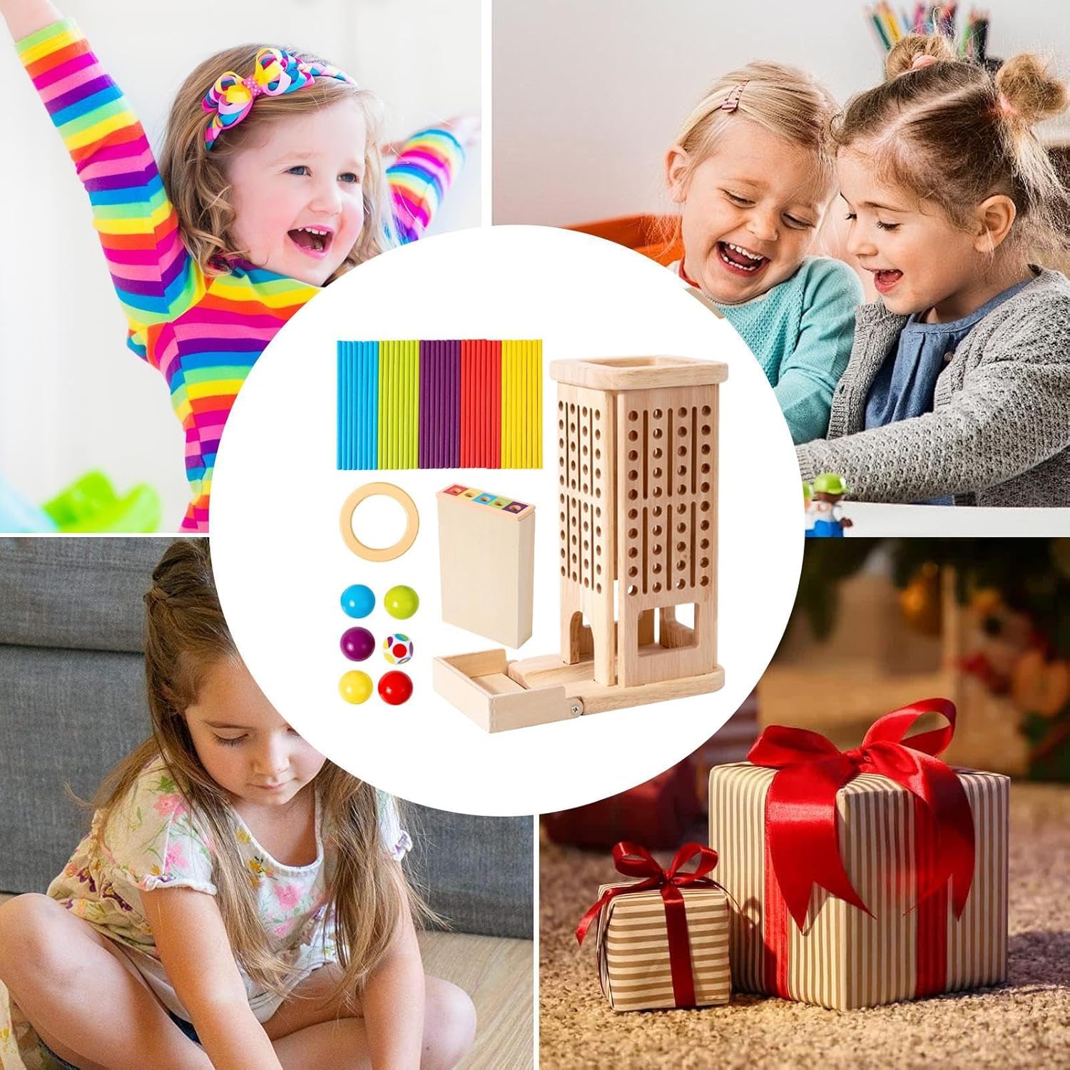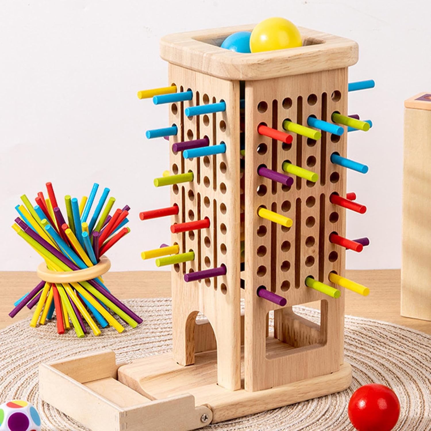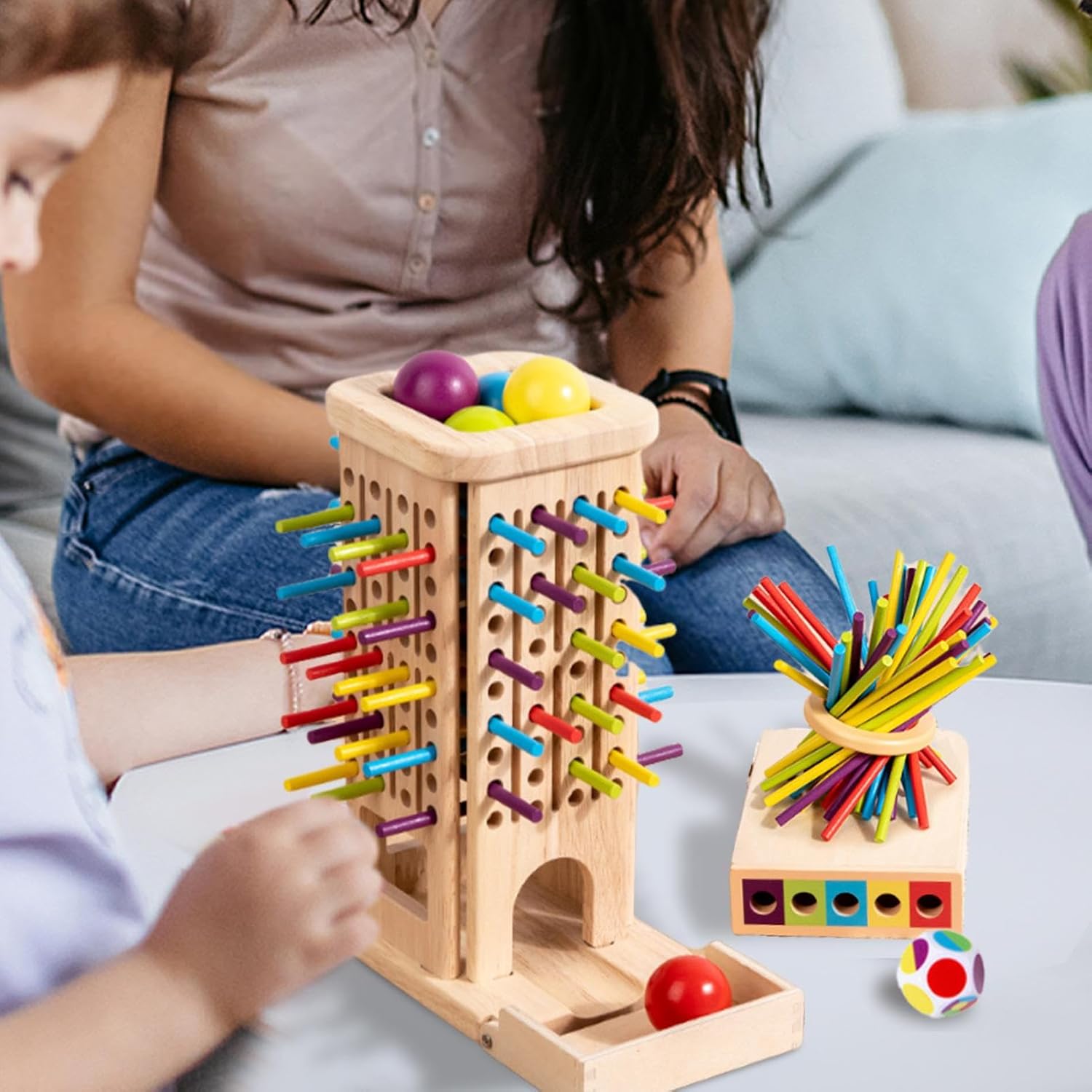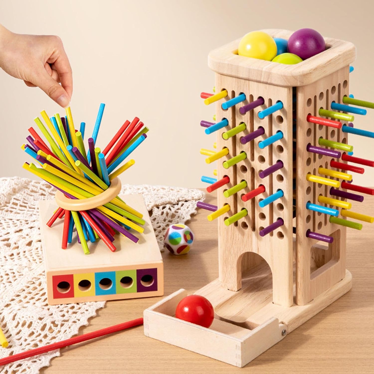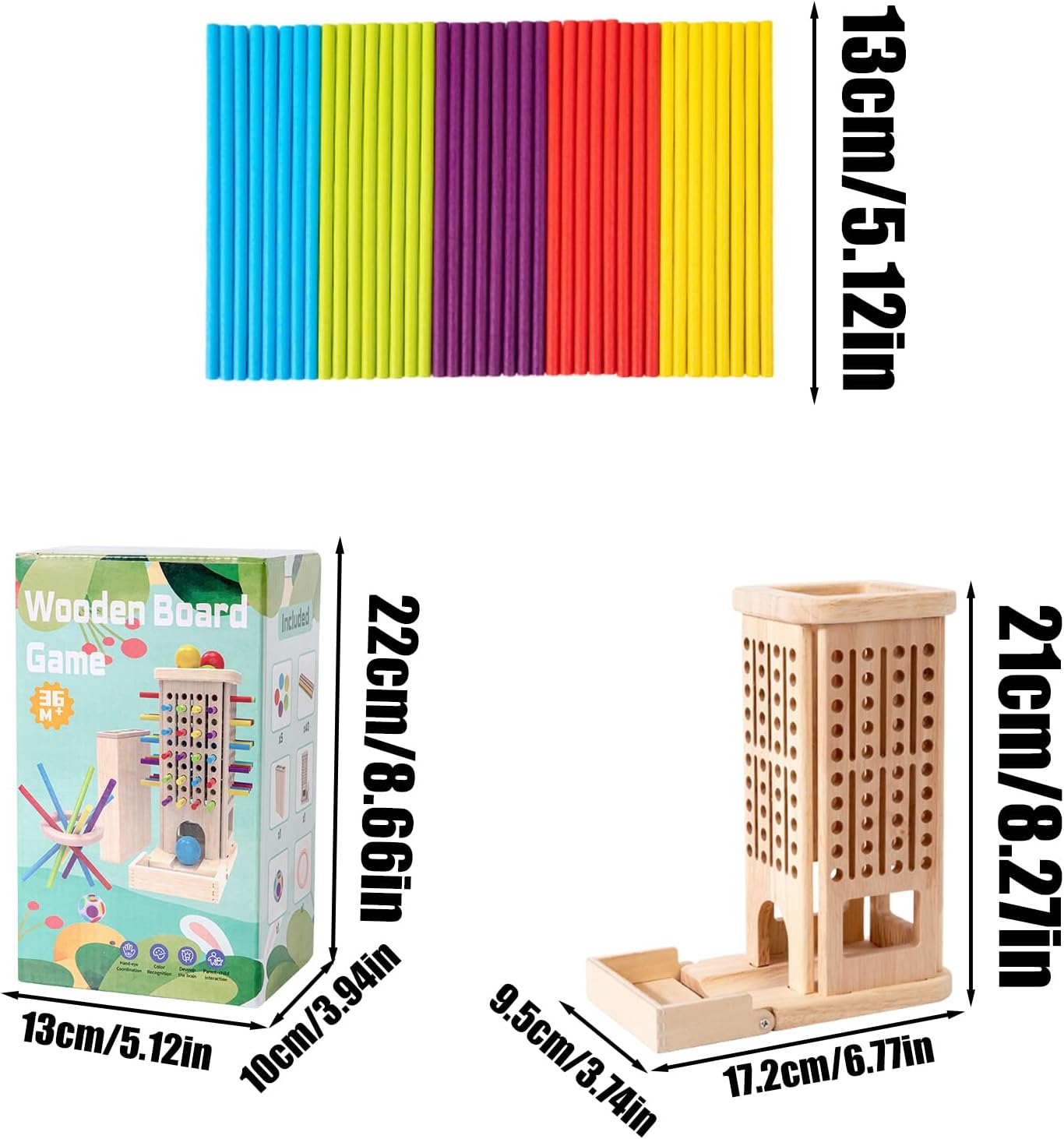 Alta qualità: superfici levigate e aste robuste e indeformabili caratterizzano questo gioco. Realizzato in resistente legno naturale e trattato con vernice ecologica, offre un'esperienza di gioco coinvolgente e sicura per tutte le età Diversi modi di giocare: Affina il riconoscimento dei colori e il pensiero strategico con emozionanti sfide tirando il bastoncino I giochi multiplayer combinano attività di ordinamento dei colori dei cubi con una modalità competitiva a due giocatori per opzioni di intrattenimento flessibili Il gioco è ideale per riunire amici e famiglie Facile da iniziare: Riunisci la tua famiglia con questo semplice set iniziale da 2 a 6 giocatori. Unisce regole adatte alle famiglie e gare entusiasmanti per esperienze condivise. Che siano bambini o adulti, tutti possono partecipare subito e scoprire il piacere di giocare. Perfetto per serate di gioco spontanee e fine settimana rilassati. Sticks Dice Game crea ricordi duraturi giocando insieme. Incoraggiare l'ordinamento dei colori: attività come il disegno con il bastoncino, l'ordinamento dei colori e il conteggio semplice migliorano la coordinazione occhio-mano e le capacità motorie. Ordinare i colori e contare in modo giocoso promuove le capacità motorie, ideali per lo sviluppo dei bambini. Il gioco offre un modo divertente per esercitare le abilità di base divertendosi mentre i bambini imparano a fare movimenti precisi. Regalo pensato per i bambini: questo gioco di dadi a bastoncini combina apprendimento e divertimento ed è molto popolare tra le famiglie. È ideale come regalo di compleanno o per occasioni speciali per intrattenere i bambini invogliandoli a giocare. Un regalo ideale che crea ricordi indelebili e sarà apprezzato a lungo