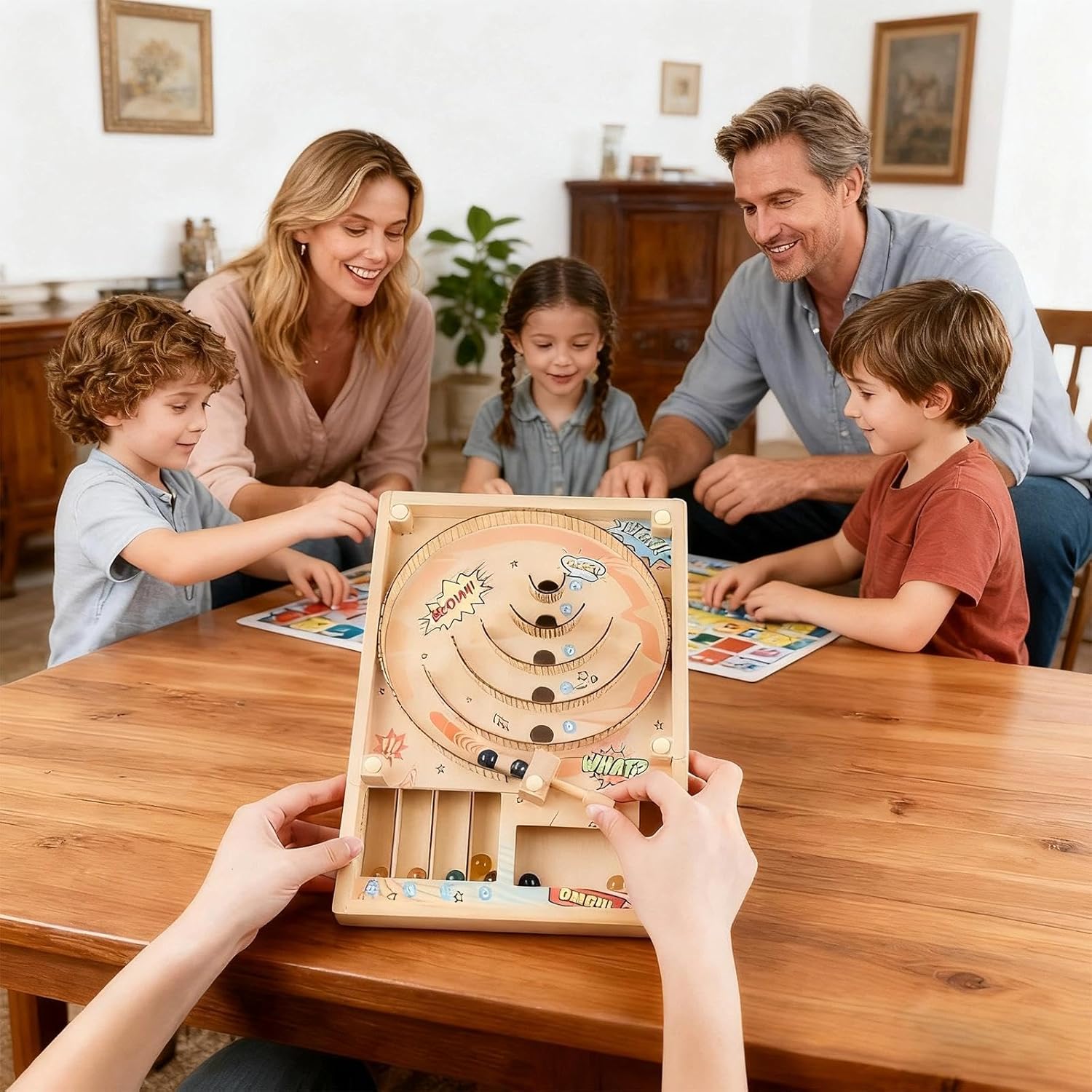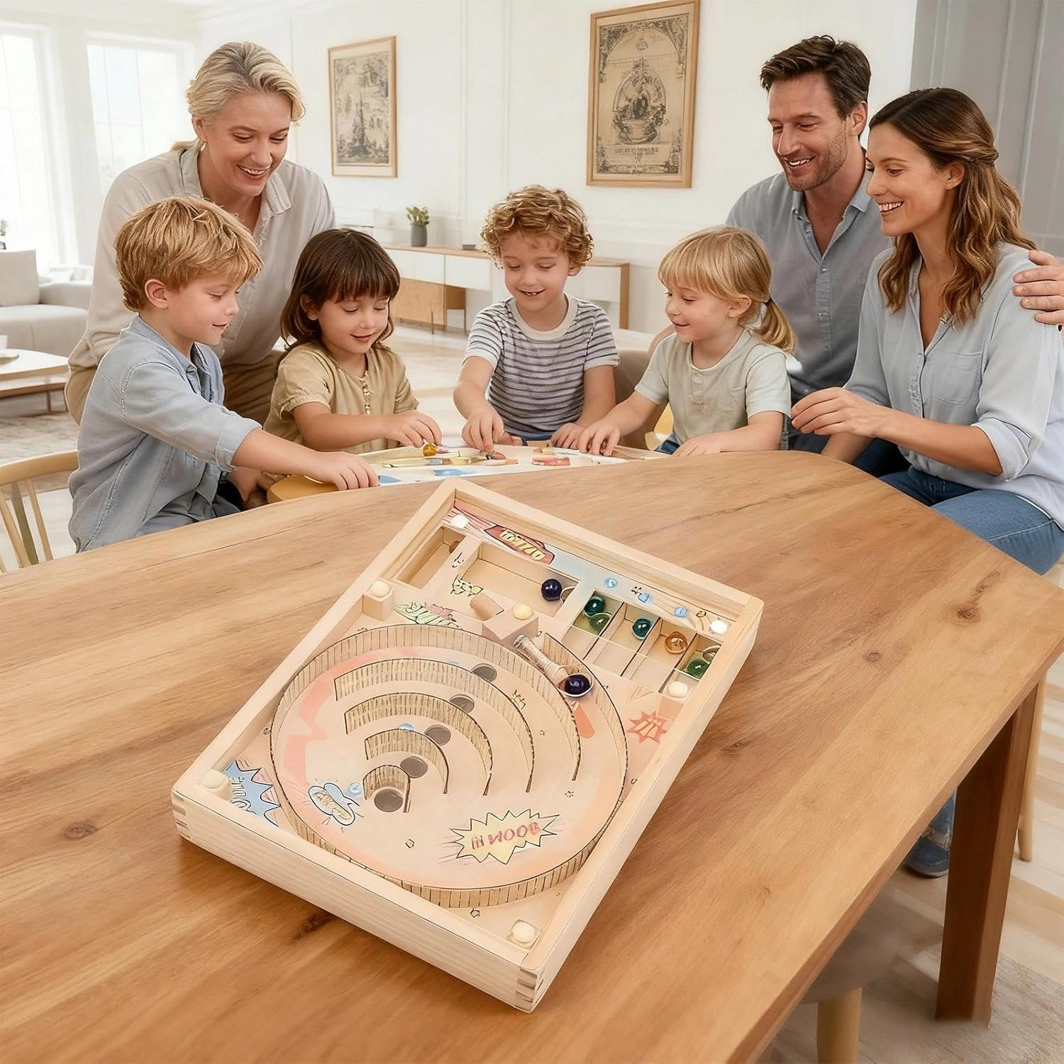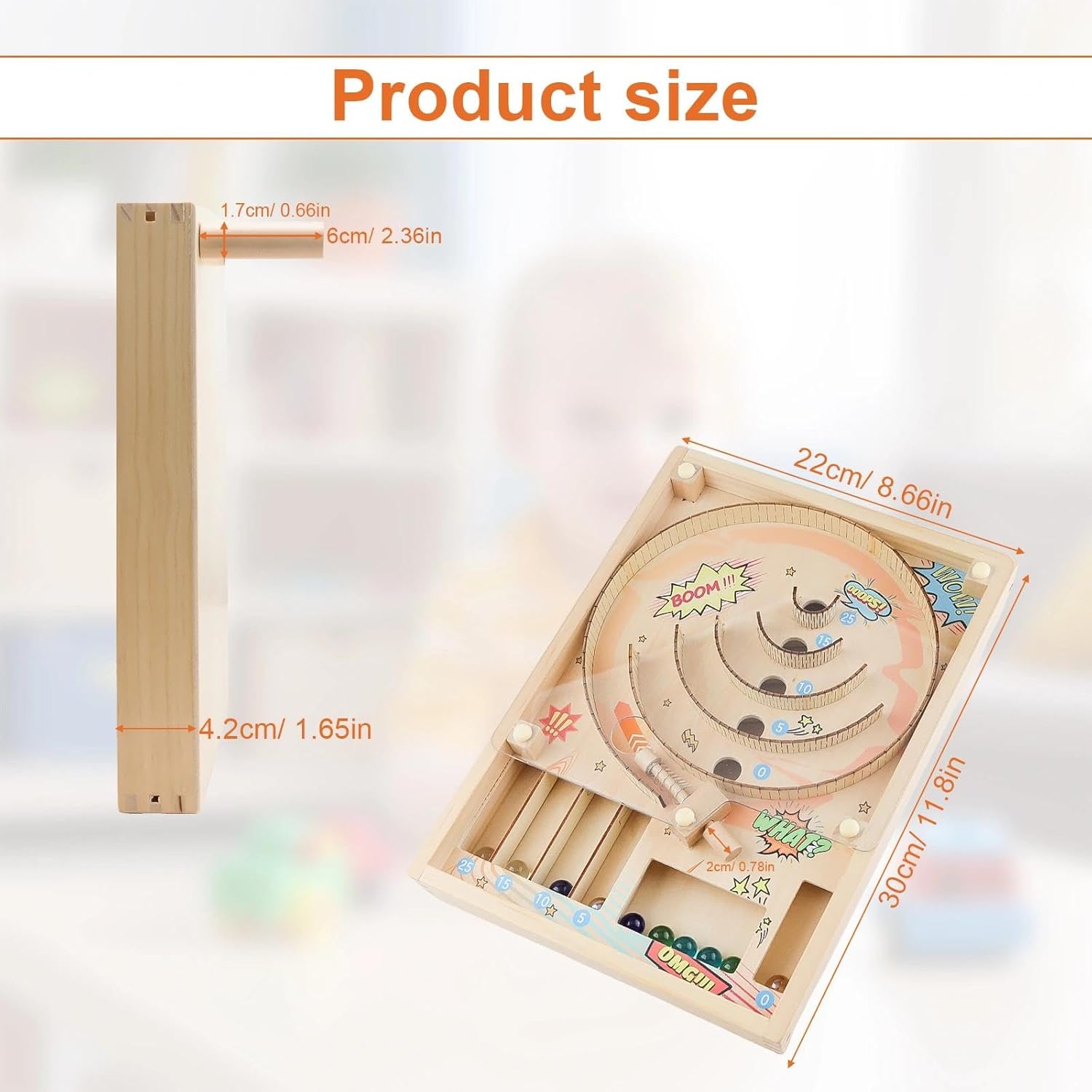 Alta qualità: realizzato in legno di alta qualità, il gioco da tavolo è durevole e resistente alla deformazione e ai danni, la piastra acrilica trasparente consente una visione chiara della traiettoria della palla, garantendone la durata Giochi di sfida per famiglie: posiziona semplicemente la palla nella posizione iniziale, premi il meccanismo a molla e controlla la forza per farla rotolare nell'area di punteggio, facile da impugnare, ti divertirai immediatamente Design pratico: il gioco di abilità ha una pista curva con cinque aree di punteggio (0/5/10/15/25), guadagni punti quando la palla atterra nella buca corrispondente, una volta che tutte e dieci le palline sono atterrate, puoi facilmente calcolare il tuo punteggio totale Facile da trasportare: Misura 30 x 22 x 10,7 cm, il gioco del punteggio da tavolo è facilmente trasportabile e può essere posizionato in una camera da letto, in una sala giochi o in ufficio, non è solo uno strumento divertente, ma anche un eccentrico pezzo da esposizione, che aggiunge un tocco di divertimento a qualsiasi stanza 1 pezzo Accessori completi: Il set include un gioco di divertimento in legno, 10 palline di vetro e due piedini di montaggio, questo gran numero di palline aiuta soddisfare un'ampia varietà di esigenze di gioco, i piedini di montaggio creano una forma inclinata, garantendo un rotolamento fluido e migliorando l'esperienza di gioco