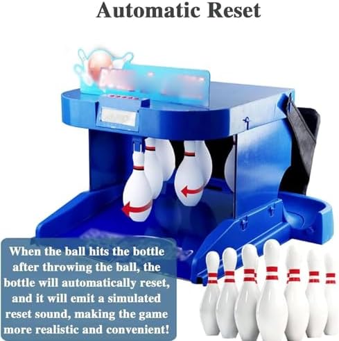 Set completo da bowling per bambini: include 6 spille in plastica resistente e 2 palline da bowling, tutte realizzate in plastica atossica di alta qualità che garantiscono sicurezza e divertimento per i bambini. Funzione di ritorno automatico della palla: migliora il gameplay con una funzione di reset automatico per perni ed effetti sonori realistici, rendendo ogni lancio emozionante e conveniente. Sistema di punteggio elettronico a LED: traccia automaticamente i punteggi con un display a LED, supportando entrambe le modalità single e multiplayer per un divertimento competitivo. Compatto e facile da riporre: progettato per uso interno, questo gioco di bowling è veloce da installare e può essere facilmente ripiegato, risparmiando spazio senza sacrificare la giocabilità. Perfetto per il legame familiare: offre una miscela di intrattenimento, abilità e competizione, che funge da modo eccellente per le famiglie di connettersi e godersi del tempo di qualità insieme.