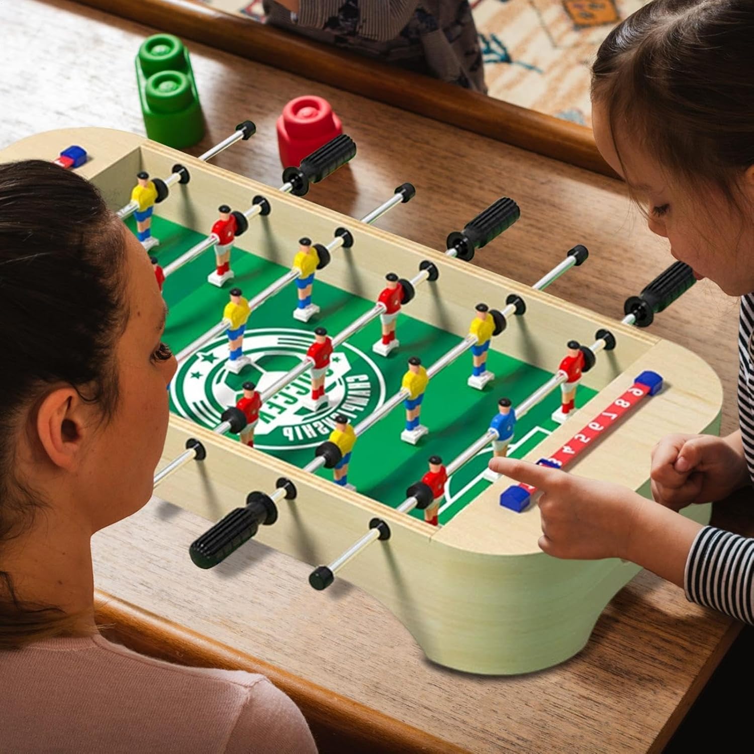 Portabilità al suo meglio: realizzato per comodità, questo leggero biliardino può essere facilmente smontato, reimballato nella sua scatola e riposto senza lasciare graffi o occupare molto spazio Aggiornamento senza interruzioni: configura questo biliardino per bambini in pochi minuti con istruzioni dettagliate e smontalo rapidamente per una facile sistemazione temporanea e una comoda pulizia. Perfetto per riunioni, feste e altro ancora, questo tavolo offre praticità e spazio di archiviazione facili Scelta ideale: vivi straordinario momento di gioco con questo biliardino per bambini. Il suo aspetto raffinato e gli interessanti contenuti di gioco lo rendono un regalo ideale per i bambini che sicuramente lo adoreranno. Ideale per occasioni speciali e regali con la sua confezione Condividi il con la famiglia: riunisci la tua famiglia con il nostro biliardino per bambini, promuovendo una sana interazione con giochi di calcio stimolanti e interessanti. Il nostro prodotto allevia lo stress e riduce la dipendenza dei bambini dall'elettronica, favorendo un momento di divertimento in famiglia che garantisce un gioco casual adatto a tutti Non facile da danneggiare: realizzato con una tavola di legno di alta qualità, garantisce una struttura robusta per un uso a lungo termine senza danni, rendendolo adatto per riunioni di famiglia e intrattenimento quotidiano