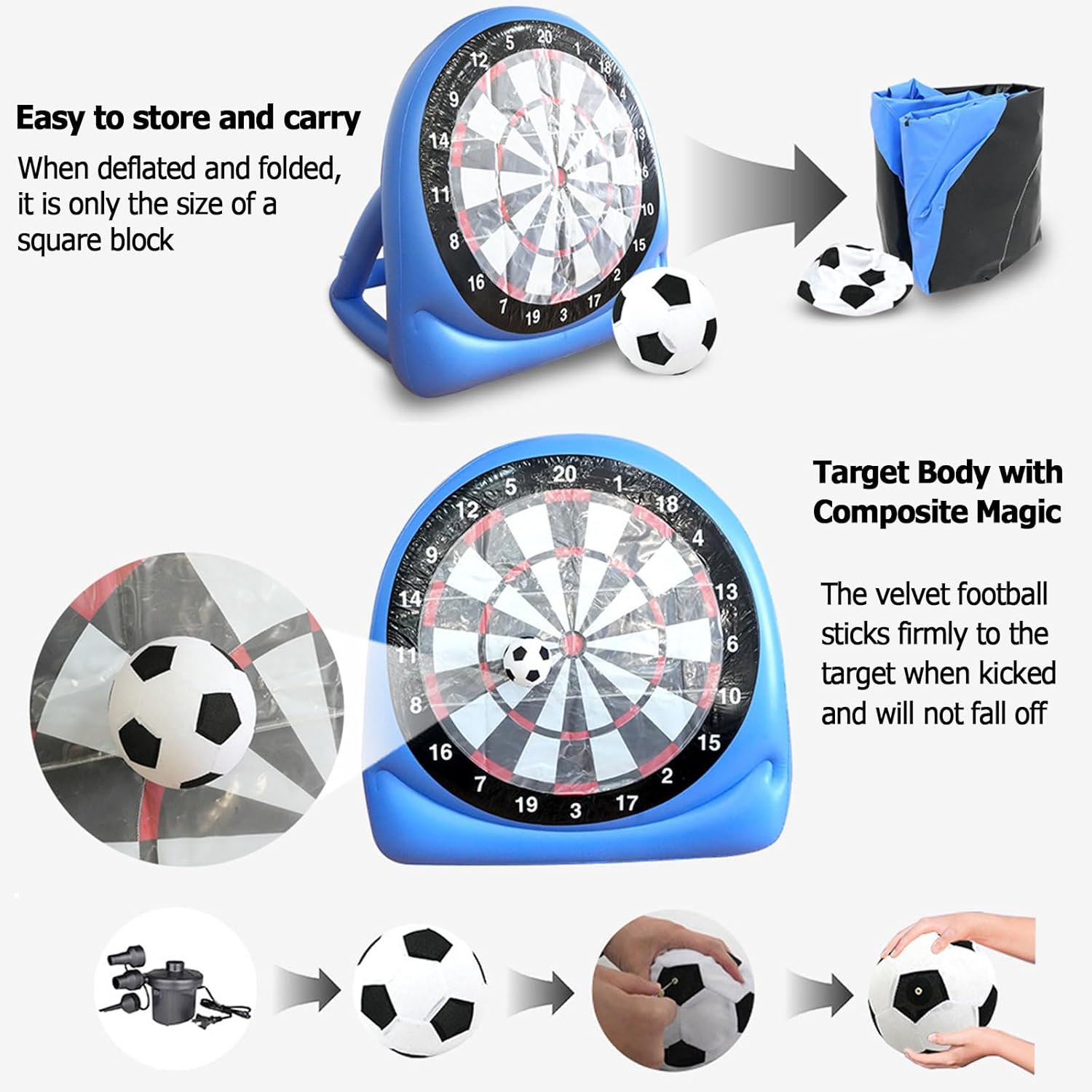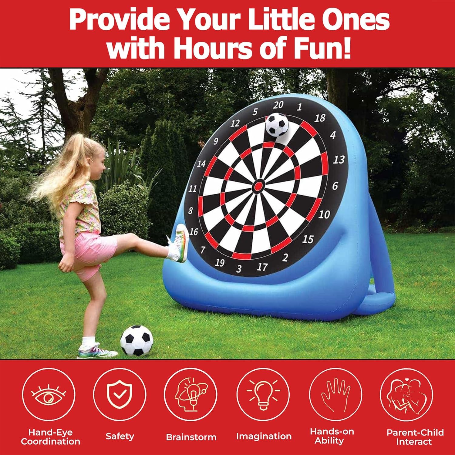 Caratteristiche multiuso: Gioco di bersaglio da calcio gonfiabile gigante da 5 piedi Più di un semplice gioco, il divertente gioco di sport all'aperto e al coperto con palloni da calcio è perfetto per il calcio, il calcio, il tiro con l'arco e la pratica di tiro. Bersaglio per freccette da calcio gonfiabile all'aperto Ottimo per sviluppare mira e precisione mentre ti godi il divertimento all'aria aperta con amici e familiari. Durevole e duraturo: gioco di calcio per divertimento all'aria aperta Realizzato con materiali di alta qualità e resistenti alle forature, questo ausilio per l'allenamento di calcio è progettato per un gioco vigoroso e un uso a lungo termine, garantendo innumerevoli ore di divertimento all'aperto e al chiuso. Bersaglio da calcio interattivo: bersaglio da calcio gonfiabile gigante da 5 piedi Migliora le abilità calcistiche di tuo figlio con questo gigantesco bersaglio gonfiabile, perfetto sia per il gioco all'aperto che al chiuso. Ideale per una pratica di calcio divertente e coinvolgente. Leggero e trasportabile: progettato per comodità, questo bersaglio gonfiabile è leggero e facile da trasportare. Portalo al parco, in giardino, in spiaggia o a casa di un amico. Veloce da gonfiare e sgonfiare, è ideale per il gioco in movimento e per essere riposto in modo compatto quando non viene utilizzato. Un gioco divertente per tutte le età: questo gioco da tavolo Kicking Dart offre divertimento per tutta la famiglia. Che si tratti di segnare punti o di praticare la mira, i bambini migliorano la coordinazione occhio-mano rimanendo attivi. Bersaglio gonfiabile per esercitazioni di tiro Ideale per barbecue in famiglia, eventi scolastici e giornate sportive per bambini.