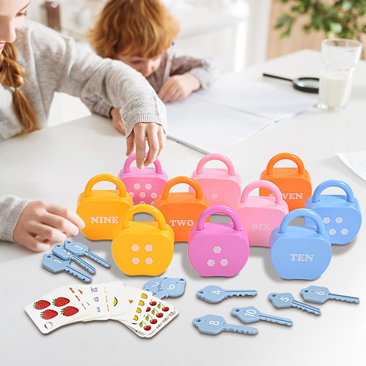 Materiale resistente: realizzato in materiale ABS esperto, un esterno liscio assicura che i bambini trascorrano al meglio la giocosità, con colori e motivi che affascinano le teste giovani Rafforzare l'apprendimento del numero Migliora la pazienza: mantieni il tuo bambino intrattenuto per ore con questo divertente set di bambini quando impari le serrature con le chiavi. Giocare con amici e familiari migliora le abilità cognitive e sociali e sviluppa capacità di pensiero critico Promuovere la resilienza e la resistenza: i nostri bambini imparano le serrature con set di chiavi, è un ottimo giocattolo per promuovere la sensazione di sfida dei bambini e migliorare le loro capacità motorie. I numeri e i punti corrispondenti in ogni serratura e chiave Tutelati: dai ai tuoi figli una grande sorpresa quando i nostri bambini imparano le serrature con le chiavi. È un ottimo modo per esprimere cura e amore e renderlo un'idea speciale per compleanni, feste e altre celebrazioni