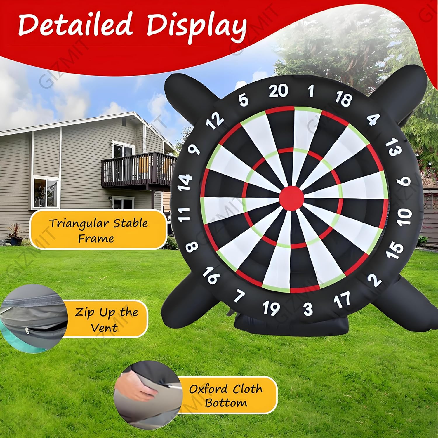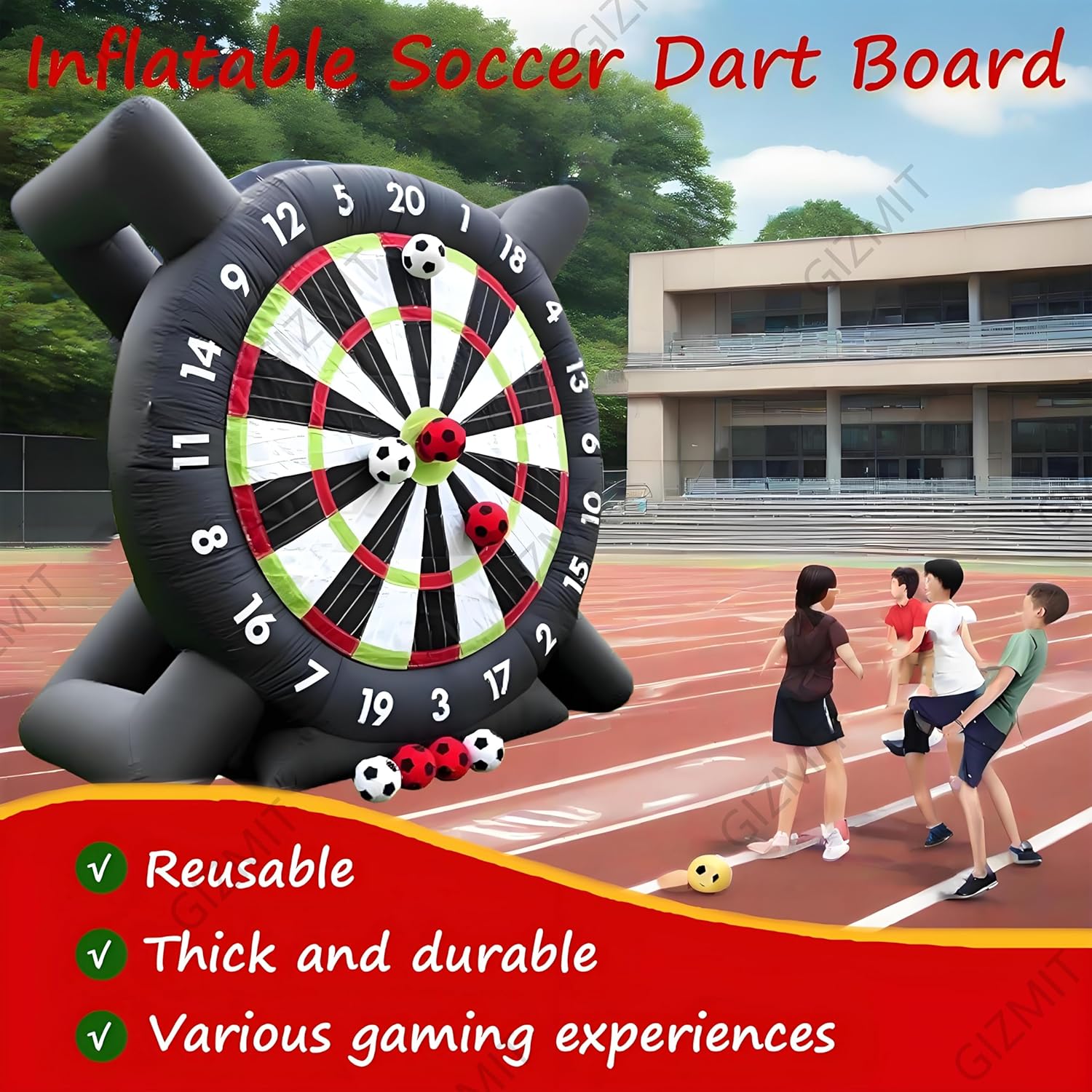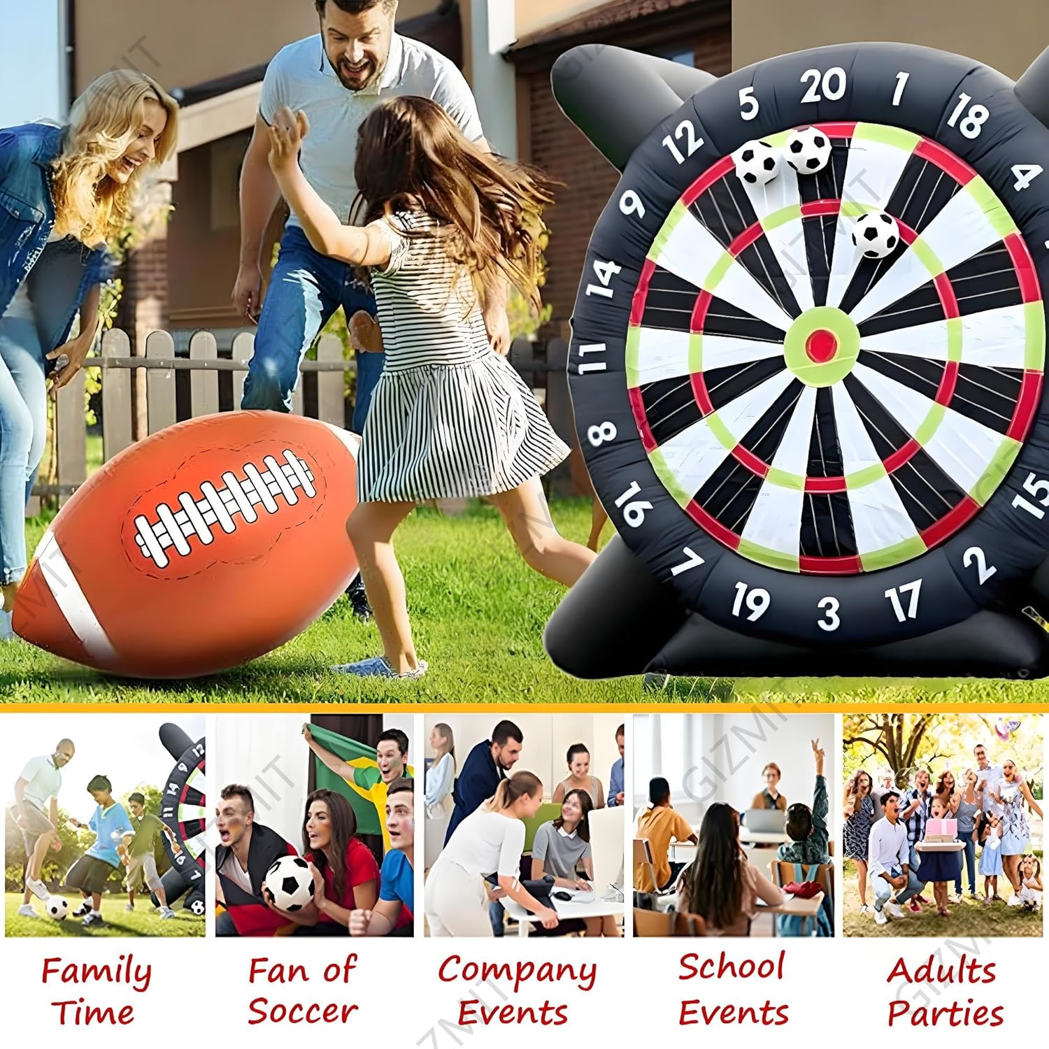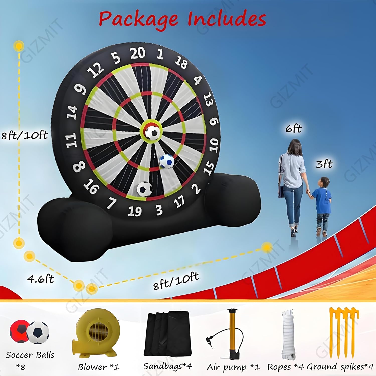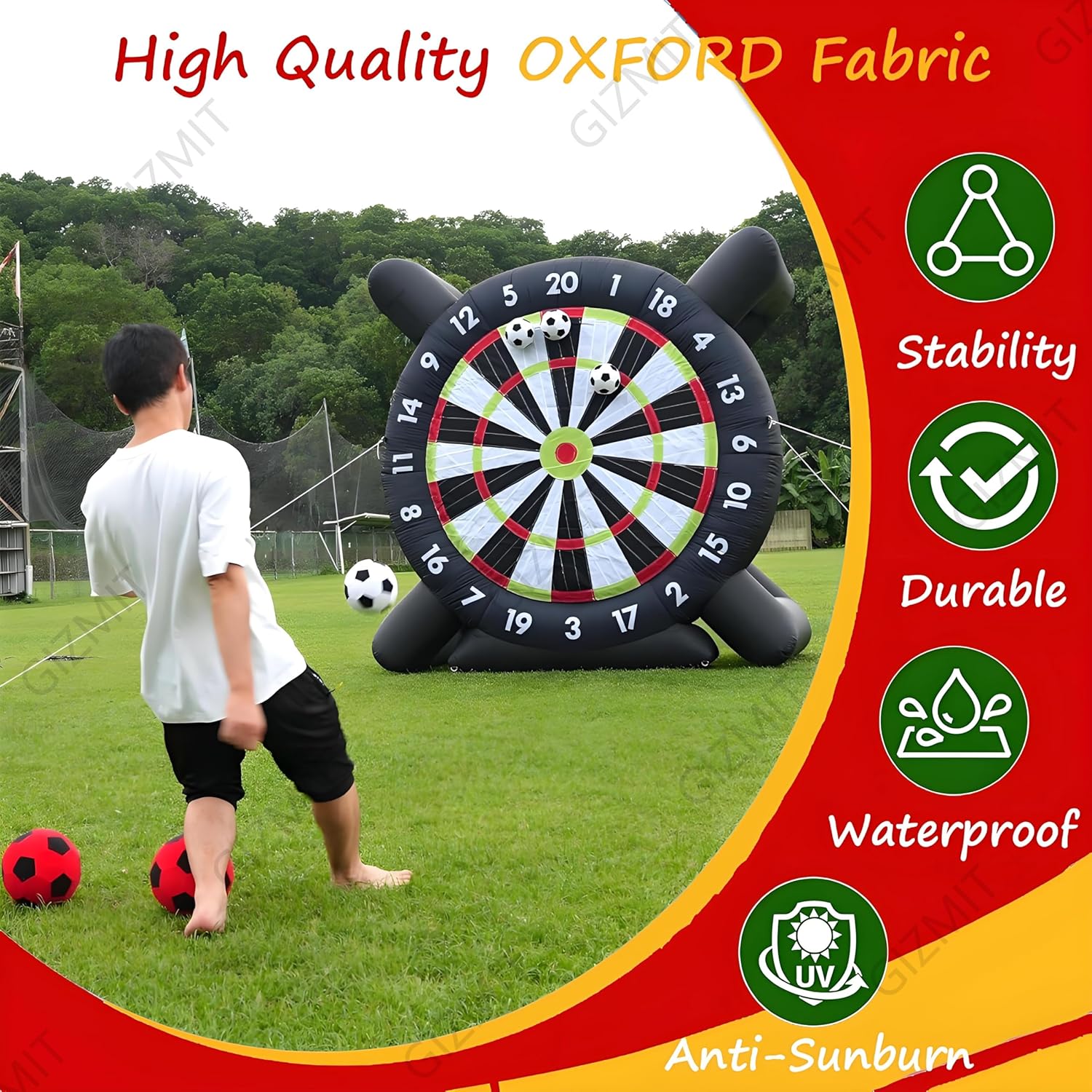 ▲【GONFIAGGIO RAPIDO】: Questo bersaglio gonfiabile per freccette da calcio non richiede lunghi tempi di attesa per il gonfiaggio. Guarda il tuo viso illuminarsi mentre questo gigantesco gioco, alto più di 2,4 metri, si gonfia. Nonostante le sue dimensioni enormi, si gonfia in meno di 5 minuti! (Nota: è necessario continuare a gonfiare durante l'uso) ▲【RICCHI REGALI】: Include 8 palloni da calcio in feltro (colori casuali) e una pompa ad aria. Questo bersaglio gigante da calcio è l'ultimo arrivato tra gli sport, che combina calcio e freccette. La sua forte aderenza e la presa extra rendono facile anche per i giocatori più piccoli staccare il bersaglio. ▲【OLTRE 15 ESPERIENZE DI GIOCO】: Hai finalmente trovato un divertente gioco per attività all'aperto e una scelta perfetta come regalo. Il divertimento non finisce mai con i nostri giochi originali ESCLUSIVI. Il nostro bersaglio gonfiabile per freccette è adatto per Kick Ball, Long Ball, Shoot, D-A-R-T-S, Home Run Derby, Golf, solo per citarne alcuni. ▲【BASE ULTRA-STABILE】: Il gioco Air Ball è realizzato in tessuto Oxford, che può prevenire l'elettricità statica ed è più resistente all'usura. La base del bersaglio gonfiabile per freccette e calcio è stata notevolmente migliorata, quindi non verrà danneggiata nemmeno dai venti forti. Rendi speciale la tua festa con il nostro gioco di calcio gonfiabile, accendi una competizione amichevole, crea ricordi indimenticabili, divertiamoci! ▲【AMPIE APPLICAZIONI】: I bersagli per freccette da esterno sono adatti per gli appassionati di calcio e calcio e per le aziende di noleggio, scuole, giornate in spiaggia, campi estivi, eventi aziendali, gruppi comunitari, feste in giardino e amici e familiari che amano uno stile di vita attivo e promuovono il lavoro di squadra.