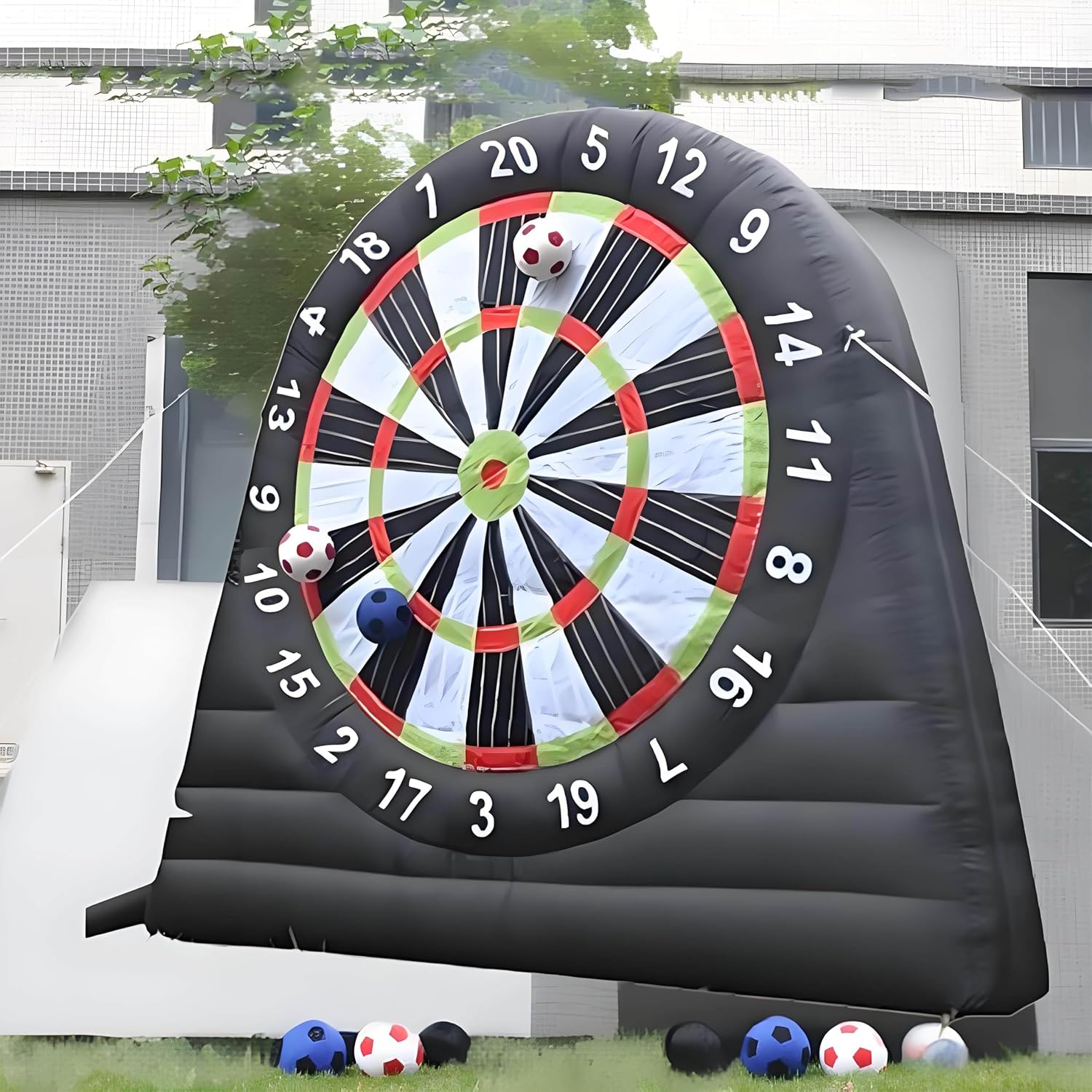 Bersaglio da calcio gonfiabile MATERIALE DI ALTA QUALITÀ: Realizzato in resistente tessuto Oxford 210D, il nostro bersaglio gonfiabile per freccette presenta una struttura robusta e un'avanzata tecnologia a doppia cucitura. È progettato per resistere al caldo e al freddo, agli strappi e all'elettricità statica, offrendo al contempo un'eccellente ritenzione dell'aria, garantendo un'esperienza di gioco di prima qualità. Bersaglio gonfiabile per freccette da calcio: una volta completamente gonfiato, il nostro bersaglio gonfiabile per freccette da calcio è alto 3 o 4 metri. Questo gioco gigante unisce l'emozione del calcio e delle freccette, dove i giocatori calciano un pallone da calcio verso il bersaglio gonfiabile, guadagnando punti in base al punto in cui atterra la palla. Freccette da calcio gonfiabili MIRA PRECISA E COLPI ADESIVI: Grazie alle superfici ultra-adesive, il nostro bersaglio per freccette garantisce che ogni freccetta aderisca saldamente all'impatto. Questo design non solo garantisce un'aderenza eccellente, ma massimizza anche il divertimento e l'entusiasmo per tutti i giocatori, rendendolo perfetto sia per adolescenti che per adulti. Set completo per freccette da calcio gonfiabile: il pacchetto include tutto il necessario per divertirti con questo gigantesco gioco di freccette da calcio gonfiabile, tra cui il bersaglio gonfiabile, un pallone da calcio, un soffiatore, una pompa dell'aria, otto picchetti da terra, quattro corde e quattro sacchi di sabbia, rendendolo un'attività all'aperto ideale o un regalo unico. Freccette da calcio gonfiabili PROCESSO DI GONFIAGGIO RAPIDO: goditi un montaggio rapido poiché questo gioco gigante si gonfia in meno di 5 minuti, consentendo azione e divertimento immediati. Si prega di notare che è necessario un gonfiaggio continuo durante l'uso.