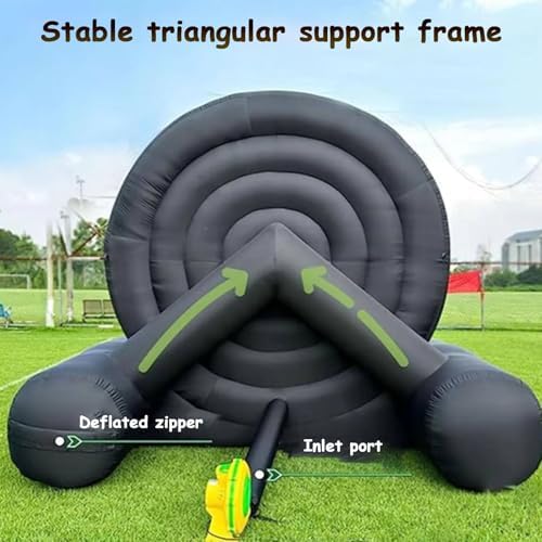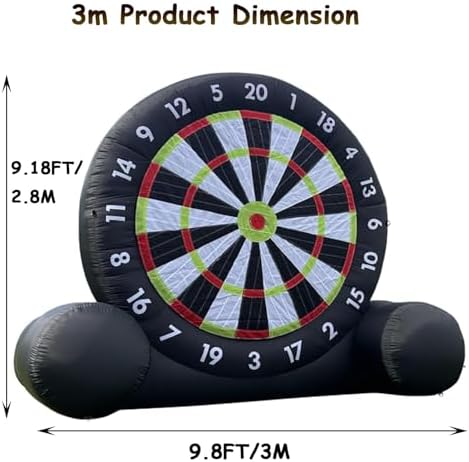 Gioco di freccette più resistente e stabile: realizzato in tessuto Oxford 210D di alta qualità, il bersaglio gonfiabile per freccette è resistente all'usura e all'elettricità statica. Grazie alla tecnologia a doppia cucitura su tutti i giunti, offre una maggiore tenuta all'aria e una maggiore durata, garantendo la resistenza alla pressione e una durata di anni. Bersaglio per freccette extra appiccicoso: progettato con una superficie super appiccicosa, questo bersaglio per freccette garantisce che le palline da calcio aderiscano saldamente proprio come le freccette tradizionali, aumentando il divertimento e la sfida del gioco per i giocatori e offrendo un maggiore senso di realizzazione. Gioco di freccette versatile e divertente per ogni occasione: arricchisci le tue attività all'aperto con i nostri giochi gonfiabili da calcio, dove il calcio incontra le freccette per un'esperienza esaltante. Perfetti per le gare di squadra in giardino, in palestra o a scuola, ideali per famiglie e amici! Il pacchetto gioco freccette include: bersaglio per freccette da 3 x 3,7 m (larghezza x altezza), insieme all'attrezzatura essenziale: 1 soffiatore da 350 W, 8 palloni da calcio, 1 pompa manuale, 1 panno per riparazioni, 4 corde e 4 chiodi da terra. Scegli questo innovativo bersaglio per freccette per un'esperienza indimenticabile che garantisce divertimento. Gioco di freccette: installazione rapida e facile da riporre: il montaggio del bersaglio gonfiabile per freccette richiede solo 2 minuti o meno, basta chiuderlo con la cerniera prima di gonfiarlo. Si gonfia e sgonfia facilmente, consentendo uno stoccaggio e un trasporto compatti, ma fare attenzione agli oggetti appuntiti e sollevare il bersaglio prima di spostarlo per evitare danni.