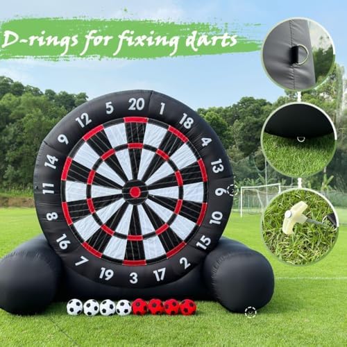 Bersaglio gonfiabile da calcio. Realizzato in resistente tessuto Oxford 210D, il bersaglio misura 3 x 3 metri e vanta una maggiore resistenza all'usura e proprietà antistatiche. Le doppie cuciture garantiscono una maggiore tenuta all'aria e una maggiore durata, mentre il design triangolare del telaio offre una maggiore stabilità rispetto ai bersagli standard. Il bersaglio gonfiabile da calcio è dotato di un pallone da calcio in feltro e combina in modo unico calcio e freccette per un nuovo ed entusiasmante sport. Questo bersaglio gigante da 3 metri è perfetto sia per bambini che per adulti e il suo design gonfiabile garantisce un gioco sicuro e divertente. Bersaglio da calcio gonfiabile: montare il bersaglio da calcio gonfiabile è un gioco da ragazzi, richiede solo 2 minuti o meno. Assicurati di chiudere la cerniera prima di gonfiarlo. Il bersaglio è facile da gonfiare e sgonfiare e può essere ripiegato in modo compatto per un rapido stoccaggio e trasporto. Fai attenzione agli oggetti appuntiti per evitare di danneggiare il materiale. Freccette da calcio gonfiabili Ideale per affinare le proprie abilità o per partite competitive, questa attività è perfetta per riunioni di famiglia, eventi di team building, palestre, scuole, festival comunitari e gite aziendali, garantendo ore di divertimento. Freccette da calcio gonfiabili Goditi una serie completa di accessori, tra cui un soffiatore elettrico, una pompa da calcio, un ago per palline, chiodi da terra, corde, un telo di riparazione, una borsa per il trasporto e sacchi di sabbia per migliorare la tua esperienza.