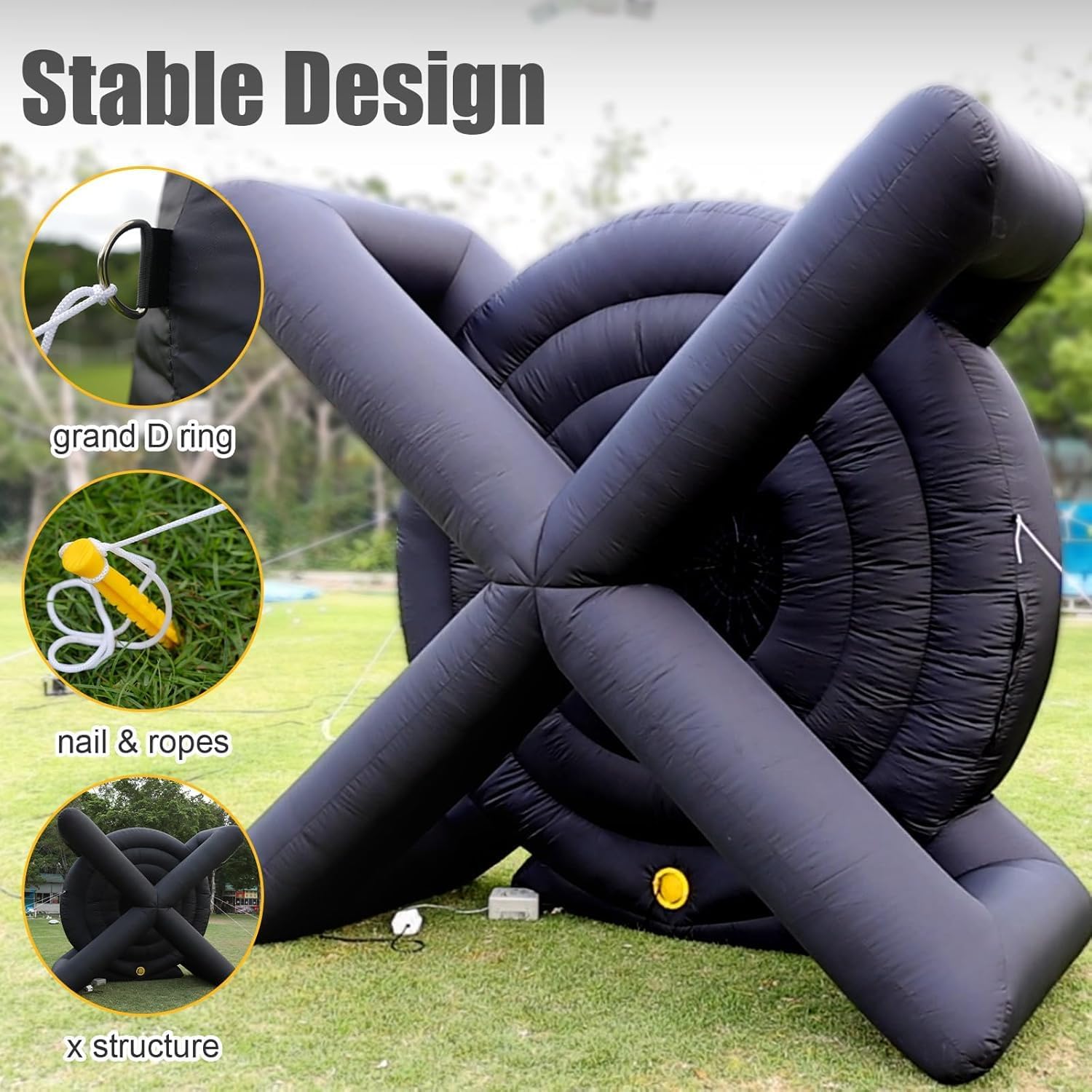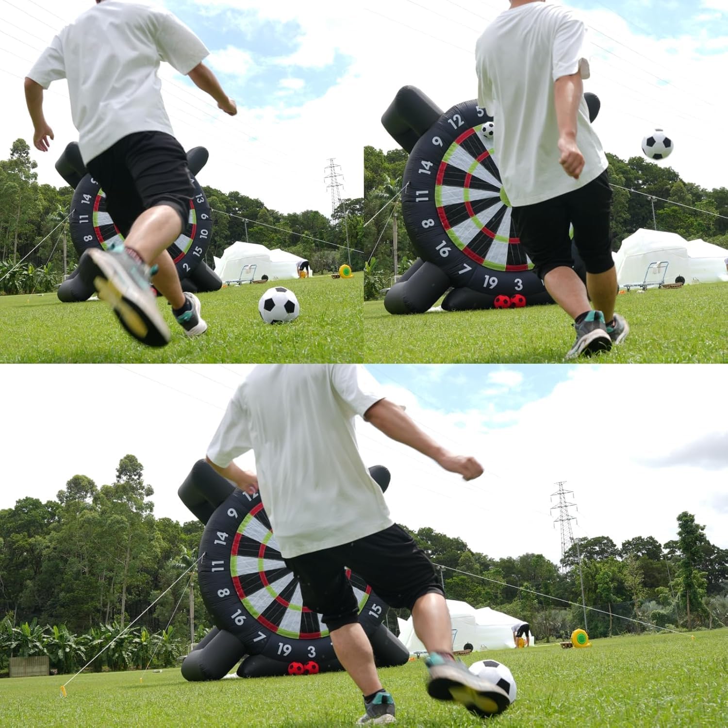 Freccette da calcio gonfiabili: montaggio semplice: gonfia le freccette giganti da calcio in soli 2 minuti e goditi un'esperienza di gioco costante per tutta la durata dell'evento. Chiudi l'apertura con la cerniera prima di gonfiarle e aprila dopo la partita per sgonfiarle e riporle rapidamente. Bersaglio da calcio gonfiabile con freccette. Materiale di alta qualità: il nostro bersaglio da calcio è realizzato in tessuto Oxford di alta qualità, costruito per durare nel tempo pur rimanendo leggero e facile da trasportare. Con dimensioni di 300 cm x 380 cm (L x A), è progettato per essere riposto e trasportato comodamente. Gioco di freccette gonfiabile da calcio: prova l'emozione di Kick Darts, unendo l'emozione del calcio e delle freccette in un'unica attività divertente. Questo bersaglio gonfiabile di grandi dimensioni è adatto sia a bambini che ad adulti, ed è dotato di una superficie autoadesiva per maggiore sicurezza e divertimento. Freccette da calcio gonfiabili. Versatilità d'uso: ideali per gli amanti del calcio e perfetti per attività di noleggio, scuole, gite in spiaggia, campi estivi, eventi aziendali e altro ancora. Promuove uno stile di vita attivo e il lavoro di squadra tra amici e familiari. Calcio gonfiabile con freccette. Assistenza clienti dedicata: diamo priorità a un servizio eccellente per tutti i nostri clienti. Per qualsiasi domanda o dubbio, non esitate a contattarci in qualsiasi momento: garantiremo una rapida risoluzione entro 24 ore.