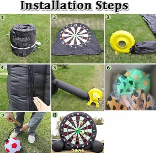 Gioco di calcio gonfiabile: montaggio e stoccaggio rapidi: progettato per la praticità, il bersaglio gonfiabile per freccette da calcio può essere montato in meno di 2 minuti. Dimensioni: 3,6x2,1x3 m (12x6,9x10 piedi) per una facile trasportabilità. Dimensioni del gioco di calcio gonfiabile: il nostro bersaglio gonfiabile per freccette da calcio per esterni misura 3,6x3x2 m (11,8x10x6,5 piedi), realizzato in resistente tessuto Oxford che previene l'elettricità statica e aumenta la resistenza all'usura. Caratteristiche entusiasmanti del gioco di calcio gonfiabile: include un pallone da calcio in feltro. Combina l'emozione del calcio e delle freccette, rendendo questo bersaglio per freccette di grandi dimensioni perfetto per giocatori di tutte le età. Gioco di calcio gonfiabile Applicazioni versatili: ideale per gli appassionati di calcio, le aziende di noleggio, le scuole, le gite in spiaggia, i campi estivi, gli eventi aziendali, le riunioni della comunità, le feste in giardino e per promuovere uno stile di vita attivo e il lavoro di squadra. Gioco di calcio gonfiabile con maggiore aderenza: sperimenta un gioco senza frustrazioni con il nostro bersaglio extra adesivo che garantisce la massima aderenza delle freccette, ma consente anche una facile rimozione per tutti i giocatori, compresi i bambini più piccoli.