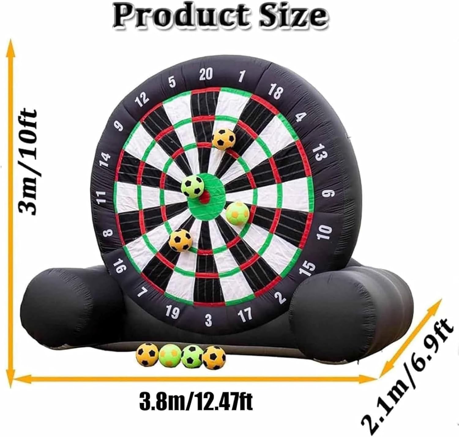 Gioco di freccette: installazione rapida e facile da riporre: bastano solo 2 minuti per gonfiare enormi freccette da calcio e mantenerle gonfie per tutta la durata dello spettacolo, una volta inserite, in modo da non dover perdere troppo tempo per gonfiarle. Ricordarsi di chiudere la cerniera prima del gonfiaggio. Al termine della partita, aprire la cerniera per far fuoriuscire l'aria e riporre rapidamente. Gioco di freccette Materiale di alta qualità: il nostro bersaglio per freccette è realizzato in tessuto Oxford. Dimensioni: 300 cm x 380 cm (L x A). Il tessuto Oxford è leggero e resistente; è facile da riporre o da trasportare. Caratteristiche del gioco delle freccette: è l'ultimo sport in cui calcio e freccette sono collegati. Il bersaglio da calcio di grandi dimensioni è adatto a bambini e adulti; è completamente gonfiabile con superficie autoadesiva; design gonfiabile per un divertimento morbido e sicuro. Applicazione del gioco delle freccette: ideale per gli appassionati di calcio e di calcio, ma anche per aziende di noleggio, scuole, giornate in spiaggia, campi estivi, eventi aziendali, gruppi, feste di gruppo e per amici e familiari che desiderano uno stile di vita attivo e promuovere il lavoro di squadra. Gioco di freccette Se hai domande durante l'acquisto o l'uso, contattaci in tempo, saremo felici di aiutarti. Contattaci in tempo per qualsiasi domanda, ti risponderemo entro 24 ore. La tua soddisfazione è il nostro ultimo desiderio, ti auguro un felice shopping!