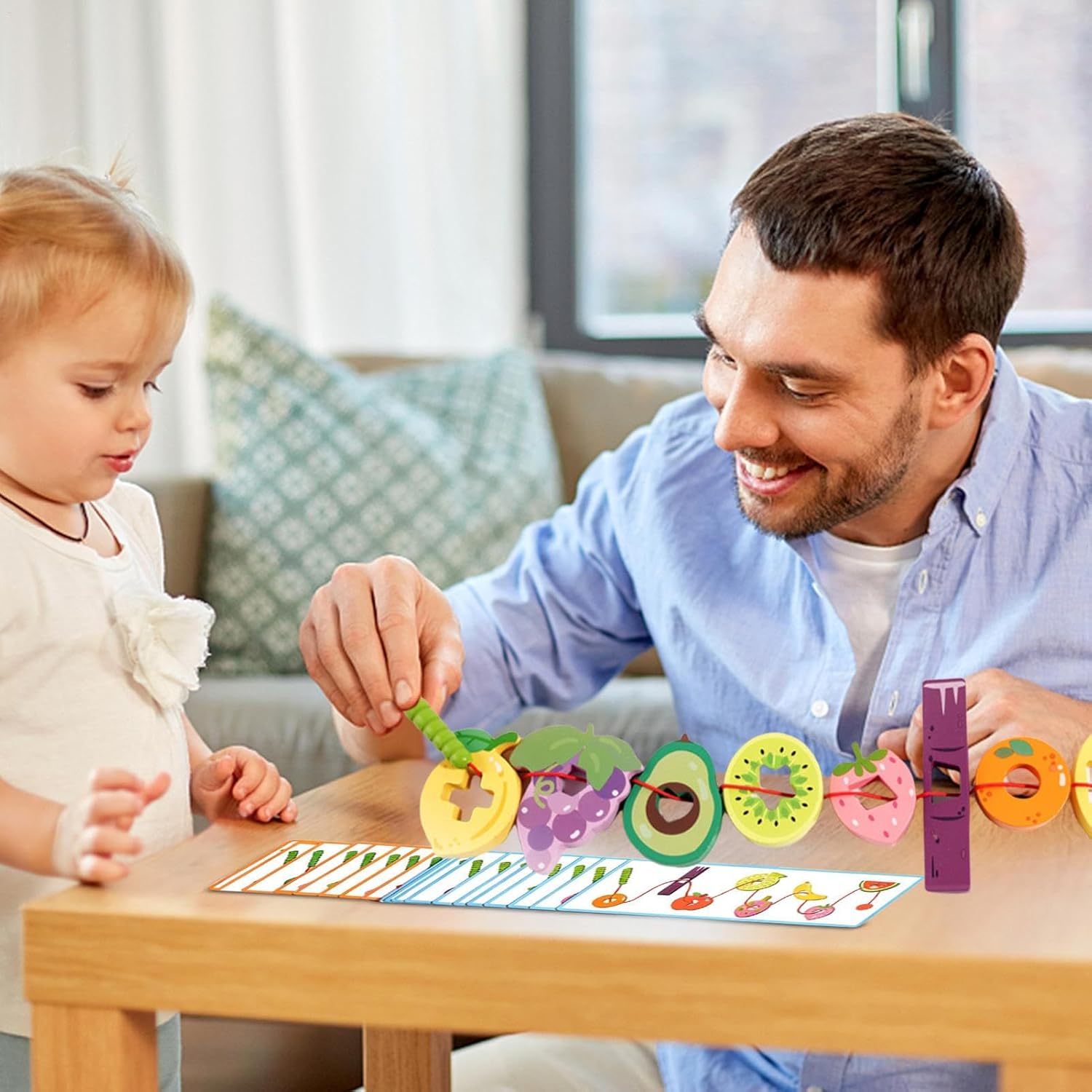 Design Sicuro e Resistente: Le perline per bambini in legno massello presentano superfici lisce e di schegge che assicurano sicurezza durante il gioco fiducioso. Il filo resistente aumenta la longevità del prodotto, rendendolo per giochi interattivi a casa o in ambienti prescolastici i bambini possono esplorare la loro immaginazione in totale sicurezza, supportando un uso prolungato e affidabile. Attività per il Familiare: Il gioco di infilare facilita un'interazione significativa tra genitori e figli unendo la creazione di storie sui bruchi all'apprendimento di colori e forme, integrando amore e divertimento in periodi di gioco guidati per esperienze di sviluppo arricchenti a casa. Questa attività promuove momenti di qualità che rafforzano i legami familiari, offrendo un modo semplice e naturale per imparare insieme in un contesto giocoso e creativo che appassiona sia i bambini c Design Sofisticato e Stimolante: I giocattoli di infilare per bambini con perle colorate e design di che ingoia la frutta catturano l'attenzione e stimolano il gioco immaginativo. Migliorano le capacità motorie fini durante le fasi di sviluppo, promuovendo la crescita cognitiva e la fantasia attraverso attività pratiche e divertenti che supportano lo sviluppo infantile in modo naturale e gioioso. Gioco Interattivo con i Colori: Le perline e il filo per bambini, arricchiti con colori audaci e saturi a forma di mele, banane e fragole, aiutano i bambini a identificare varie tonalità in modo intuitivo. Trasformano semplici attività di infilare in un'esperienza piacevole per sviluppare importanti abilità di apprendimento precoce, come il riconoscimento cromatico e la coordinazione, durante sessioni di gioco educativo a casa o in gruppo. Favorisce la Preparazione alla Scrittura: Con perline che richiedono di essere infilate su un filo, i bambini praticano movimenti di afferrare, pizzicare e ruotare, migliorando le abilità motorie fini e preparandoli per future attività di scrittura e disegno durante il gioco. Questo giocattolo è progettato per rafforzare le competenze necessarie per la scrittura in modo ludico e educativo, supportando la coordinazione occhio-mano e lo sviluppo motorio attraverso giochi creativi che incoraggiano