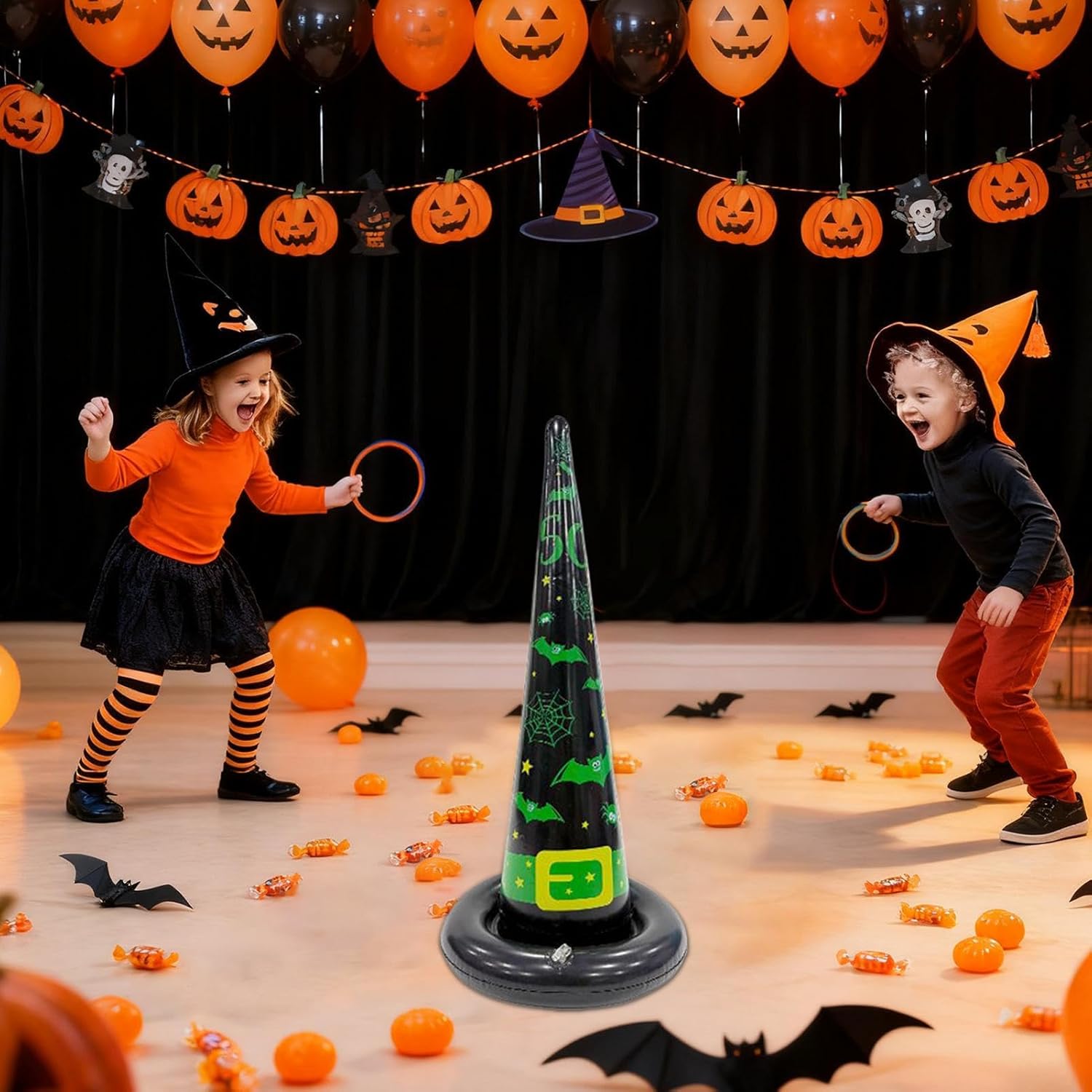 Gioco per l'Familiare: Con il gioco del lancio degli anelli di Halloween, i bambini sviluppano una migliore coordinazione occhio-mano partecipando a un'attività interattiva e festosa. I genitori hanno l'opportunità di rafforzare il con i propri figli durante un giocoso e spensierato momento di divertimento, adatto a tutti i membri della famiglia. Ideale per Halloween, questo gioco incoraggia la collaborazione e il quality in famiglia in modo semplice e coinvolgente. Aggiunta Divertente: Caratterizzato da stampe incantevoli di fantasmi e zucche, il gioco di lancio Halloween fornisce intrattenimento interattivo che aggiunge un'atmosfera vivace di Halloween. Ottimo per ravvivare feste e celebrazioni adatte alle famiglie, contribuisce a creare un'ambiente gioioso e spensierato, ideale per momenti di divertimento condiviso. Compatto e Salva-Spazio: Questo gioco del lancio del cappello da include un design di trasporto conveniente con gonfiaggio e sgonfiaggio veloci. La piegatura compatta permette di risparmiare spazio di archiviazione in modo efficiente, mentre la facilità di trasporto è ideale per party all'aperto o incontri familiari. Il prodotto è ottimizzato per essere leggero e maneggevole, offrendo un'intrattenimento pratico senza occupare area eccessiva, per uso domestico o esterno. Intrattenimento Interattivo per Feste: Questo gioco di lancio di Halloween è un accessorio divertente per eventi e feste, che migliora l'atmosfera con un'attività coinvolgente. Ideale come o idea regalo per party, crea momenti indimenticabili durante le celebrazioni di Halloween e altri ritrovi a tema. Design Sicuro per il Gioco: Il gioco del cerchio di Halloween utilizza materiale gonfiabile sicuro e PVC ecologico, creando una struttura morbida e leggera senza punti appuntiti, offrendo un'esperienza di gioco coinvolgente e piacevole per i bambini durante le festività.