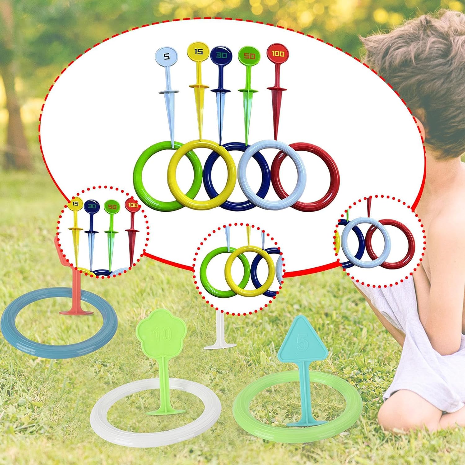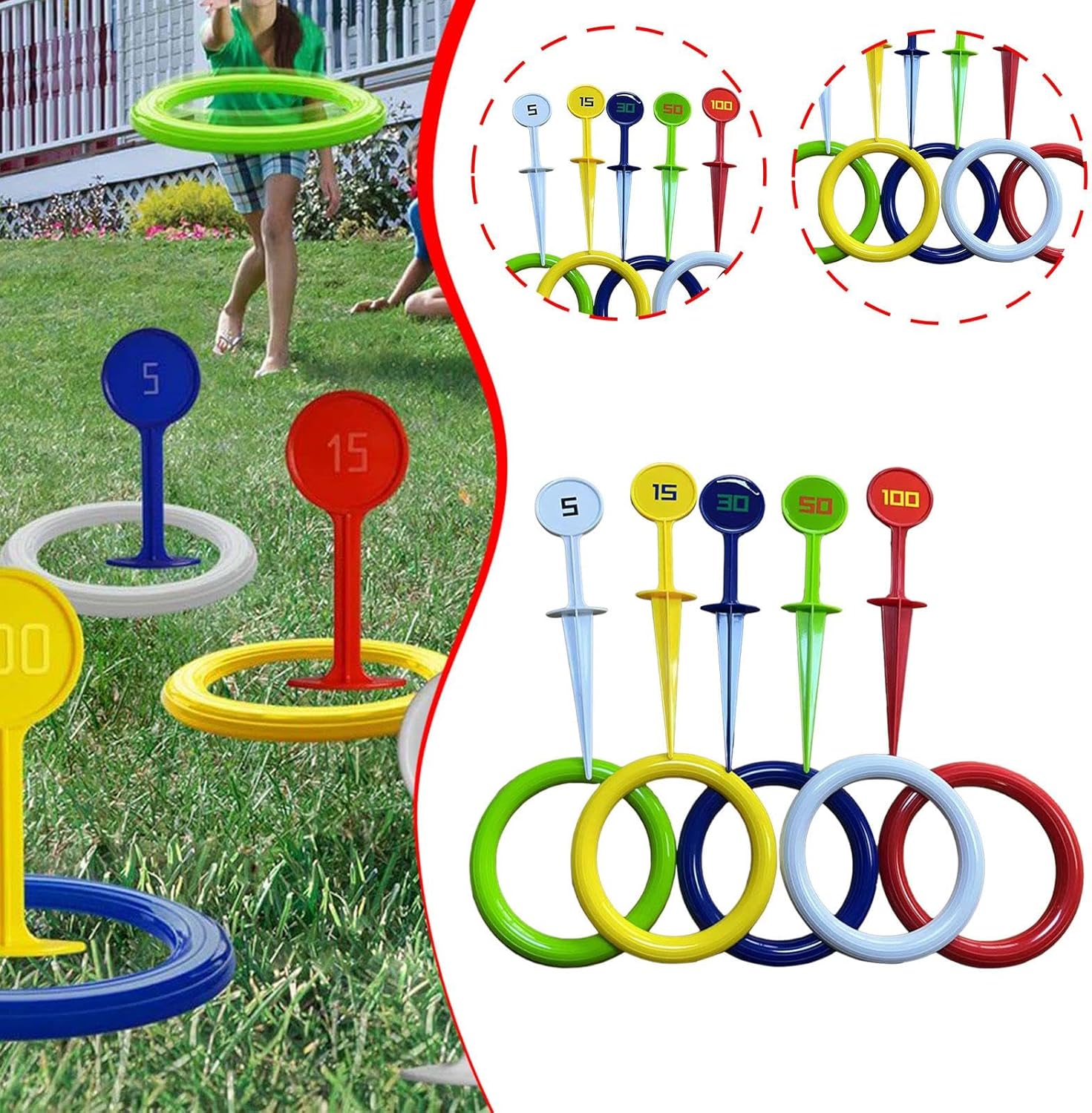 * 【Gioco di lancio degli anelli per bambini】: questo giocattolo di lancio degli anelli è ampiamente adatto a ragazzi e ragazze, famiglie, genitori e bambini che giocano in spiaggia, erba, feste, ecc. * 【Facile da usare】: leggero e facile da trasportare, questo set da gioco attivo e di lancio consente ai bambini di afferrare rapidamente il , godendosi ore di divertimento * 【La confezione include】: Ogni confezione include cinque anelli con diametro di 14 cm/5,51 pollici, cinque picchetti da terra, che lo rendono un gioco da esterno ideale per i bambini * 【Materiale Premium】: Realizzato in materiale PP di qualità, questo gioco di lancio degli anelli per bambini garantisce durata e affidabilità per i tuoi bambini nel tempo * 【Promuove lo sviluppo fisico】: questo coinvolgente giocattolo puzzle aiuta a migliorare la coordinazione occhio-mano dei bambini, il riconoscimento dei colori e le capacità generali di coordinazione fisica