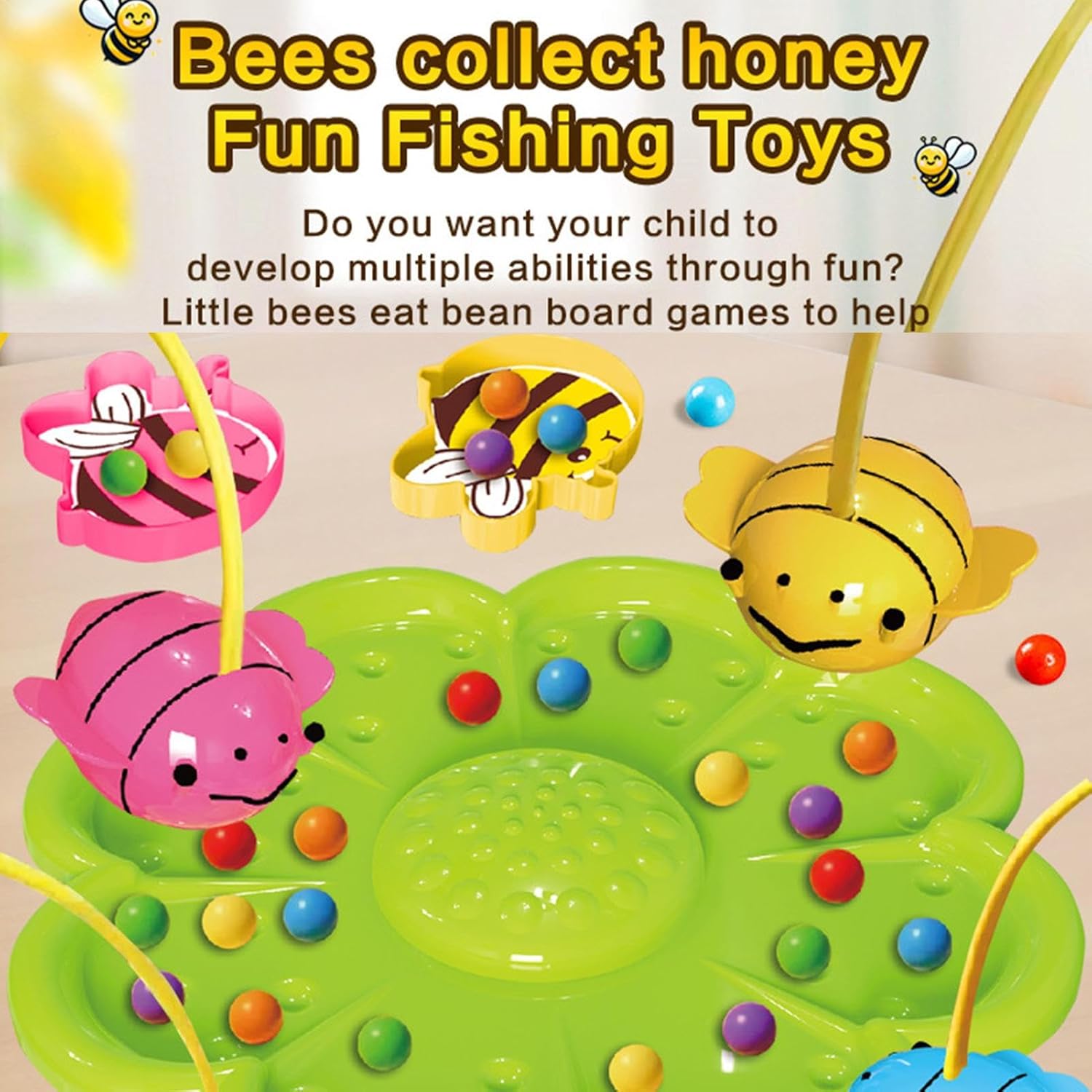 Colori accattivanti: combinazioni di colori contrastanti e dettagli affascinanti garantiscono un effetto accattivante immediato per i bambini. Il colorato set da pesca aumenta il valore del gioco con un aspetto vivace e crea ulteriore intrattenimento in ogni fase del gioco. Gioco di comunità: rafforza i legami familiari attraverso un principio di gioco competitivo e cooperativo con raccolta alternata di perline di polline in un'avventura di pesca dinamica multiplayer per divertimento e interazione insieme. Allenare il pensiero logico: il gioco dei pesci favorisce il pensiero logico, rafforza la coordinazione occhio-mano e insegna pianificazione strategica. I giocatori si concentrano sulle sfide educative per padroneggiare le abilità Sicurezza accurata: realizzato con materiali appositamente selezionati privi di sostanze nocive, questo gioco di pesca garantisce un gioco sicuro in ambienti interni. La lavorazione adatta ai bambini senza angoli appuntiti garantisce protezione in asilo, scuola o ambiente domestico Avventura di gioco creativa: il bastone magnetico stimola le esplorazioni e illustra giocosamente l'impollinazione delle piante - esperienza educativa in scenari di gioco divertenti