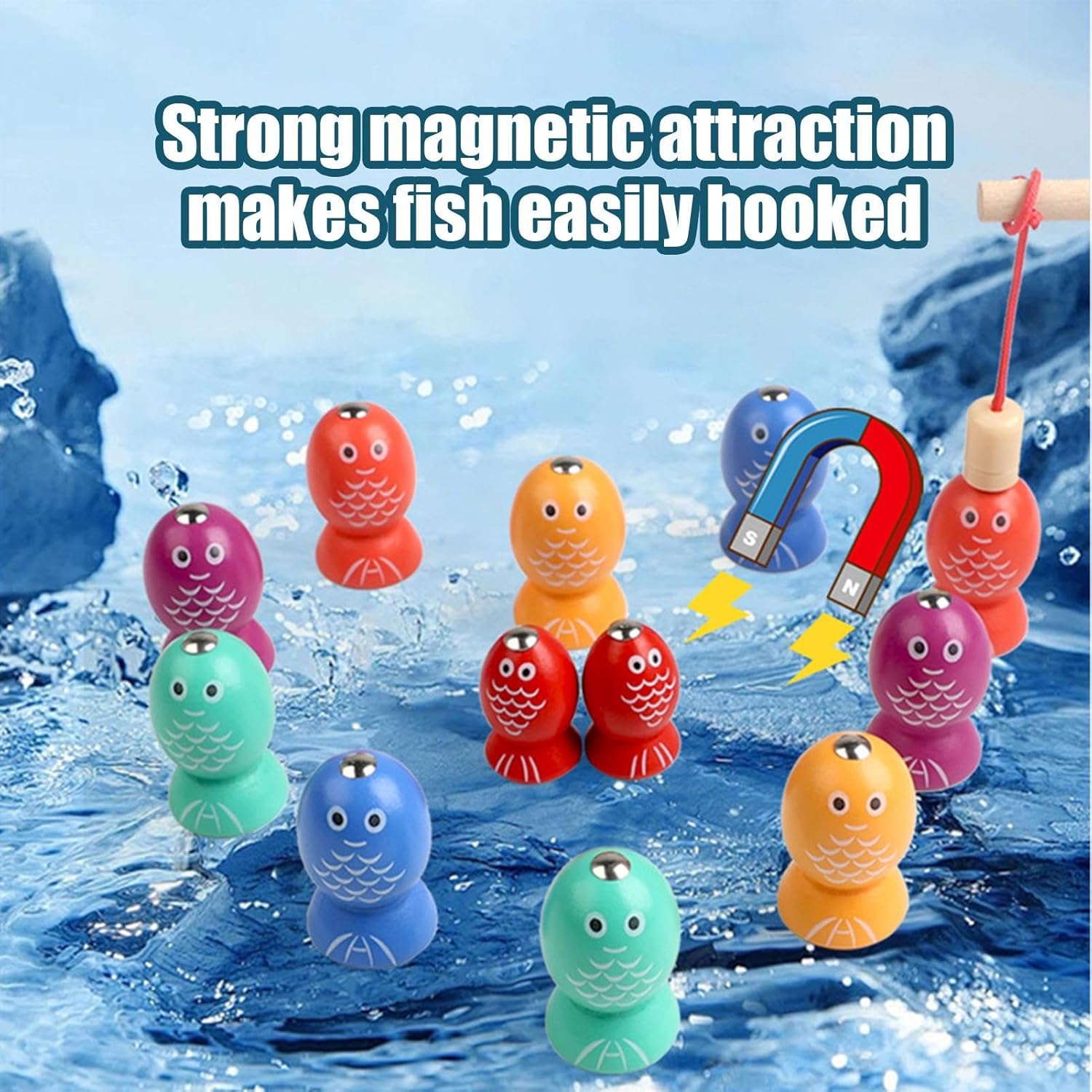 Partecipare al gioco sensoriale: progettato per funzionare come giocattoli sensoriali, questo gioco di pesca magnetico promuove l'esplorazione e l'apprendimento attivi, promuovendo la cognizione sensoriale e migliorando l'attenzione in modo interattivo Uso sicuro: dispone di vernice sicura e legno eccellente, fornendo tranquillità durante il tempo di gioco, sostenendo la responsabilità ambientale e una costruzione robusta Adatto per molte occasioni: il gioco di pesca magnetico è ampiamente utilizzato per ragazzi e ragazze dai 2 ai 6 anni, il che lo rende ideale per riunioni di famiglia e feste di compleanno promuovendo il divertimento e lo sviluppo delle abilità attraverso un gioco accattivante Divertenti attività interattive: questo gioco di pesca magnetica offre attività interattive e divertenti progettate per migliorare l'interazione sociale in modo educativo e divertente Edificio di destrezza: progredisce la coordinazione degli occhi, così come l'abilità motoria fine, utilizzando attività di pesca magnetica che incoraggiano il miglioramento delle abilità in un formato attraente per il tempo di gioco produttivo