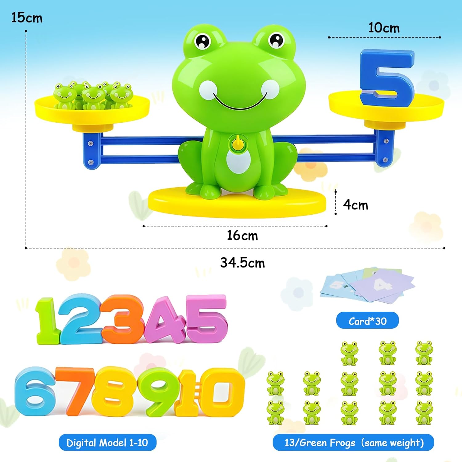Attività di apprendimento interattivo: i giocattoli matematici a forma di rana sono perfetti giochi educativi per giocare a giochi di matematica all'asilo per bambini dai 3 ai 5 anni in su. È lo strumento matematico ideale e giocattoli per l'apprendimento del bambino per genitori, famiglie e insegnanti, divertendosi mentre si impara a casa, a scuola, all'asilo e durante le sessioni di tutoraggio. 3 livelli di difficoltà: i giocattoli educativi per l'apprendimento prescolare con scala e peso a forma di rana possono aiutare a costruire l'interesse dei bambini per lo studio attraverso il gioco. I giochi numerici di tuo figlio possono essere più divertenti ed emozionanti con i nostri 3 livelli di difficoltà. Design luminoso e coinvolgente: la scala colorata di rana e le mini rane carine catturano l'attenzione dei bambini e rendono eccitante l'apprendimento della matematica. Strumento di apprendimento interattivo: aiuta i bambini piccoli a comprendere i numeri, l'aggiunta e i primi concetti di matematica attraverso il bilanciamento e la corrispondenza pratica. Gioco di Matematica Della Rana : Il giocattolo della bilancia della matematica contiene 19 rane, blocchi di numeri da 1 a 10, 30 carte a doppia faccia, 1 bilancia e 2 vaschette per pesare. Animali adorabili e carte colorate possono attirare la concentrazione dei bambini, i bambini possono usarli per fare divertenti attività matematiche.