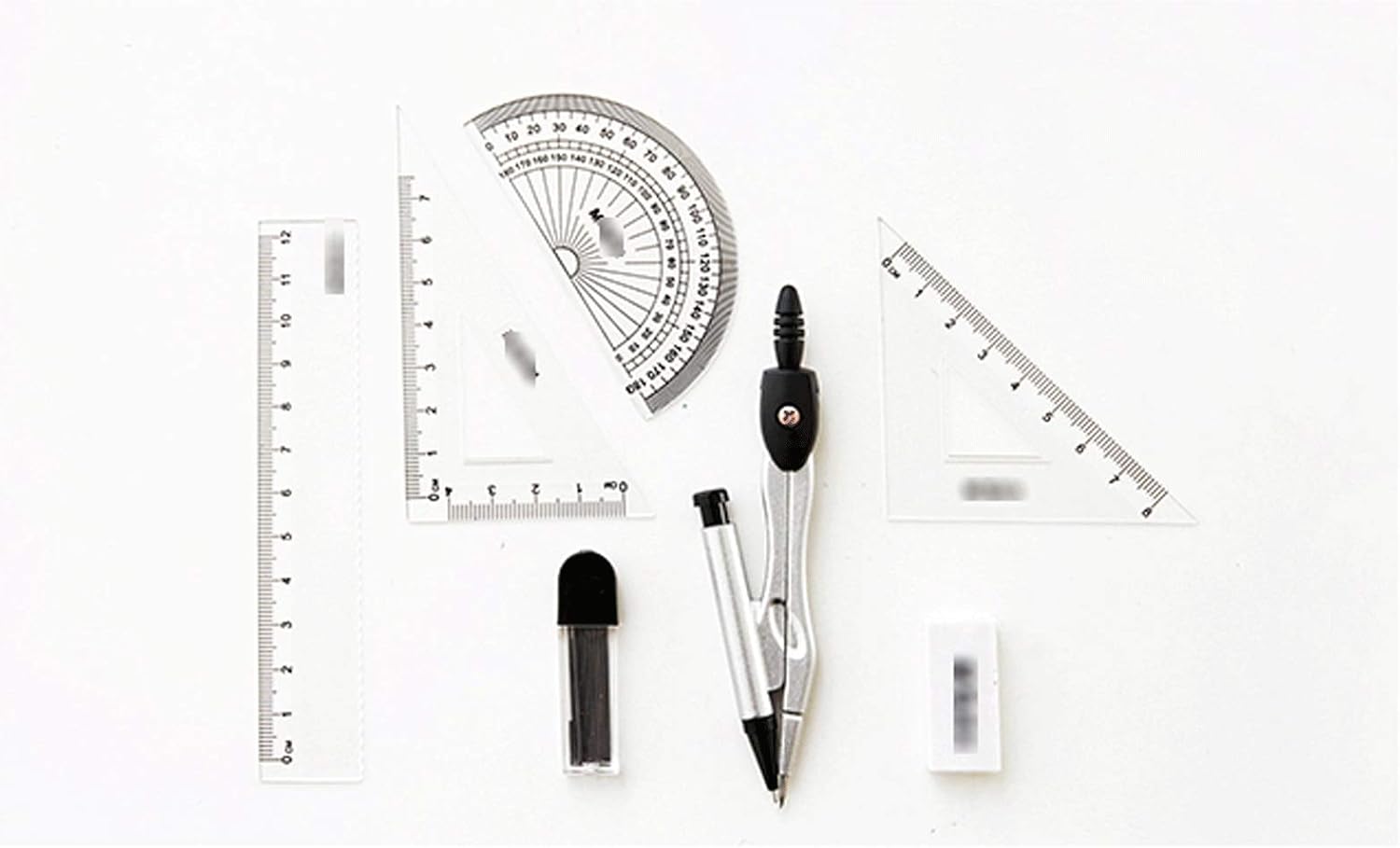Kit di geometria matematica Set di 7 fornitori per studenti, il set include righello, protactor, bussola, gomma, nucleo di piombo e righello triangolare. Tute geometriche in 7 pezzi per tutti i livelli: tute matematiche/tute geometriche progettate da esperti di matematica esperti, adatte a insegnanti e studenti di tutti i livelli. Una scelta pratica per insegnanti e studenti: è anche un regalo perfetto per i tuoi bambini e amici, facile da frequentare in classe e da riporre in classe. Matematica iniziale pronta per la scuola, pronta per gli esami e il corso universitario Matematica per la scuola e le misurazioni