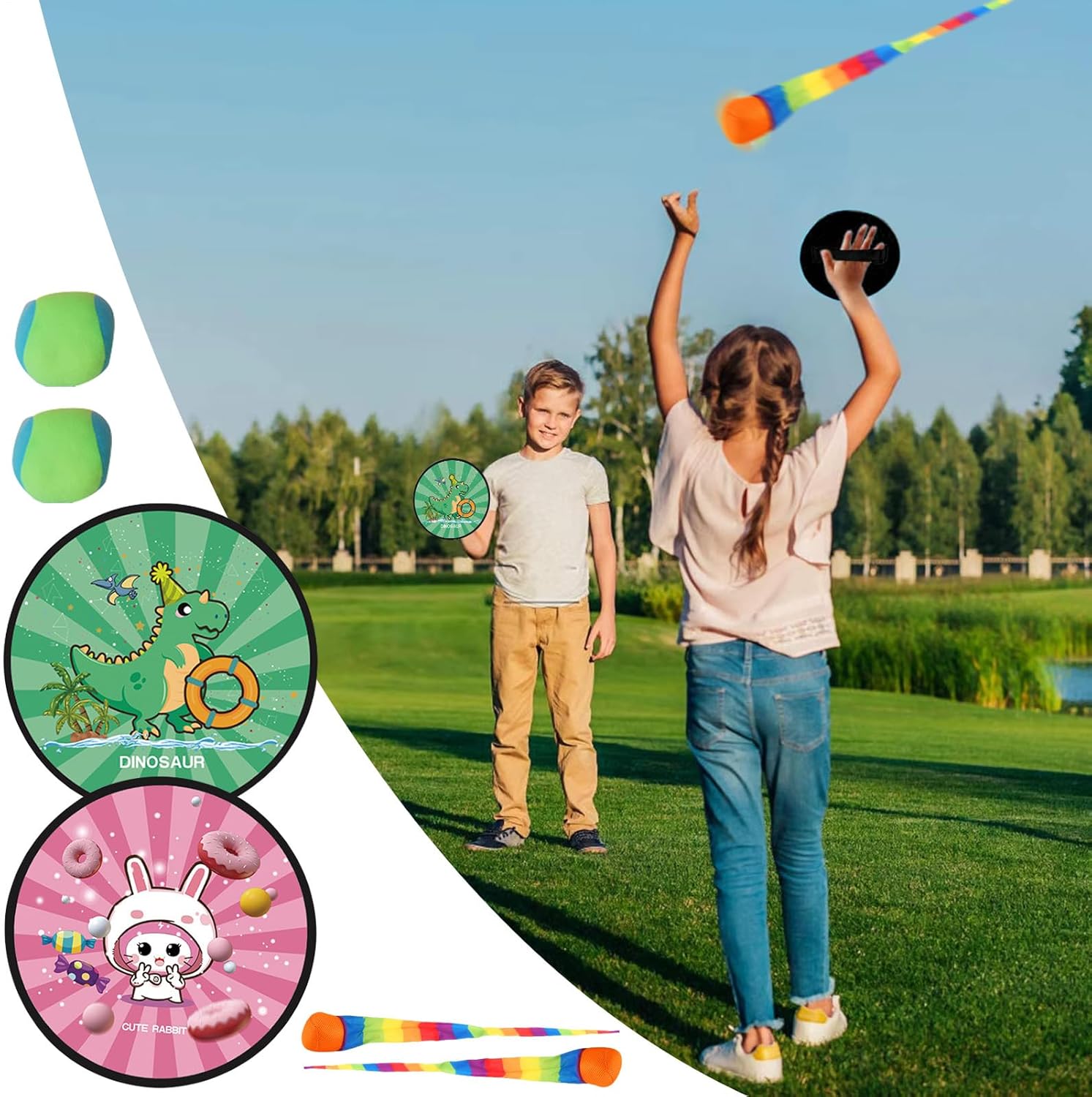 Design creativo: Caratterizzato da stile divertente per tutte le età, con motivi visivamente attraenti che ispirano attività fisica e migliorano efficacemente il divertimento durante il gioco Tocco Sicuro: Realizzato con materiali sicuri per bambini, offre una sensazione delicata sulla pelle mantenendo robustezza e prestazioni resistenti all'usura, ideale per l'allenamento del gioco attivo Praticità: Per tutti i gruppi d'età stimola fiducia in sé stessi e sviluppo muscolare bracciale tramite attività di lancio e presa piacevoli con regole senza sforzo Miglioramento motorio: Rafforza equilibrio e riflessi, favorendo lo sviluppo della coordinazione occhio-mano con attività educative per la prima infanzia attraverso giochi dinamici Gioco Genitori-Figli: Ideato per consolidare legami emotivi e promuovere il gioco di con attività interattive di lancio e presa adatte alla famiglia