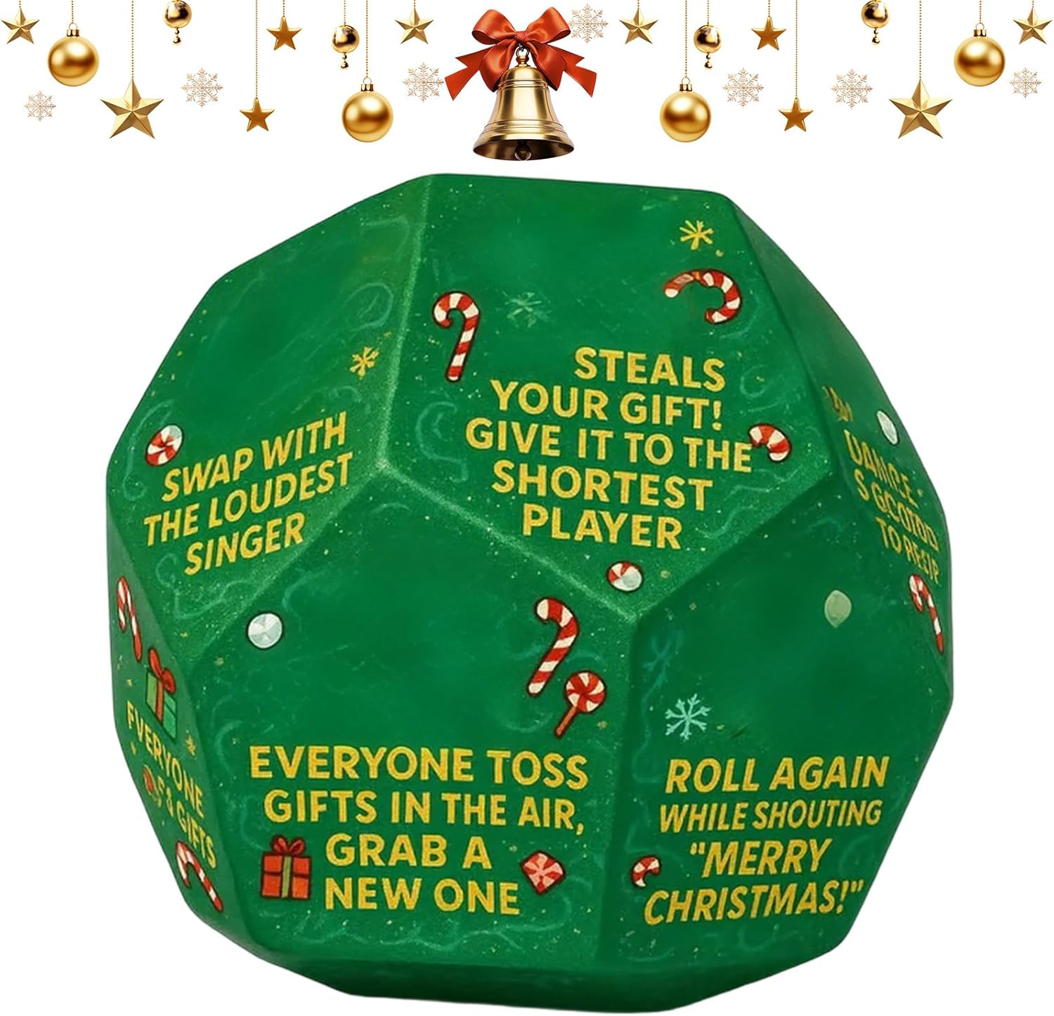 Costruzione robusta in ABS: Migliorato con bordi morbidi sicuri per i bambini e una struttura leggera, il materiale ABS assicura un meccanismo di rotolamento facile per prestazioni affidabili durante le attività festive Meccanismo divertente: I per lo scambio di Natale presentano un design a 12 facce e istruzioni di gioco chiare, garantendo nuove sorprese ad ogni lancio e aumentando il coinvolgimento e il divertimento di tutti i partecipanti durante le attività festive Esperienza di Gioco : Migliora i tuoi festeggiamenti natalizi con un gioco di società versatile e adatto a tutta la famiglia, include tutti i partecipanti e si adatta a stili di gioco casual o competitivo per qualsiasi età e dimensione del gruppo Variazione Scambio Regali: Permetti un divertimento inclusivo durante la tua celebrazione natalizia con un versatile gioco di progettato per aggiungere elementi emozionanti scambio di regali, adatto a familiari e ospiti di tutte le età senza necessità di competizione Diffusore di risate e felicità: Questo dado natalizio con il festoso design di Babbo Natale diffonde allegria e gioia delle feste, simboleggiando l', rendendosi un'opzione di regalo indimenticabile per le persone periodo natalizio