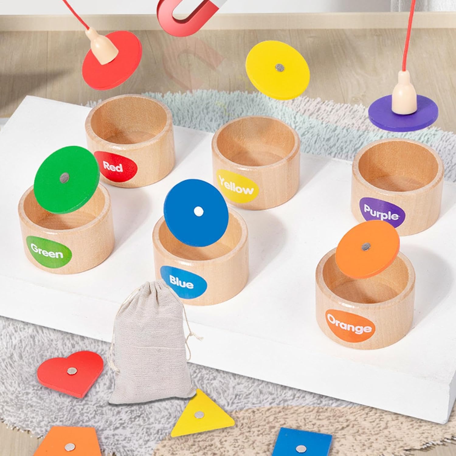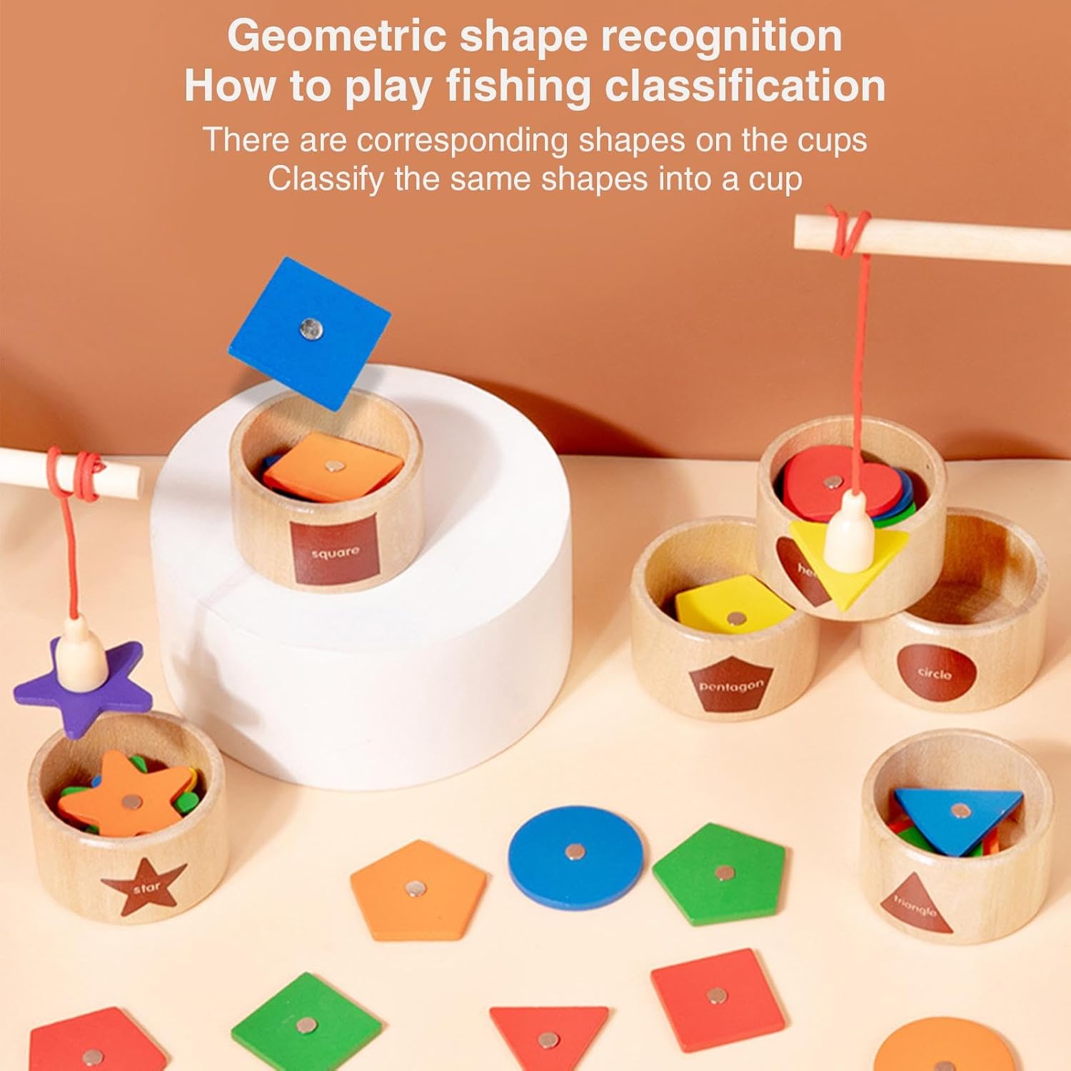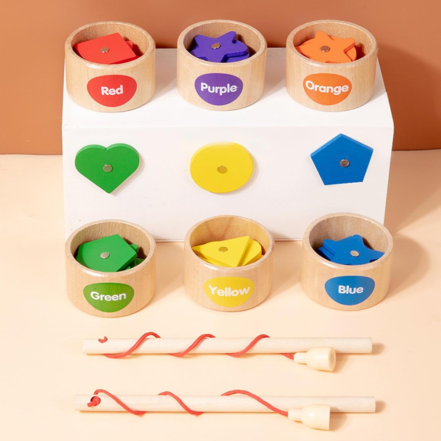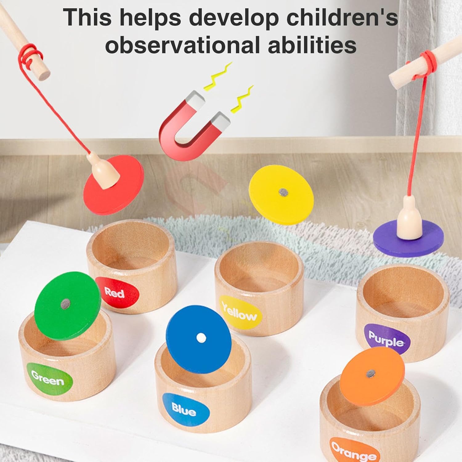 Modo d'uso: Il gioco della pesca magnetica i bambini a utilizzare le canne da pesca magnetiche per avvolgere blocchi di legno di varie forme, quindi ordinarli nella giusta tazza di classificazione rafforzando al conle loro capacità di pensiero logico Nutre la creatività: il gioco di pesca magnetico in legno consente ai bambini di esplorare la loro immaginazione mentre progettano e i propri scenari di pesca. Con una varietà di pesci e tazze colorati, questo giocattolo sviluppa le capacità cognitive e creative dei bambini offrendo stesso ore di divertimento Personalizza il tuo divertimento: il giocattolo da pesca magnetico fornisce blocchi a doppia faccia, ciascuno con un lato in tinta unita e un lato coperto da magnete. Scegli un gameplay diverso in base alle tue preferenze e goditi un intrattenimento senza fine con questo giocattolo innovativo Divertimento a misura di bambino: il gioco di pesca magnetico in legno garantisce un di gioco sicuro e duraturo per i bambini. Realizzato in legno, non ha bordi o tossine nocive, garantendo un'esperienza di pesca ecologica e innocua di cui i genitori possono fidarsi Migliora le capacità organizzative: il gioco di pesca magnetico consente una pulizia senza interruzioni grazie alla sua custodia portatile. I bambini possono coltivare buone abitudini organizzative poiché conservano e trasportano facilmente i loro giocattoli tra un allenamento e l'altro