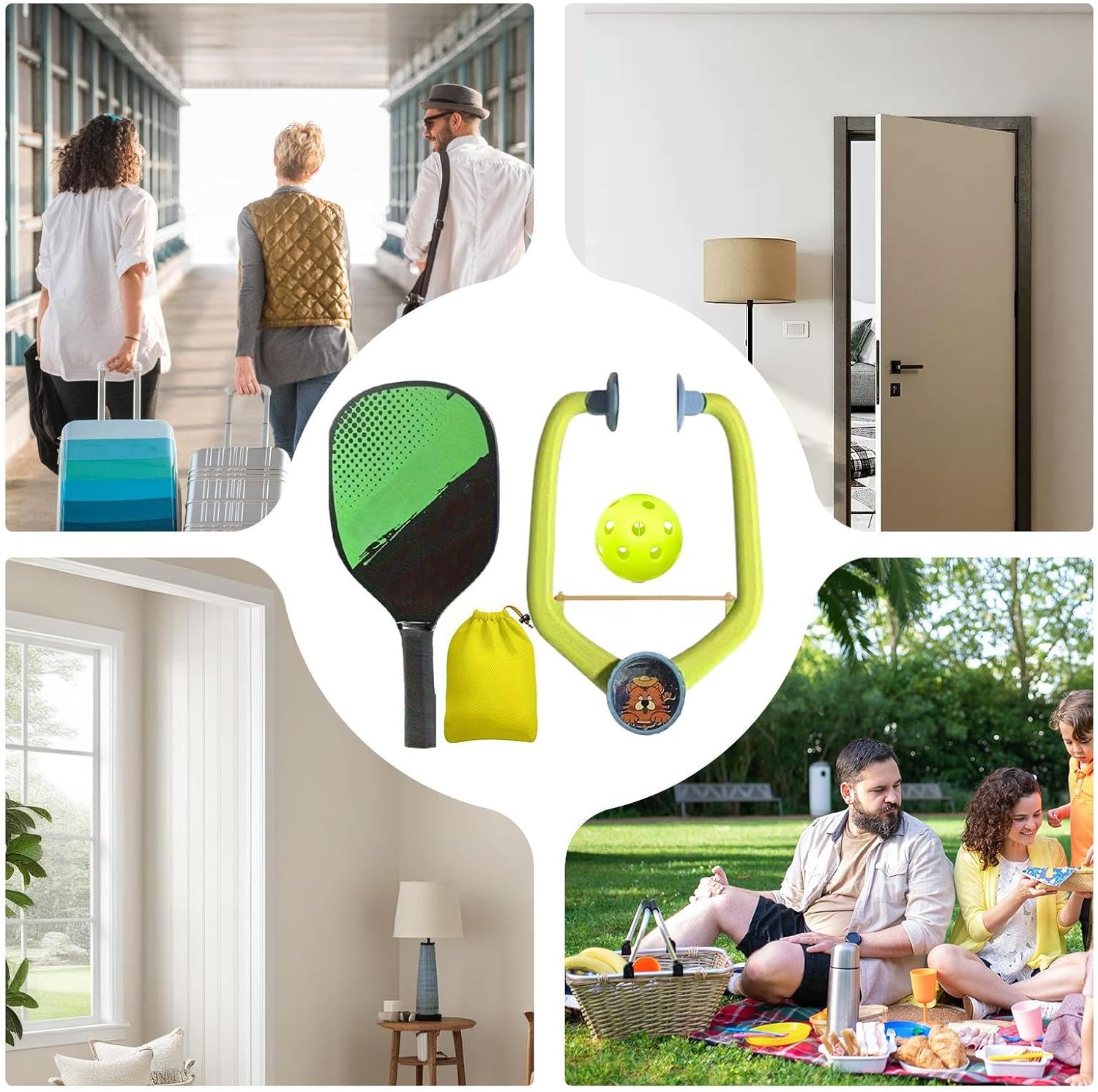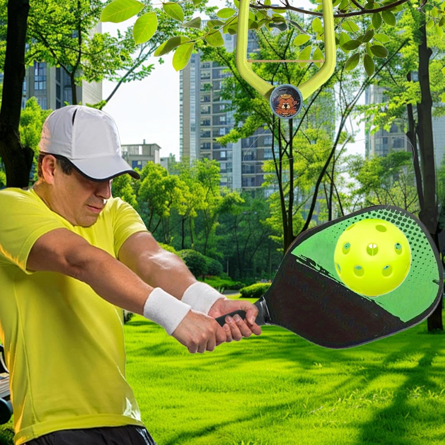 Set integrale: include una palla, una racchetta e un accessorio per l'allenamento. Supporta i giocatori di livelli eliminando la necessità di accessori aggiuntivi. Ideale per padroneggiare le tecniche e migliorare il gioco in modo efficace. Adattamento flessibile: opzioni di regolazione per età e abilità, ottimizzando i riflessi e la coordinazione occhio-mano durante le parti di Installazione istantanea: goditi immediatamente il gioco appeso ai rami degli alberi o alle porte, senza alcuna installazione necessaria per un divertimento immediato e una configurazione rapida Tecnologia avanzata: lavorazione con materiali sicuri per una lunga durata senza deformazioni. Impugnatura antiscivolo per un maggiore controllo e palla bilanciata per un regolare miglioramento dell'esperienza di gioco. Applicazioni varie: goditi momenti amichevoli con la famiglia o gli amici con questo gioco, ideale per il soggiorno, il giardino o i parchi; la sua compatibilità interno/esterno e la sua costruzione leggera garantiscono un intrattenimento adatto a tutte le occasioni.