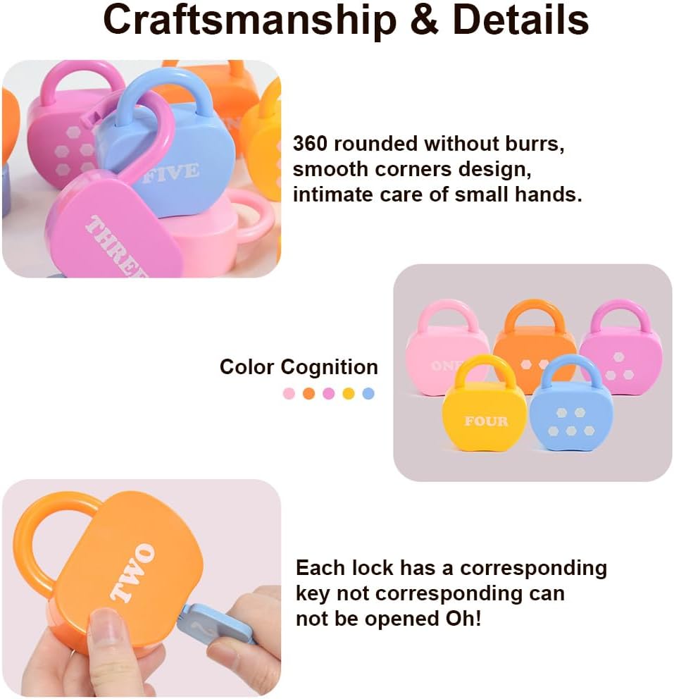 Gioco interattivo con serratura e chiave: questo giocattolo educativo combina interazioni divertenti con numeri e lettere, aiutando i bambini piccoli a sviluppare la coordinazione e la precisione delle mani quando azionano i pulsanti Gioco di sblocco dell'abbinamento digitale: migliora le capacità di riconoscimento dei colori e dei numeri dei bambini con questo giocattolo coinvolgente, che offre attività di potenziamento del cervello per incoraggiare la memoria e le capacità di risoluzione dei problemi Giocattolo puzzle per bambini da addestramento: questo giocattolo educativo per la prima infanzia con puzzle sbloccabile è progettato per introdurre numeri e lettere in modo divertente e interattivo, per lo sviluppo dei bambini piccoli Mirato a introdurre numeri e lettere attraverso interazioni divertenti: questo gioco di sblocco di numeri e lettere è strumento che consente ai bambini di imparare divertendosi, promuovendo lo sviluppo cognitivo in un giocoso Aiuta i bambini piccoli a sviluppare la coordinazione e la precisione delle mani quando azionano i pulsanti: questo giocattolo per sbloccare le chiavi non intrattiene, ma migliora anche le capacità motorie e le capacità di risoluzione dei problemi in modo stimolante