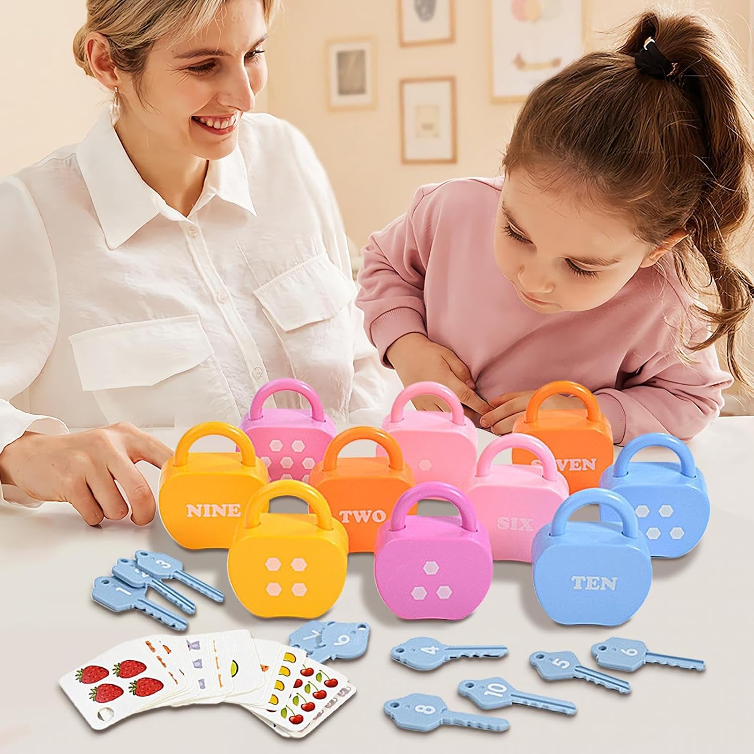 Materiale resistente: realizzato in materiale ABS esperienziale, assicura un esterno liscio per trascorrere al meglio la giocosità dei bambini, con colori e motivi che affascinano le giovani menti. Giocattoli per l'apprendimento dei numeri: i lucchetti per l'apprendimento con chiavi dei nostri bambini completano il riconoscimento e l'apprendimento dei numeri in un modo nuovo. Consente ai bambini di aprire con successo la serratura trovando la chiave corrispondente, creando un'esperienza divertente ed educativa Incoraggia il gioco di squadra: i bambini imparano le serrature con le chiavi, aumenta la pazienza di tuo figlio e li aiuta ad apprendere capacità di risoluzione dei problemi. Questo gioco interattivo può essere giocato con genitori o più bambini per incoraggiare le connessioni tra loro e migliorare le abilità sociali. Migliorare l'esperienza di apprendimento: ogni lucchetto dai colori vivaci abbinato alla sua chiave unica stimola il senso di sfida dei bambini e incoraggia le capacità motorie e incoraggia la percezione del colore, la resilienza e la perseveranza. Regalo meraviglioso: lascia che i tuoi figli si sentano speciali con i nostri bambini che imparano le serrature con le chiavi. È un modo premuroso per esprimere cura e amore per lei, adatto per compleanni, vacanze e altro ancora. Un regalo unico per i bambini che farà loro una grande sorpresa