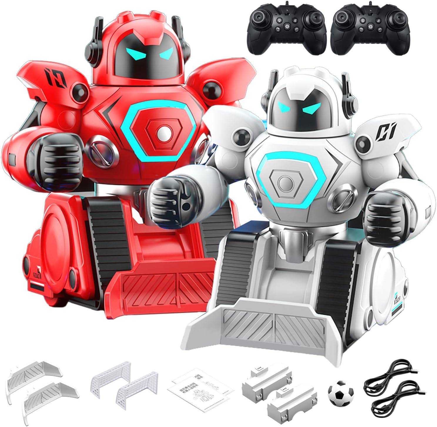 [EFFETTI AUDIOVISIVI EMOZIONANTI] Musica dinamica e coinvolgente e fantastici effetti di luce per battaglie emozionanti che affascinano i bambini. [GIOCO DINAMICO] Goditi emozionanti duelli di boxe e incontri di calcio con la speciale funzione demo one-touch che mostra varie azioni. [TECNOLOGIA AVANZATA DI CONTROLLO REMOTO] Connessione stabile 2.4G per anti-interferenza. Consente a più giocatori di partecipare a battaglie contemporaneamente. [GIOVANI IDEALI] bambini dagli 8 anni in su. Garantisce ore di gioco interattivo e di sviluppo delle abilità. [COSTRUZIONE DUREVOLE] I materiali di alta qualità proteggono da cadute e collisioni, dando ai bambini la sicurezza di giocare senza danni.