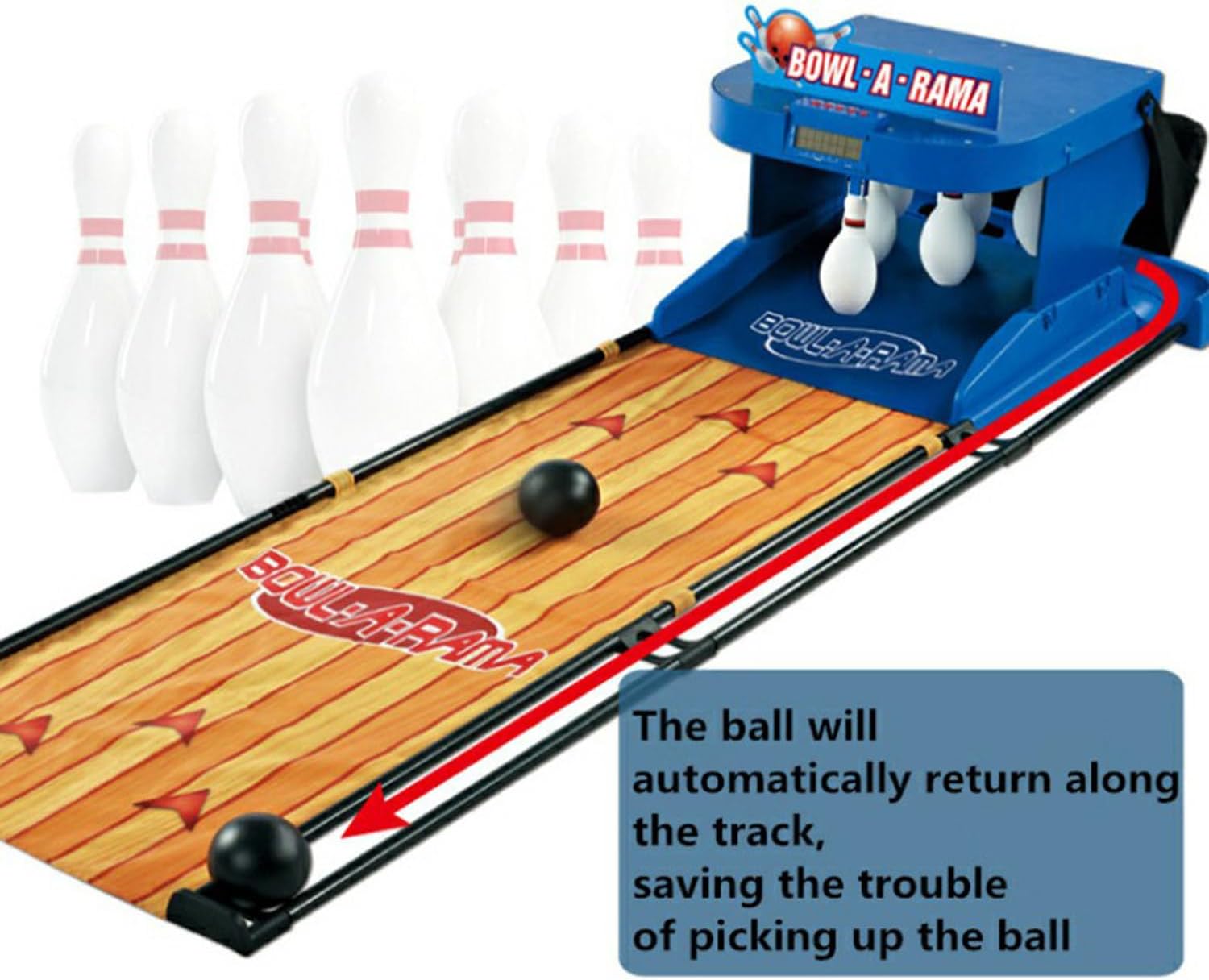 Set da bowling elettronico: dispone di un ritorno automatico della palla e segno, alimentato da batterie per un facile utilizzo. Include 6 spille in plastica resistente e 2 palline da bowling di alta qualità, progettate per essere atossiche e sicure per i bambini. Segnapunti elettronici interattivi: ideale per uno o due giocatori, il segnapunti elettronico a LED integrato tiene traccia automaticamente dei punti, aggiungendo divertimento e competitività al gioco. Funzione di ritorno automatico della palla: i perni si ripristinano automaticamente dopo aver rotolato la palla, accompagnati da effetti sonori realistici per un'esperienza di bowling coinvolgente. Installazione semplice: questo set da bowling portatile è facile da montare e smontare, rendendolo perfetto per l'uso domestico. Le palline imitano il peso realistico e la superficie liscia consente una comoda conservazione. Intrattenimento in famiglia: Il bowling è un'attività divertente e coinvolgente che promuove la competizione amichevole e favorisce la connessione tra i membri della famiglia, incoraggiando il tempo di qualità insieme.